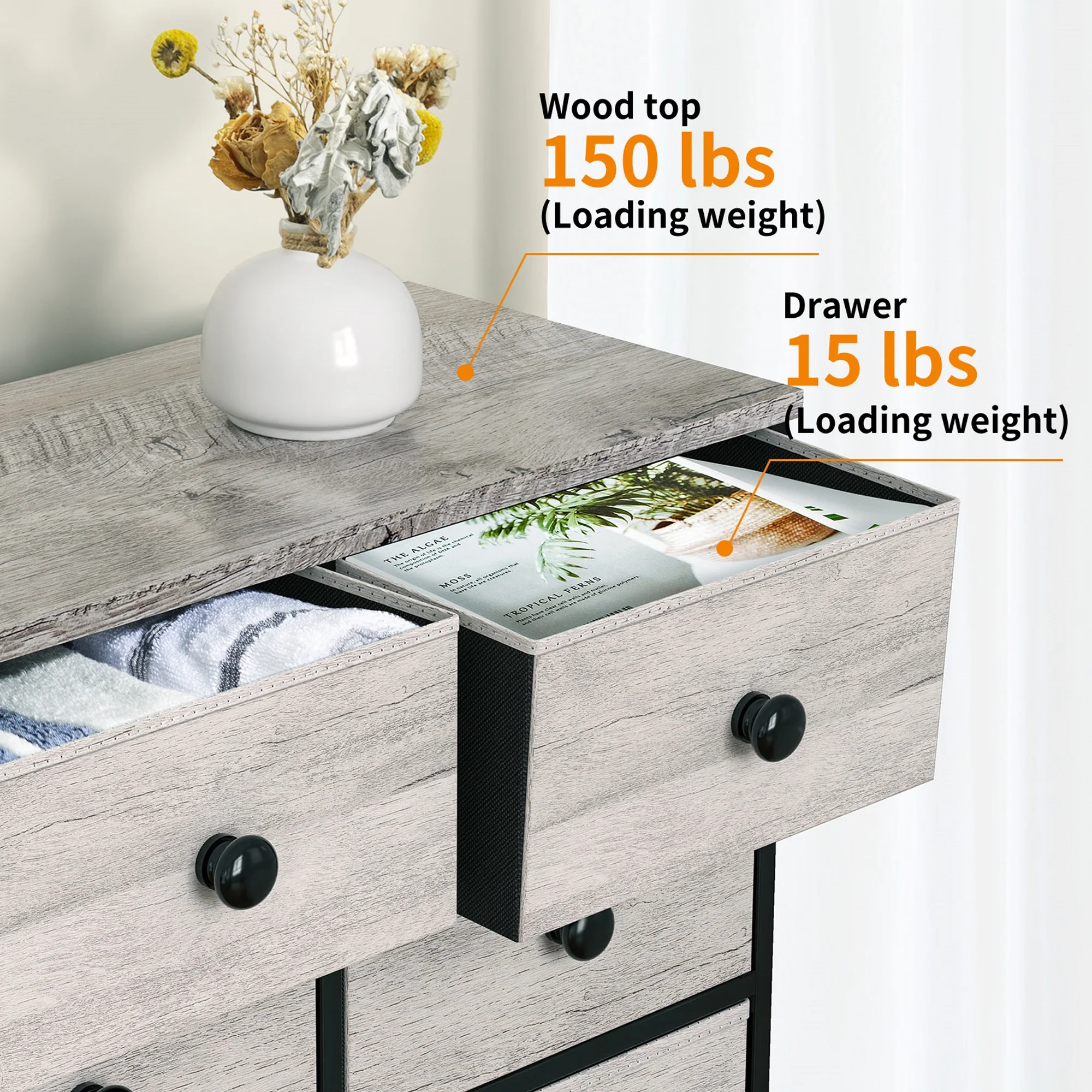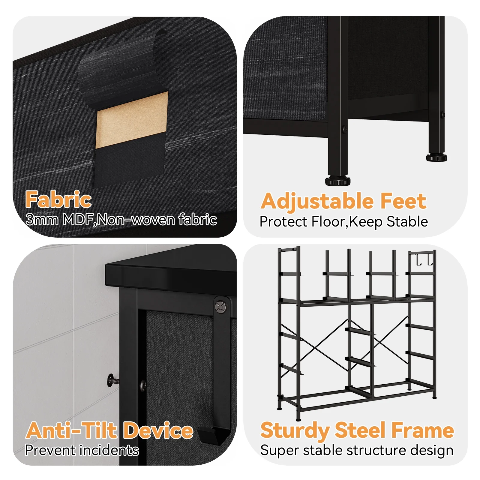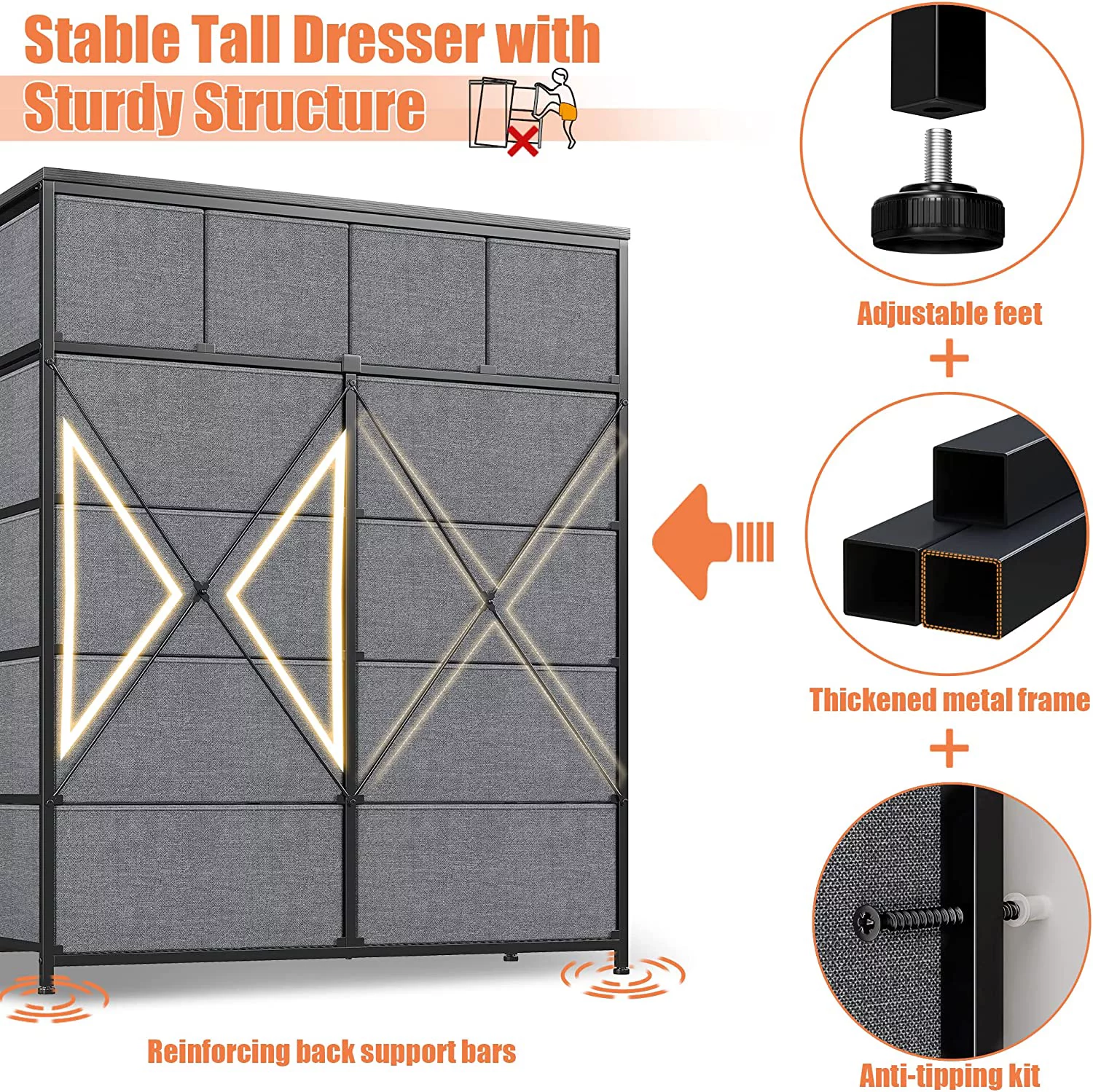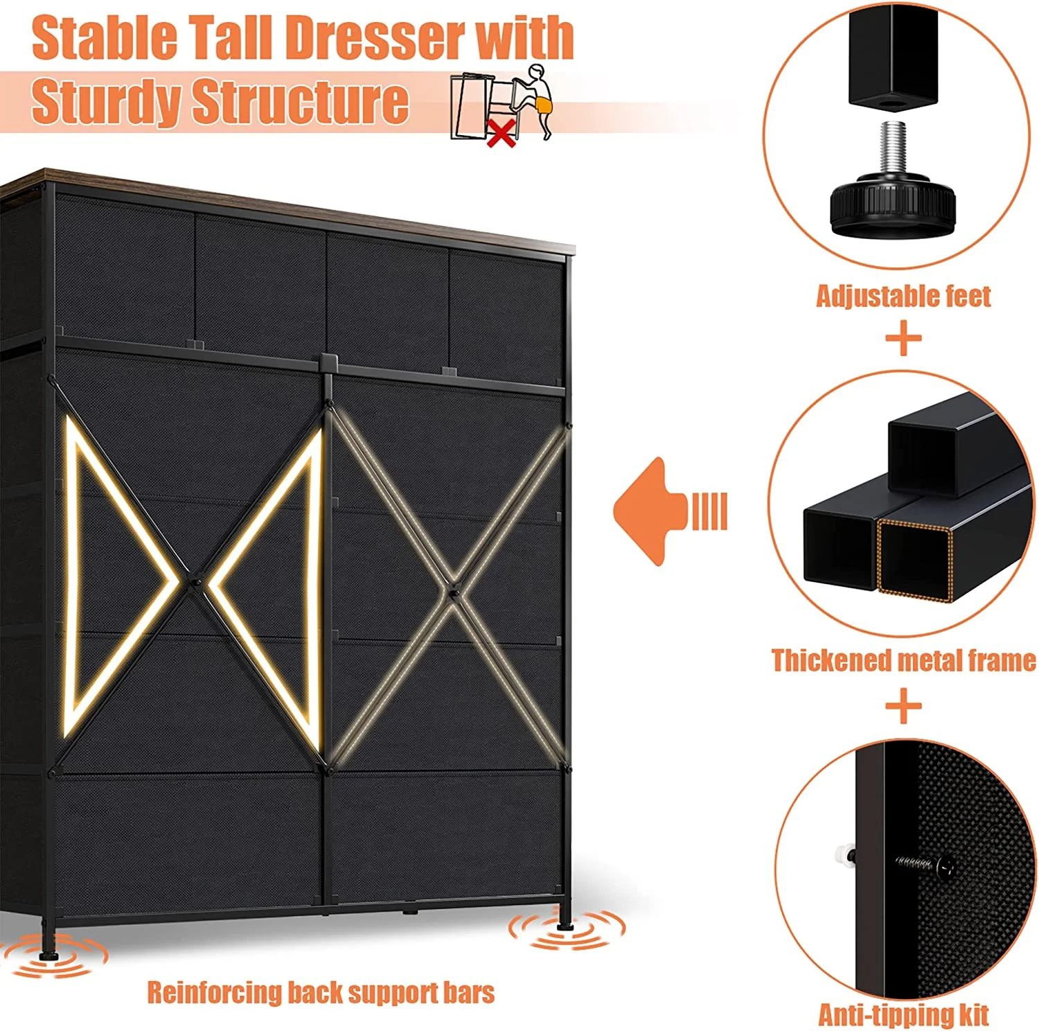 Towallmark 12 Drawers Fabric Dresser Storage Drawers, Tall Dresser with Sturdy Frame&Wooden Top, Organizer Unit, Black