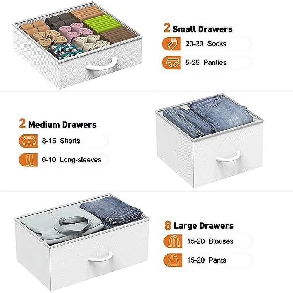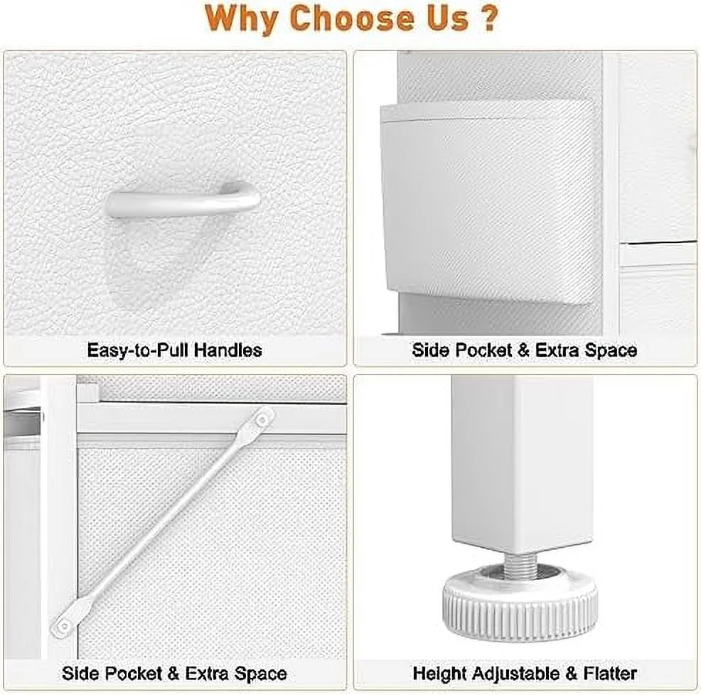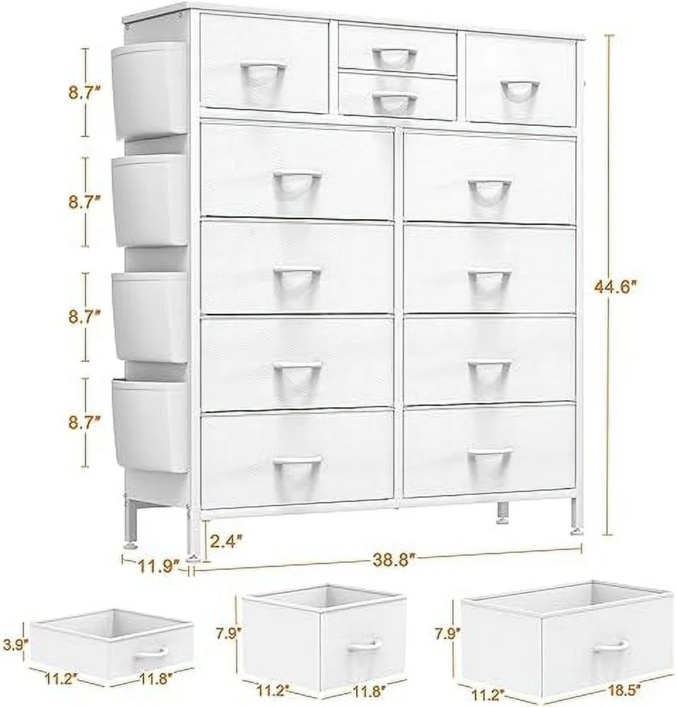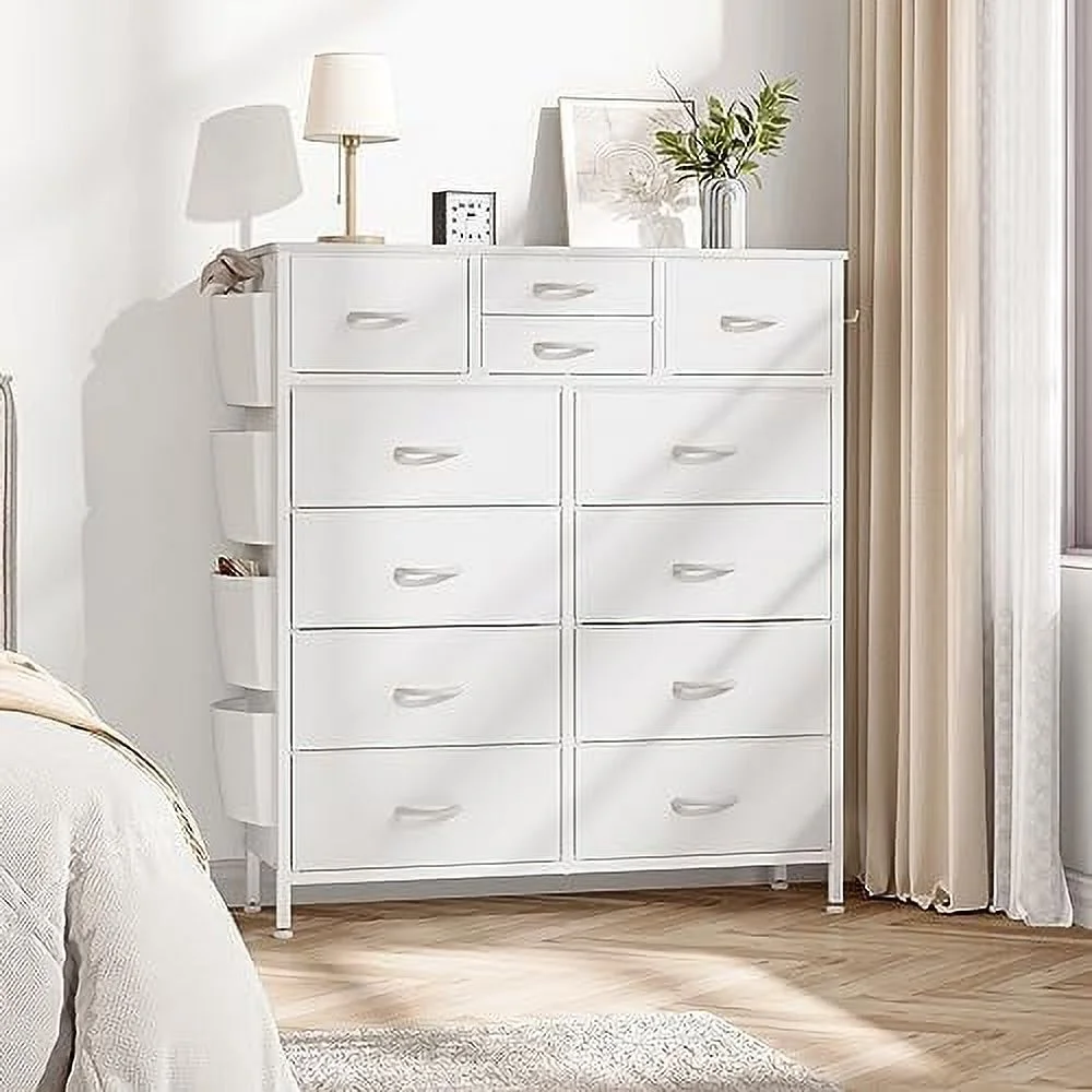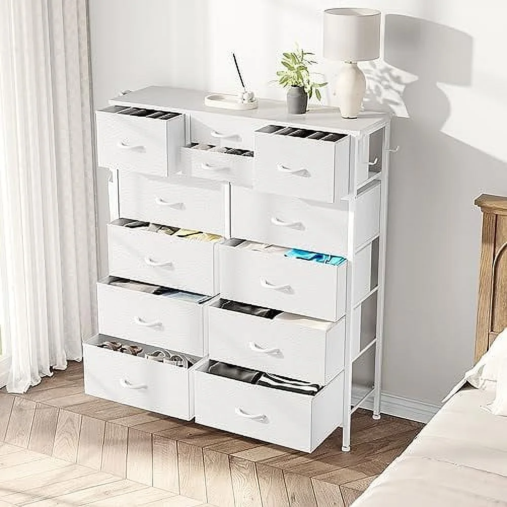 JINYUZHOU INC 12 Drawer Dresser Tall Fabric Chests of Drawers Closet for Bedroom White PU - 12-drawer