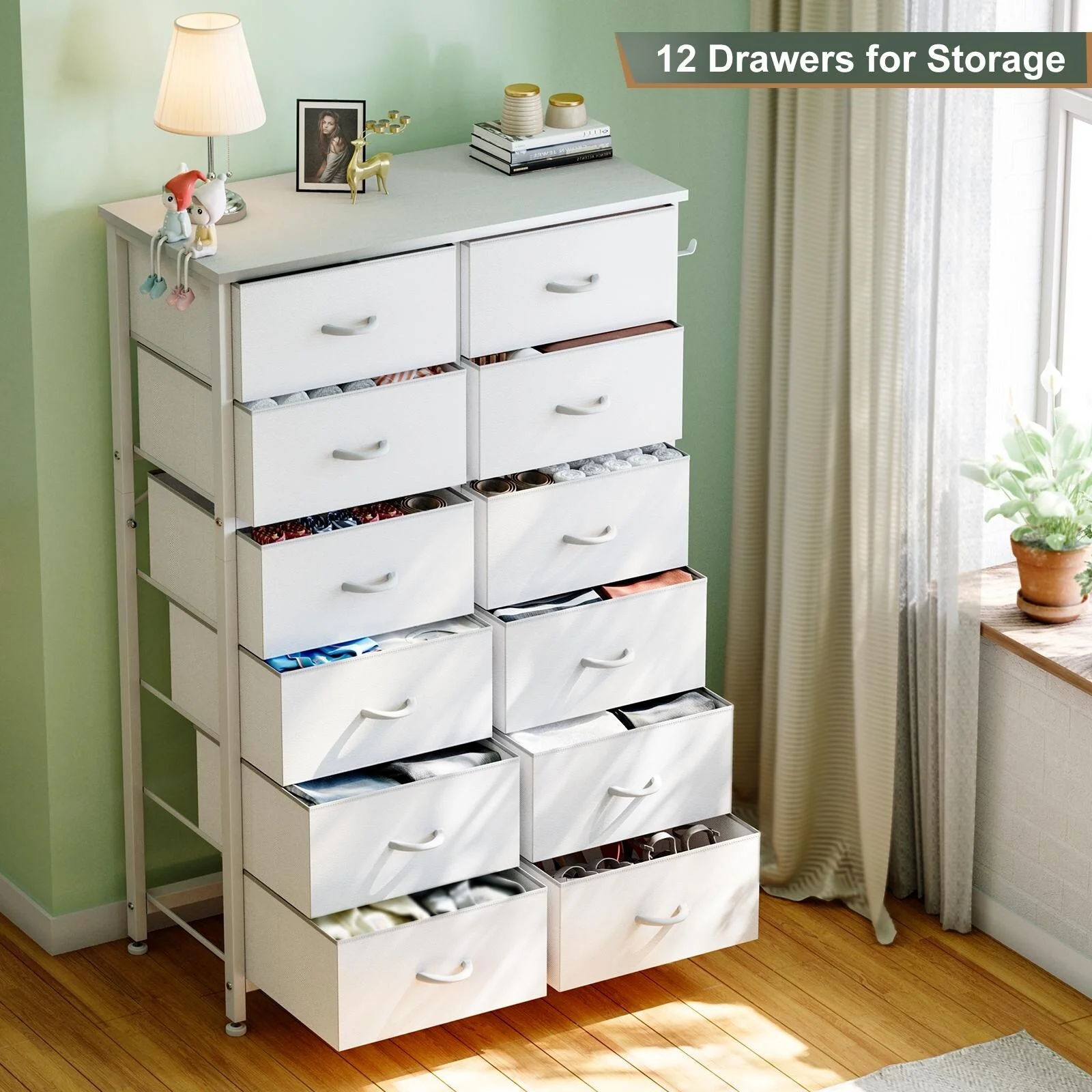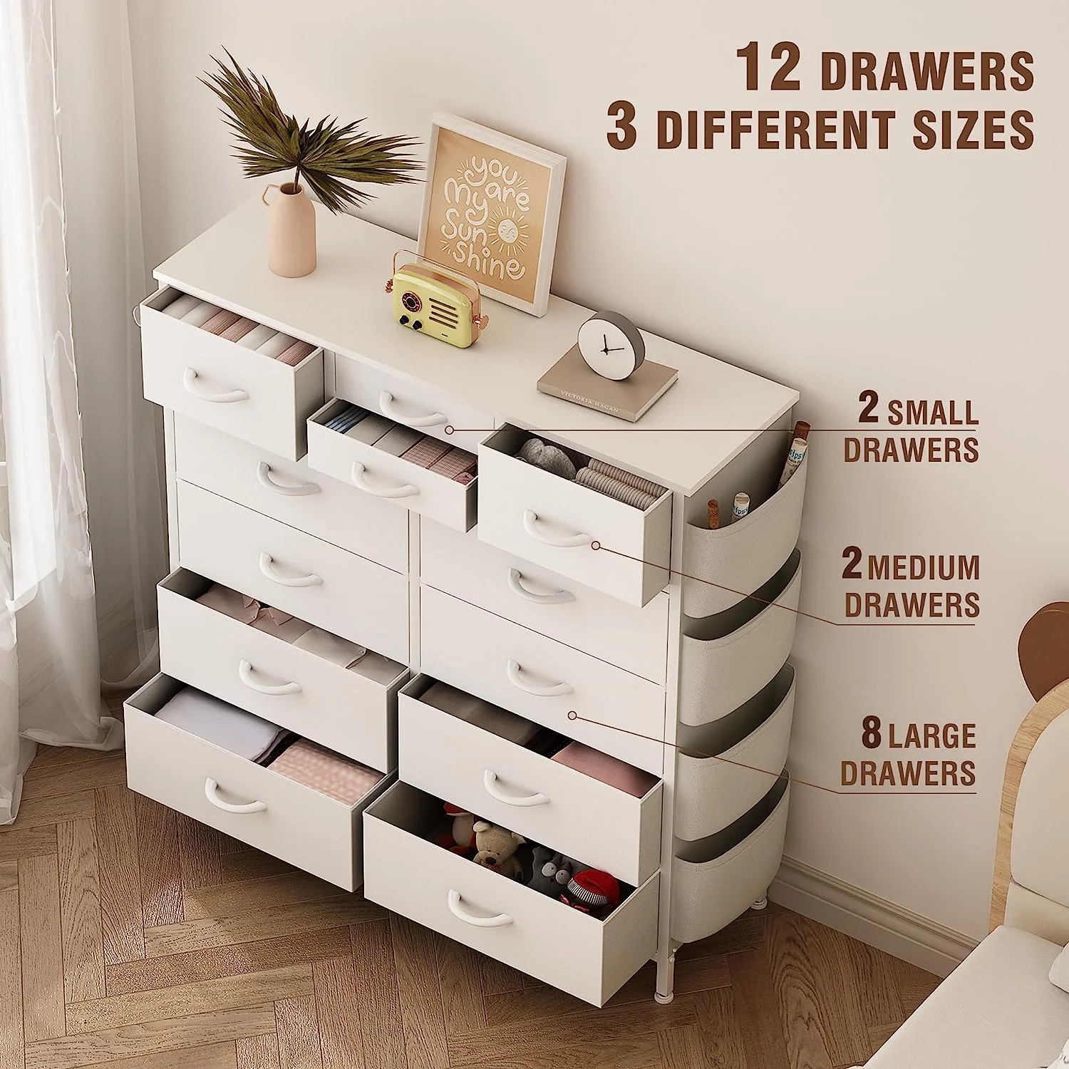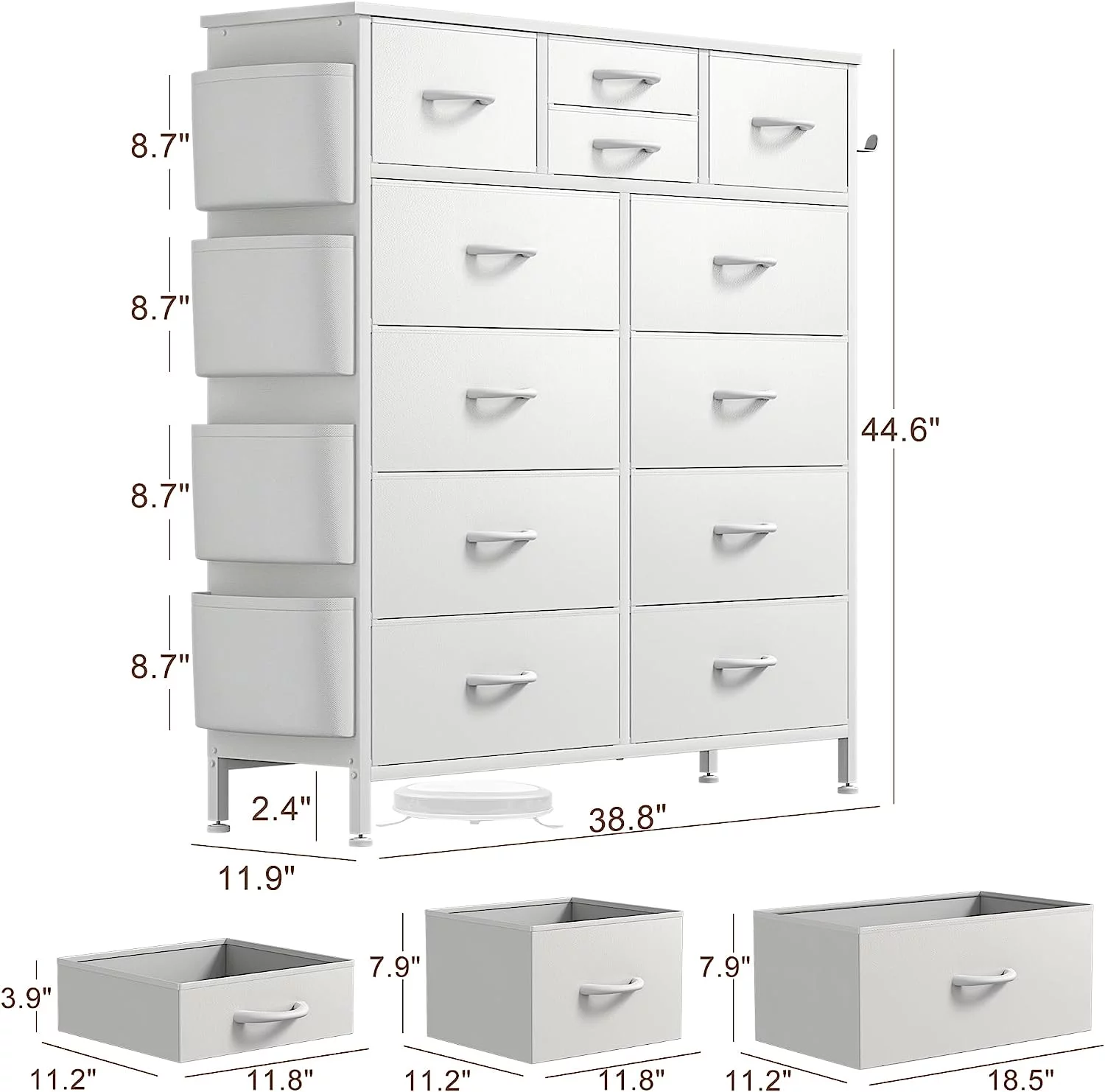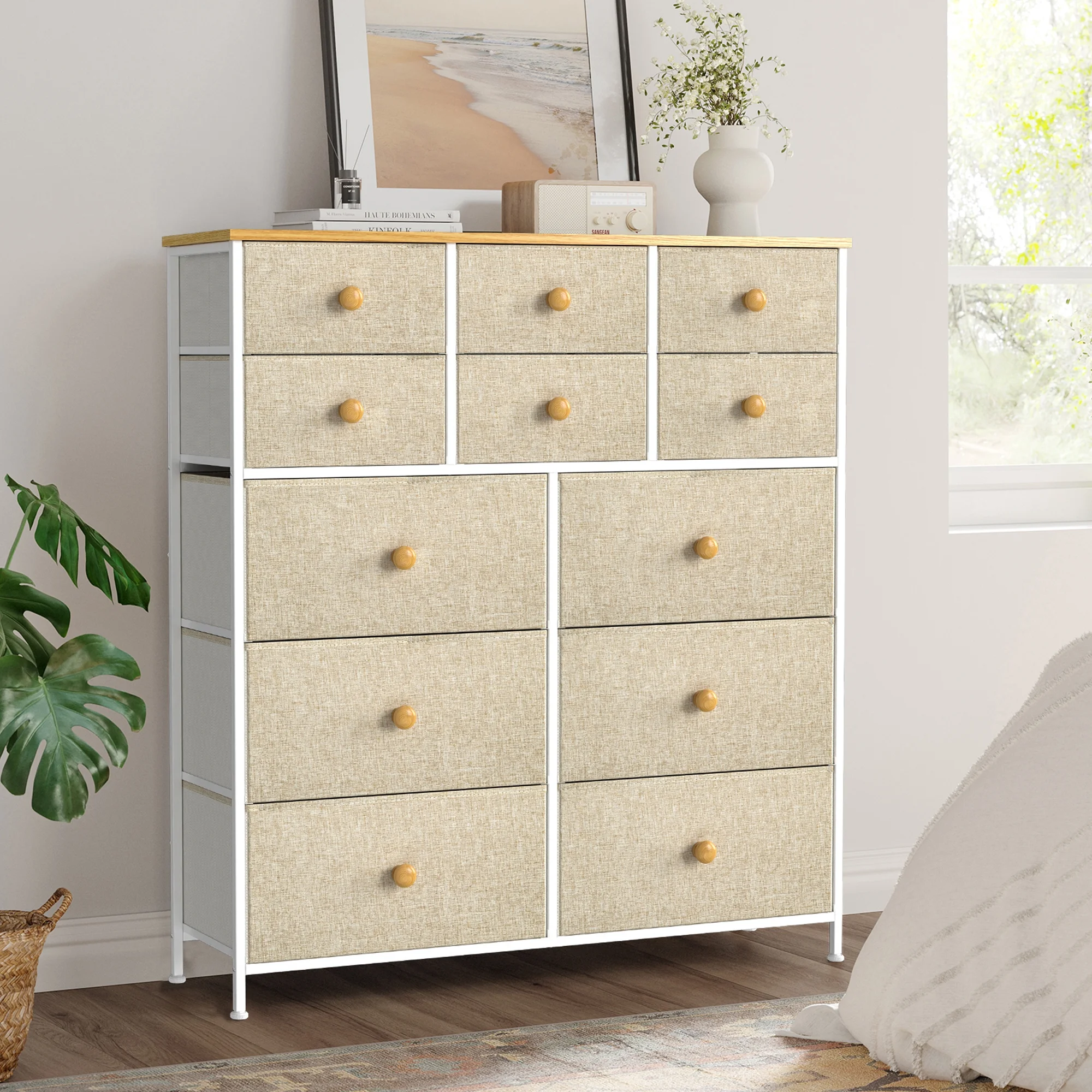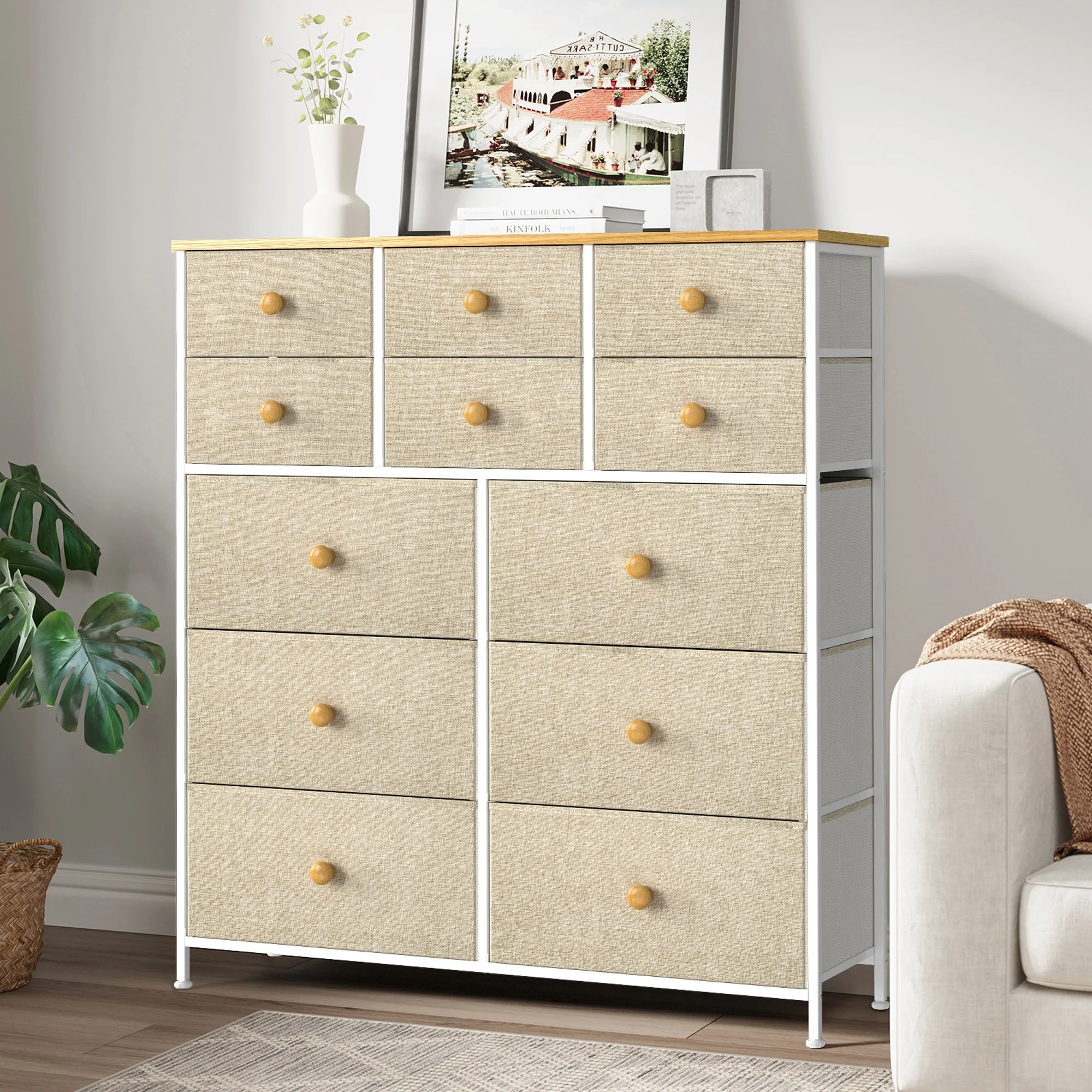 JINYUZHOU INC 12 Drawer Dresser Tall Fabric Chests of Drawers Closet for Bedroom White PU - 12-drawer