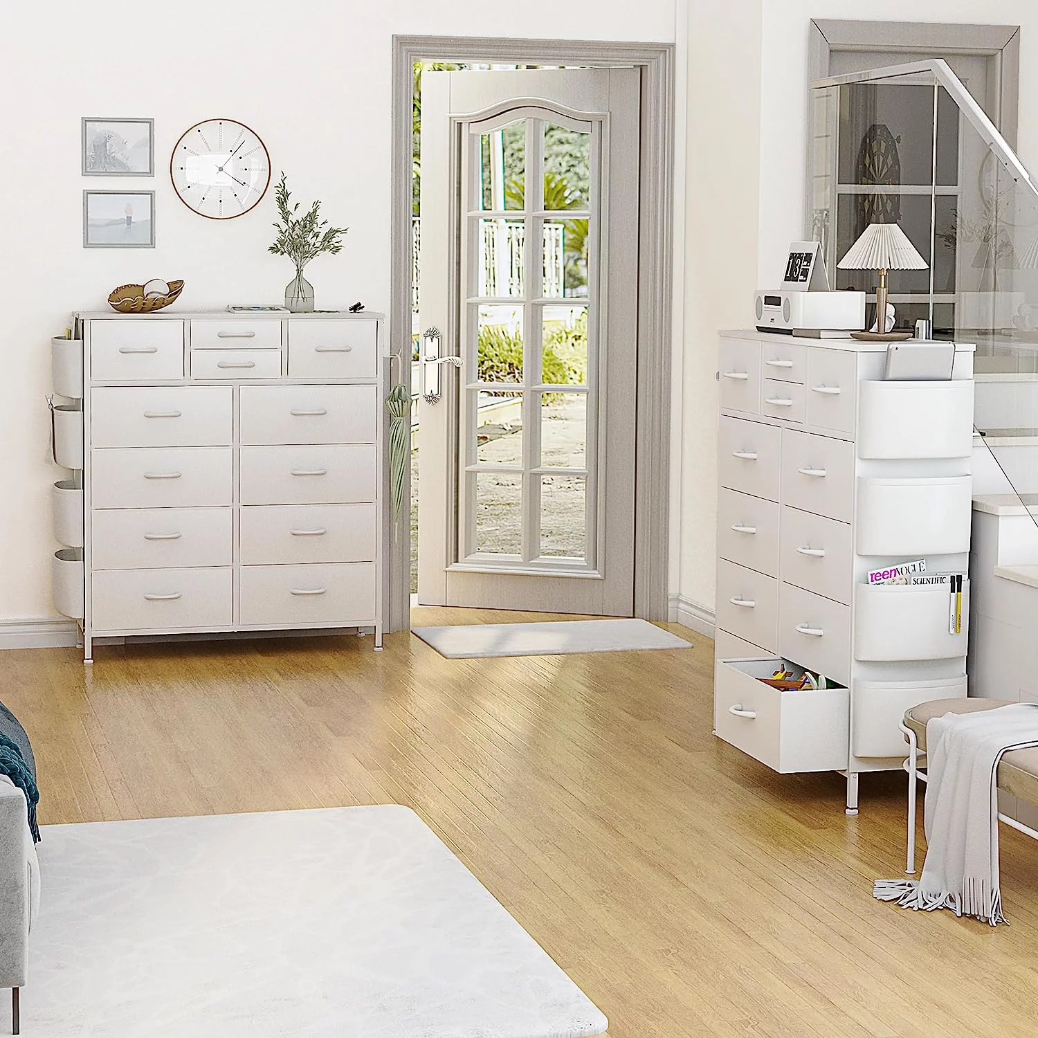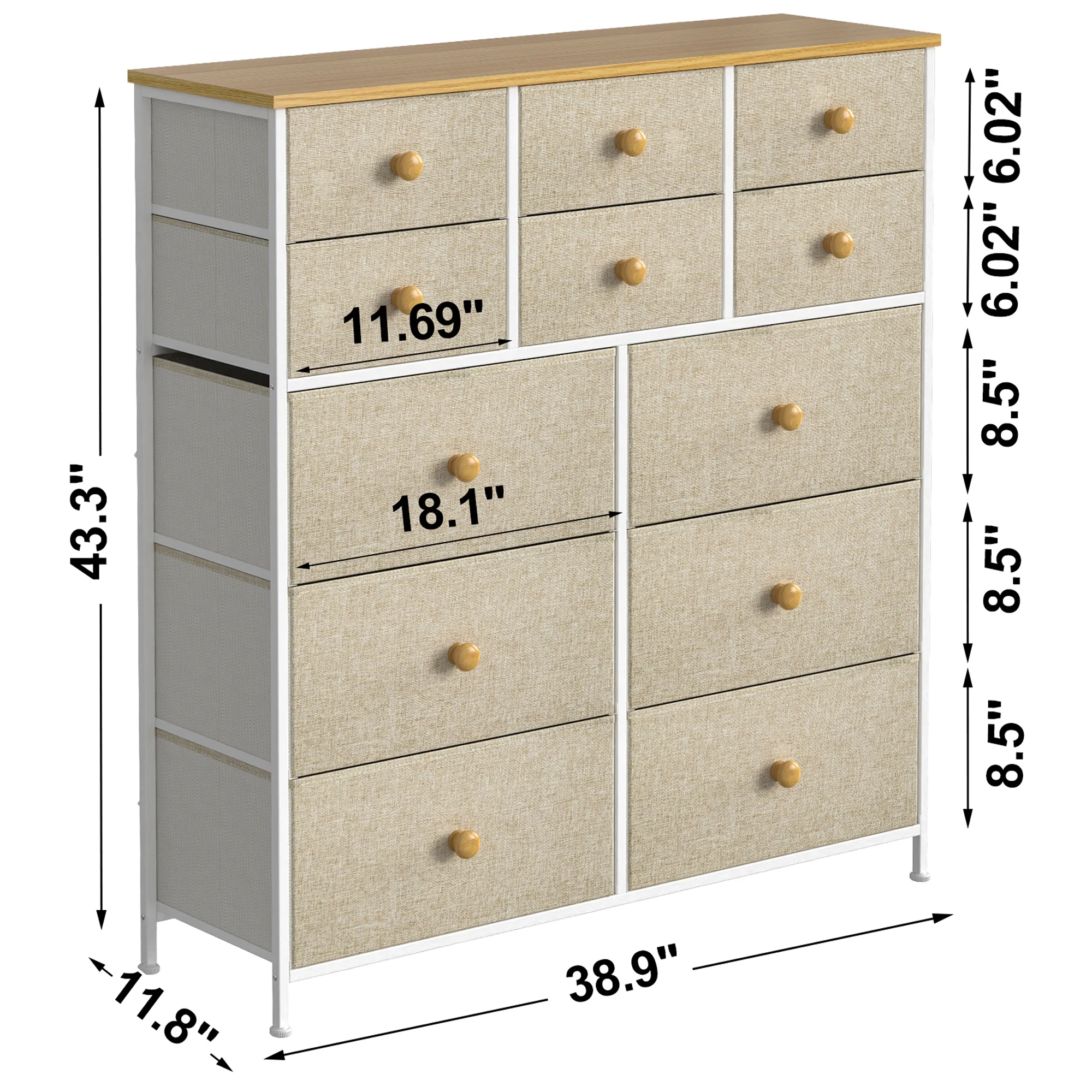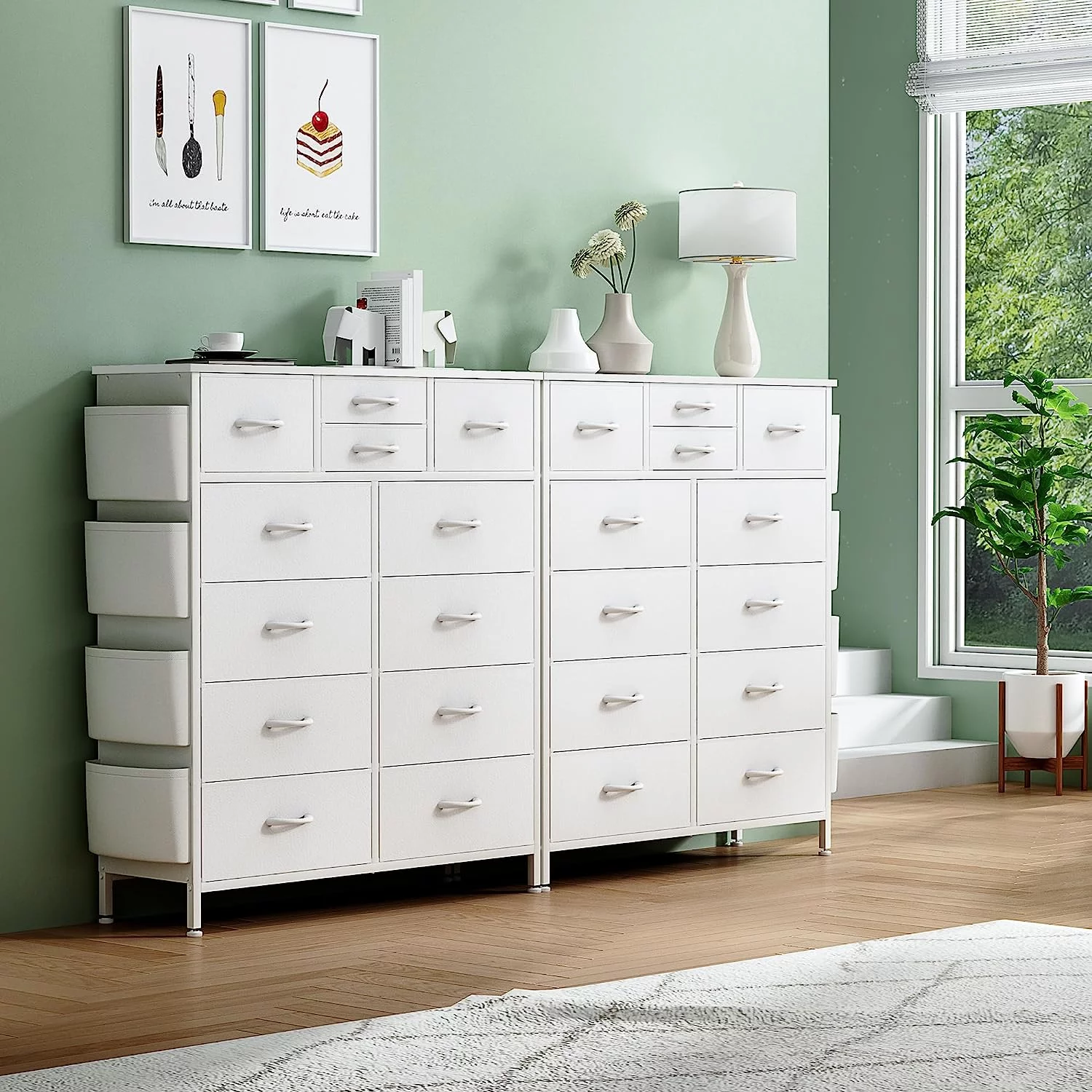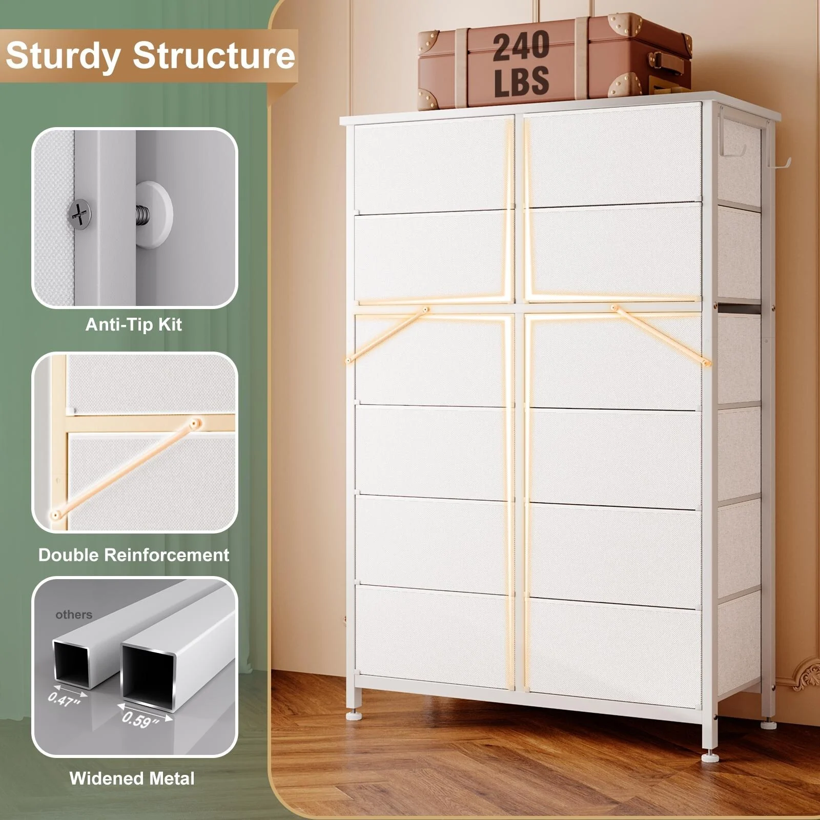 JINYUZHOU INC 12 Drawer Dresser Tall Fabric Chests of Drawers Closet for Bedroom White PU - 12-drawer