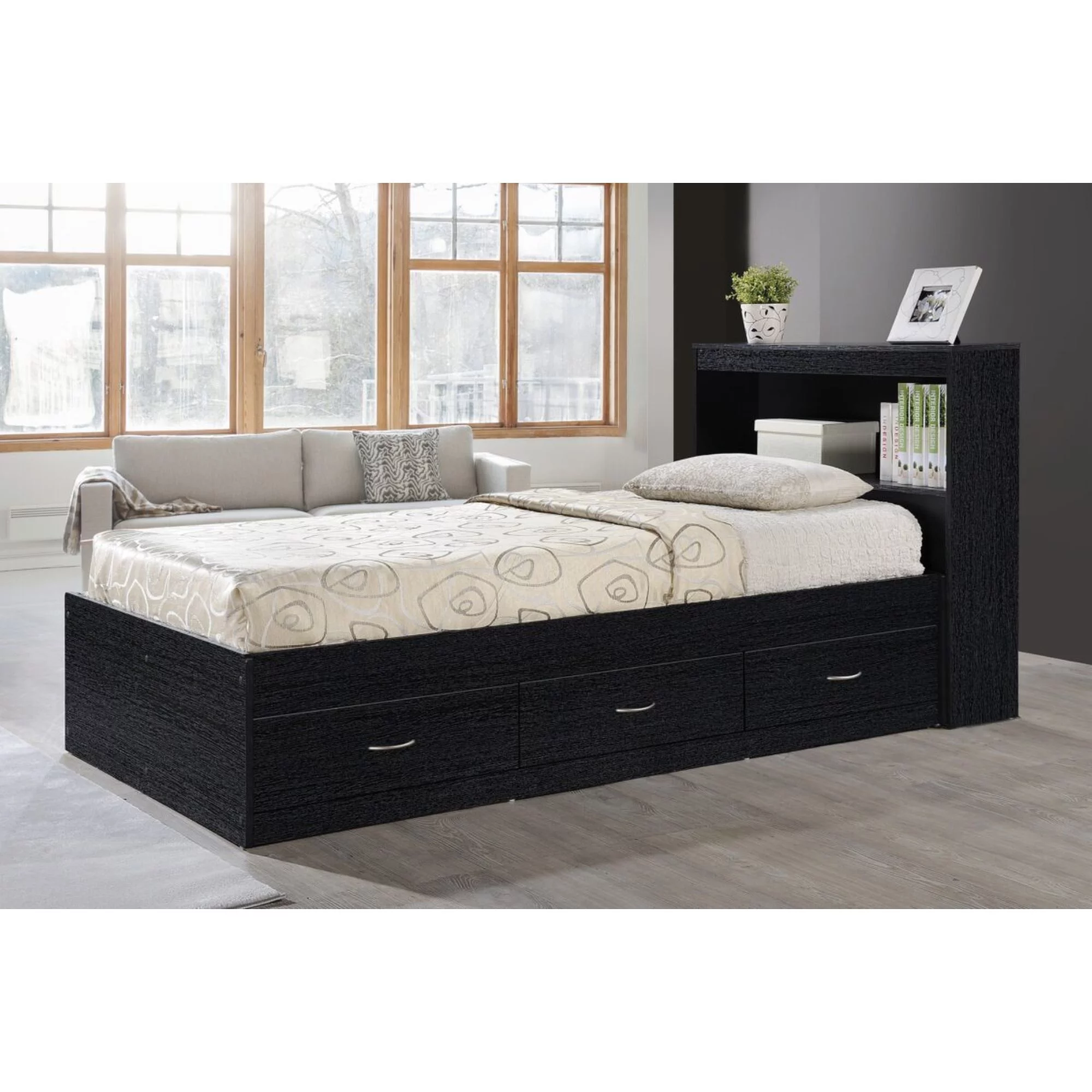 Contemporary Home Living 85.5" Black Captain Bed with 3 Drawers and Headboard - Twin Size