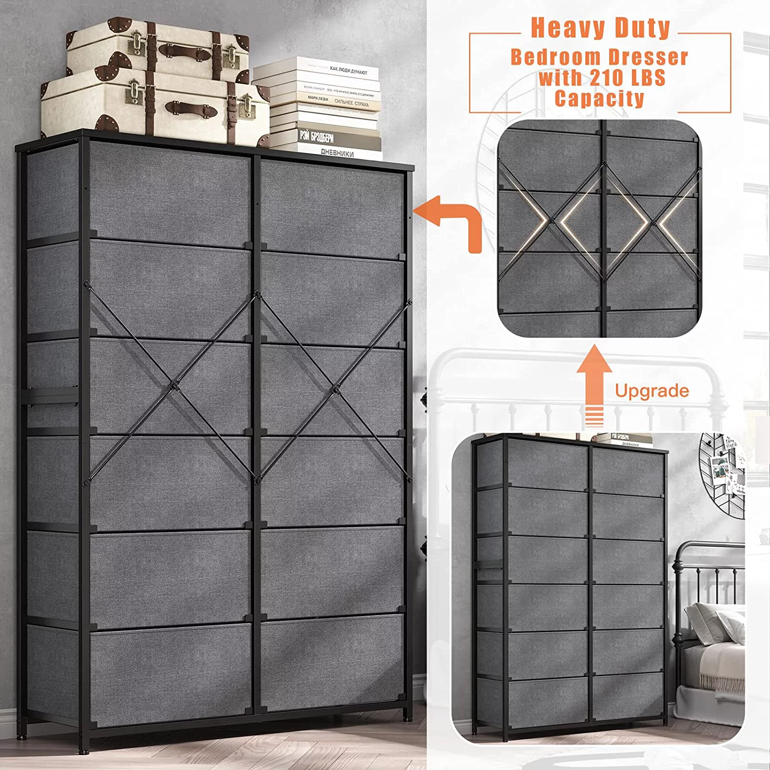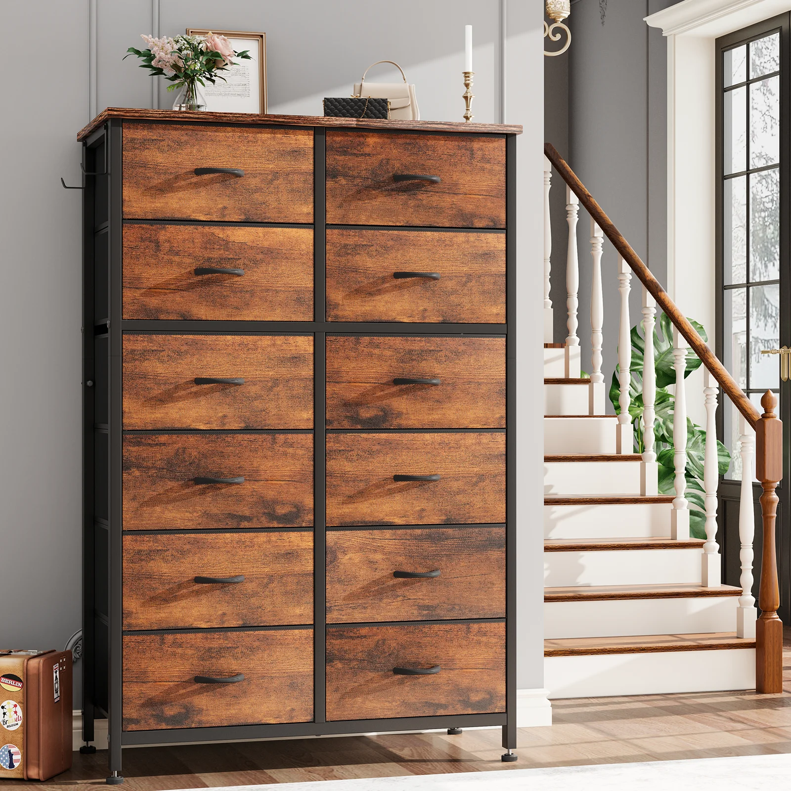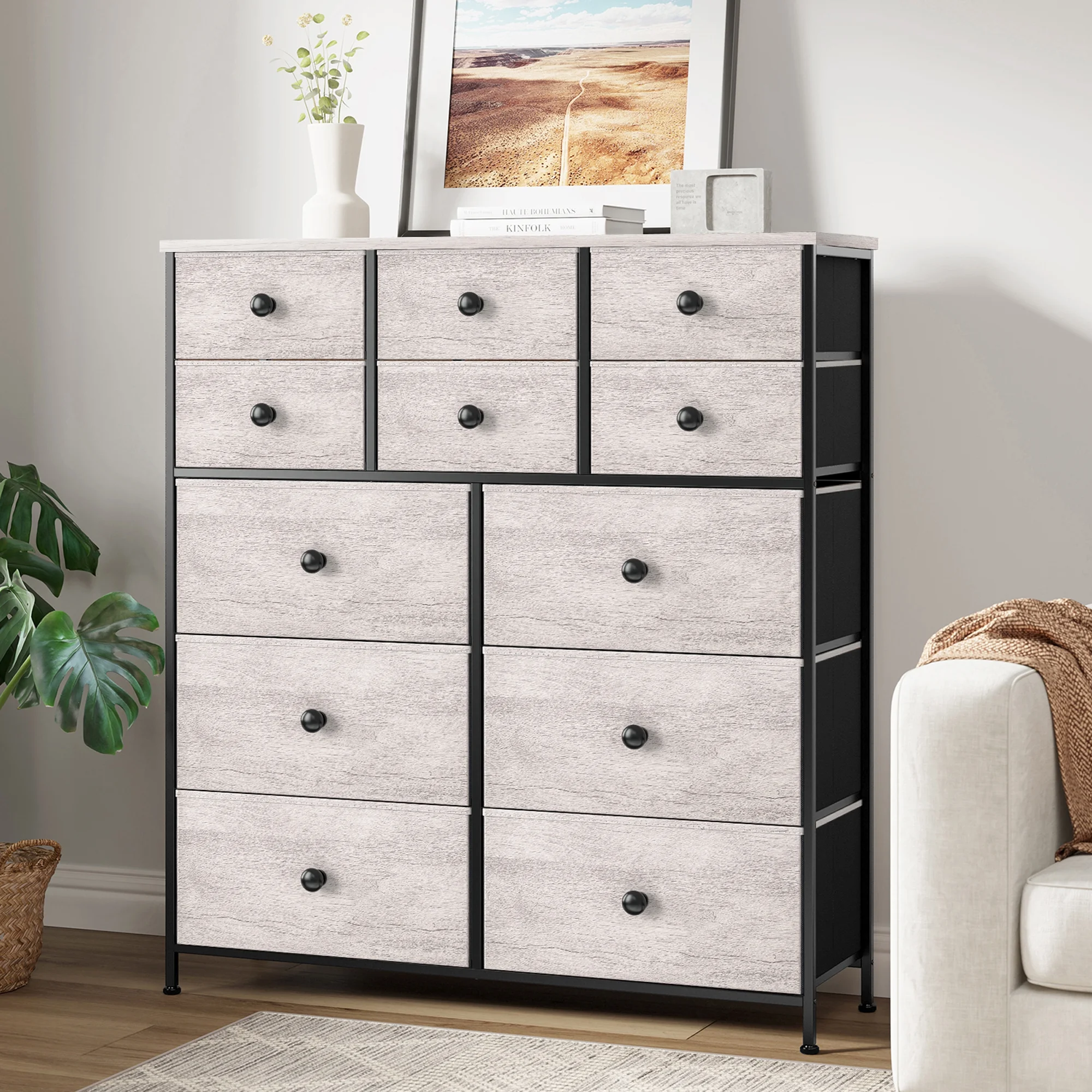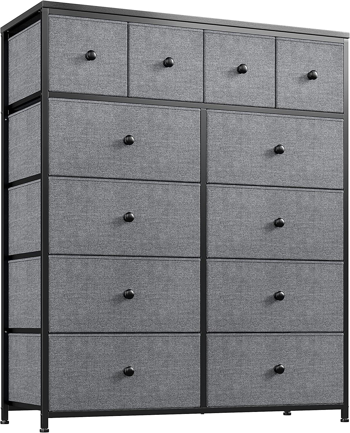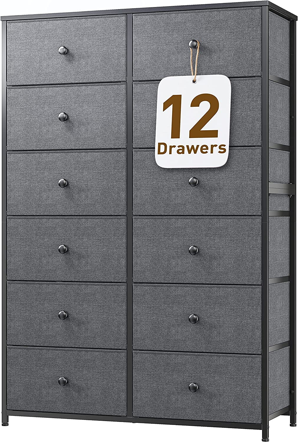 REAHOME 12 Drawer Steel Frame Bedroom Storage Organizer Dresser, Dark Taupe