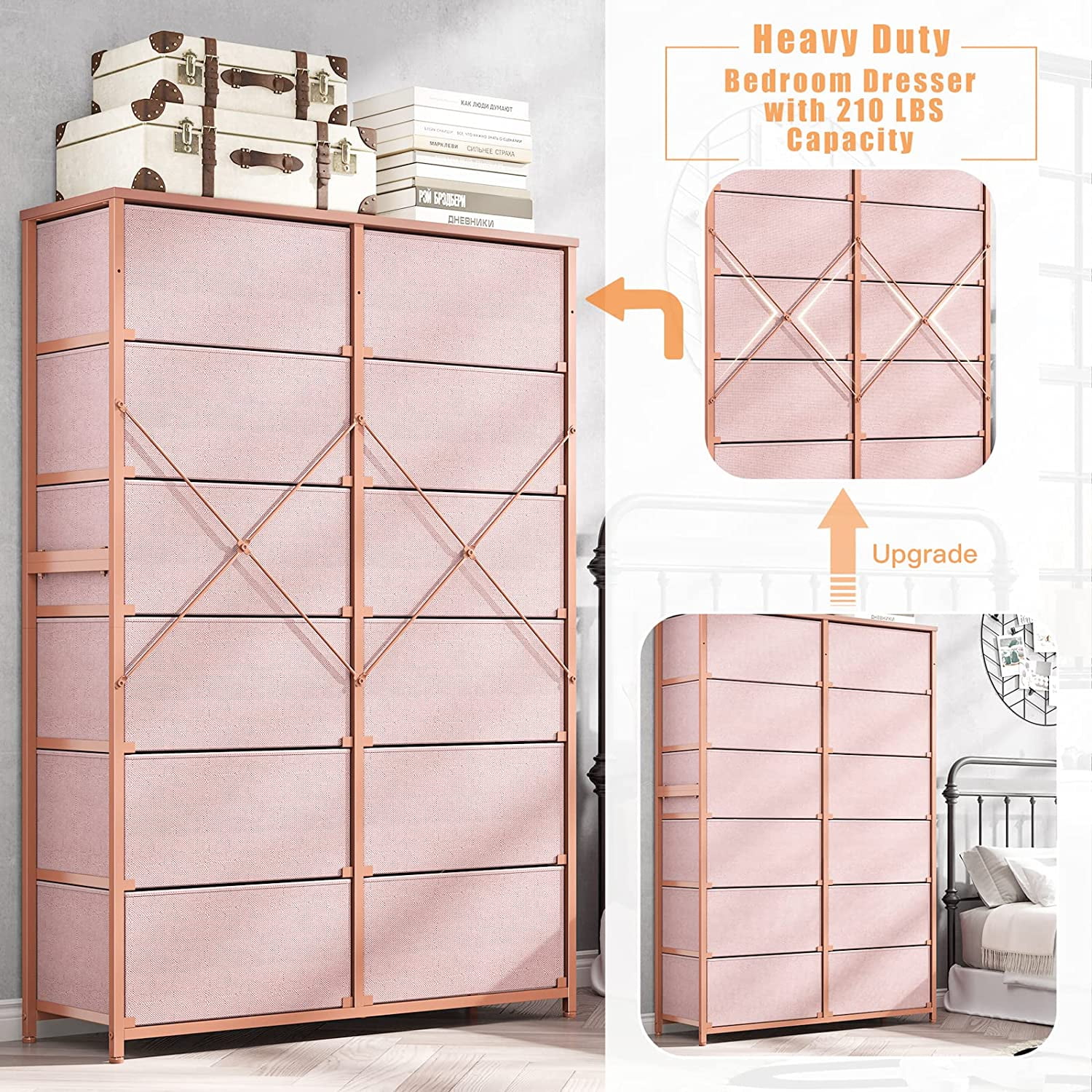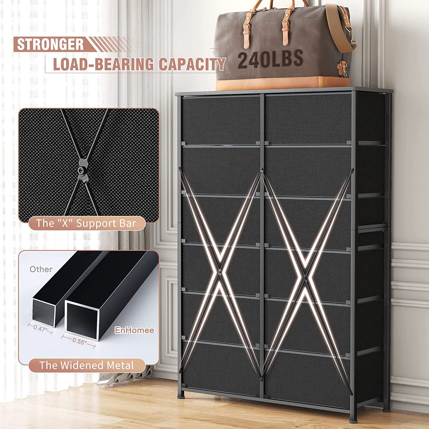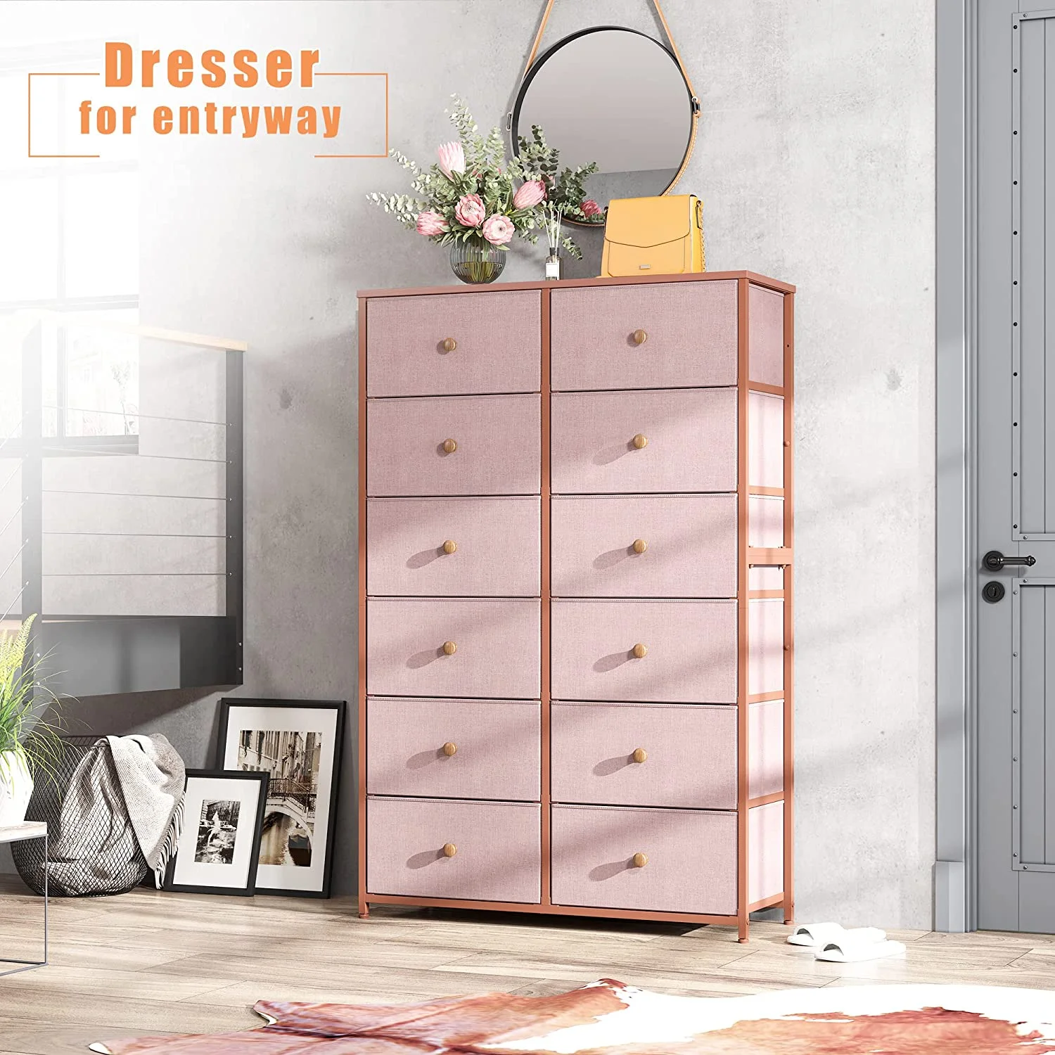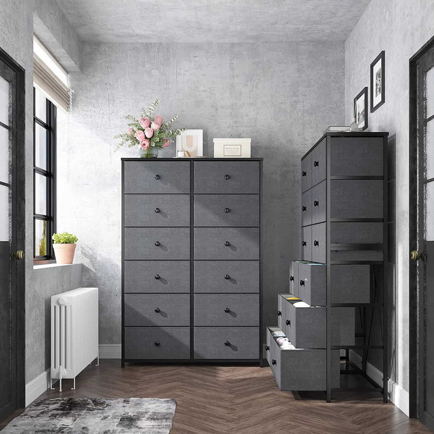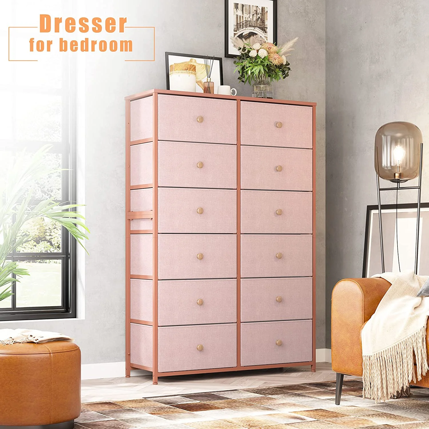 REAHOME 12 Drawer Steel Frame Bedroom Storage Organizer Dresser, Dark Taupe