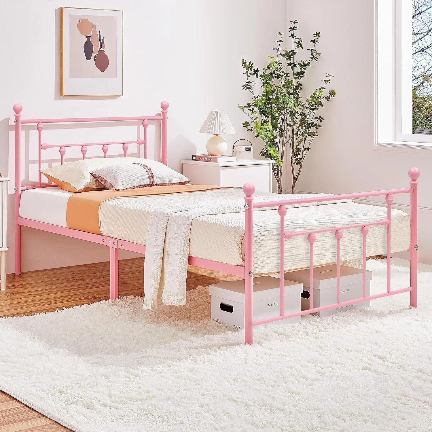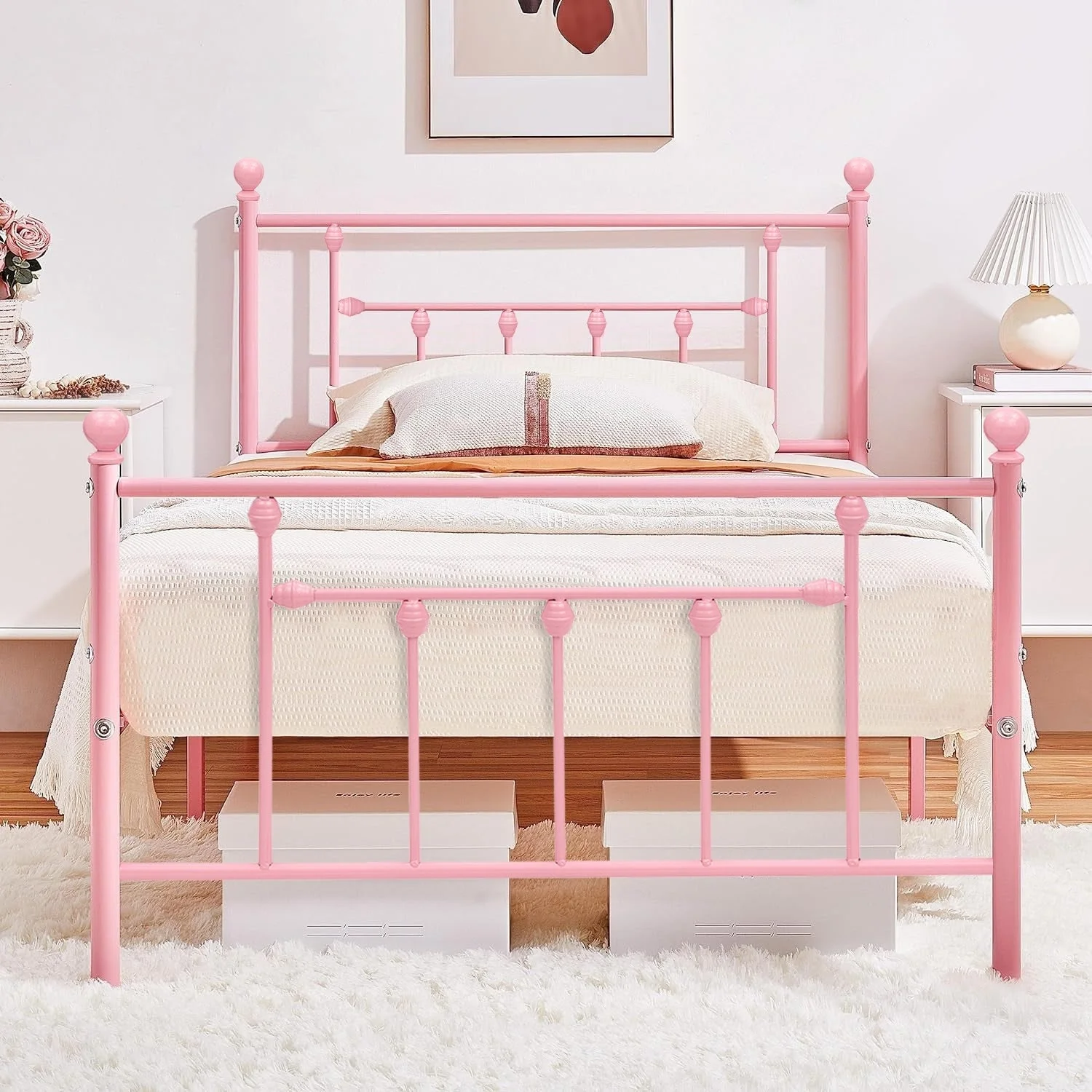 Javlergo Twin Size Platform Bed Frame with Headboard and Footboard for Girls/Boys, No Box Spring Needed Black