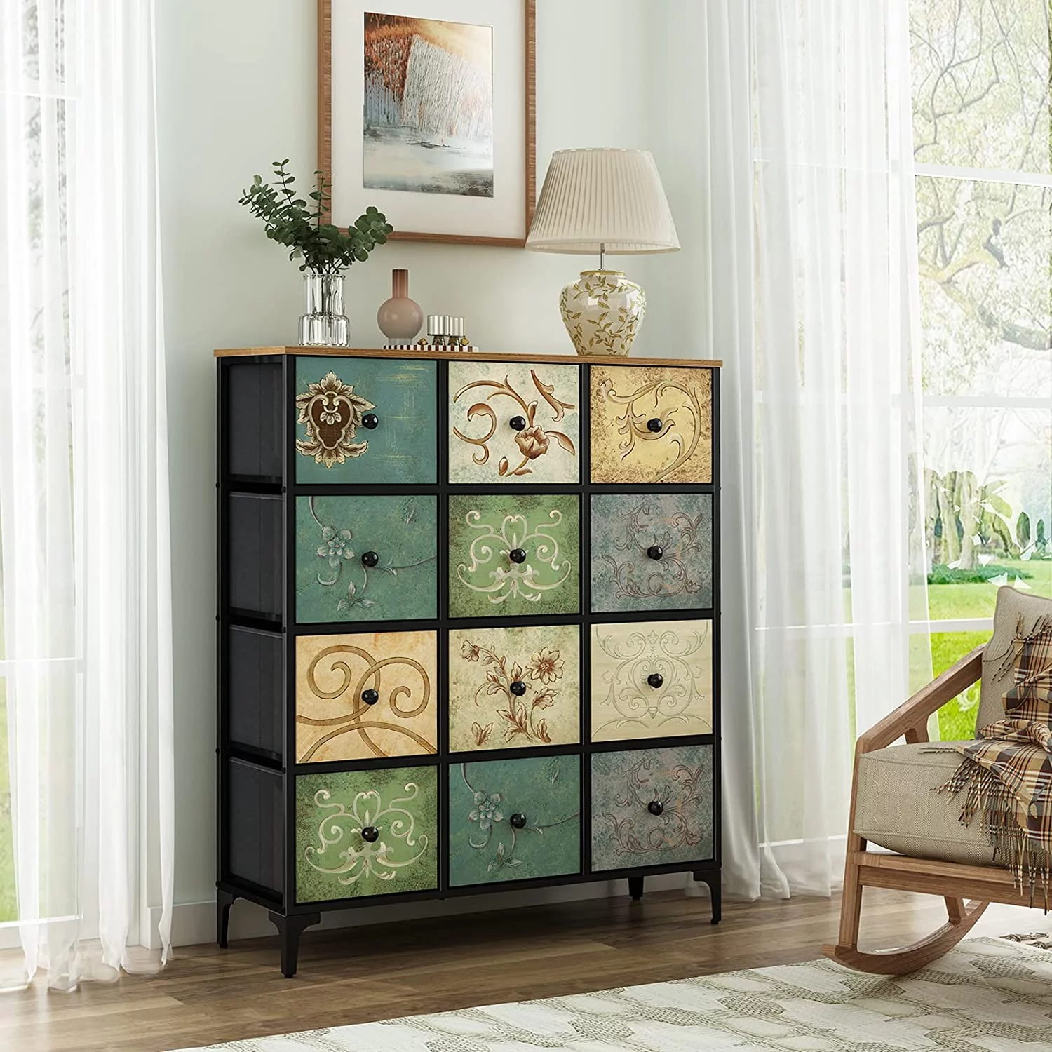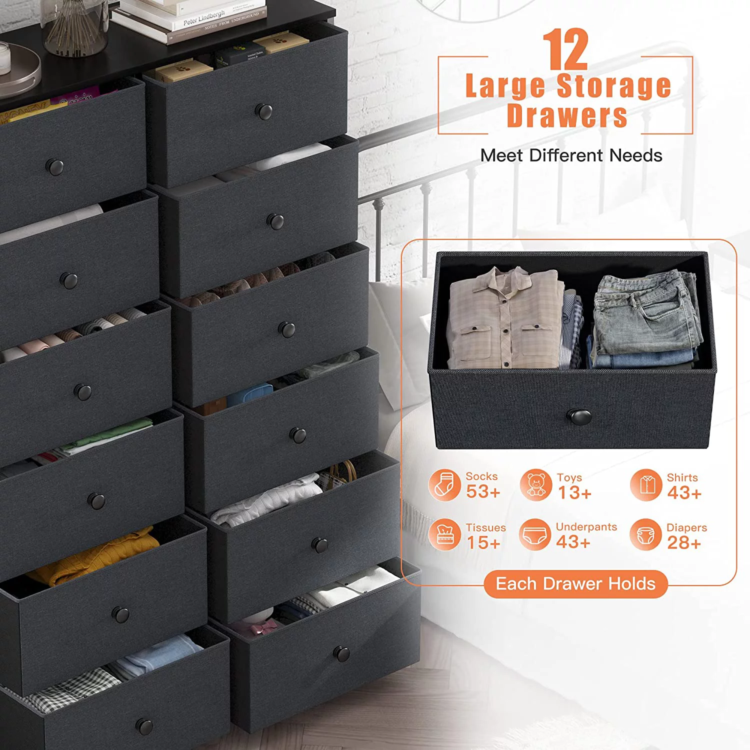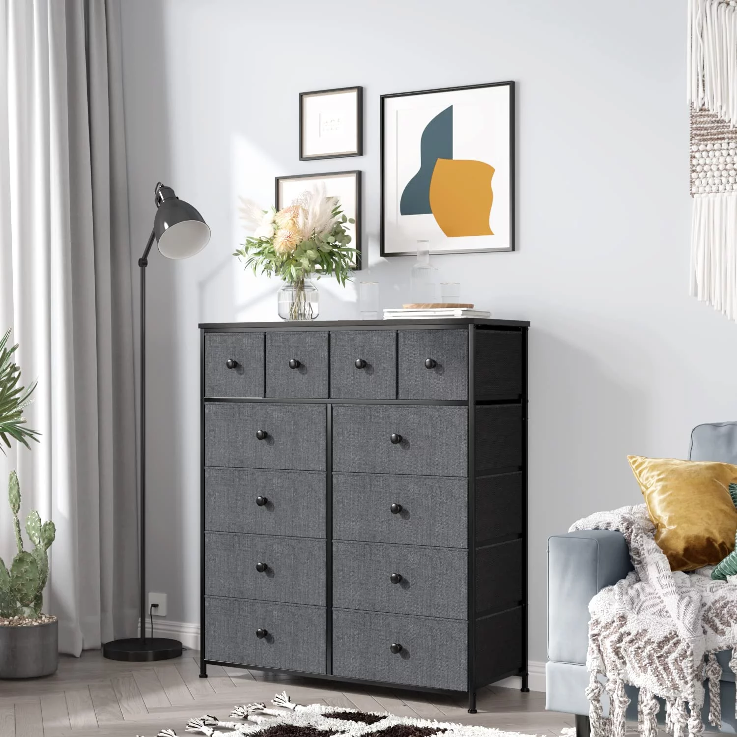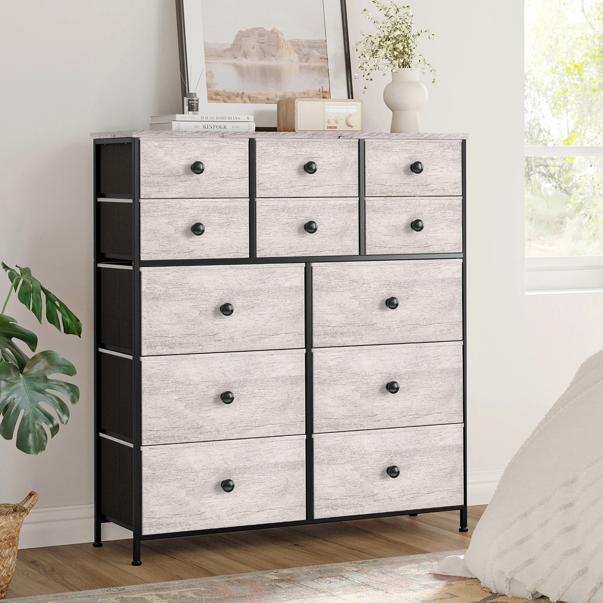 Bigroof 12 Drawers Dresser with Fabric Drawers Chest of Drawers for Bedroom, Closet, Nursery Black