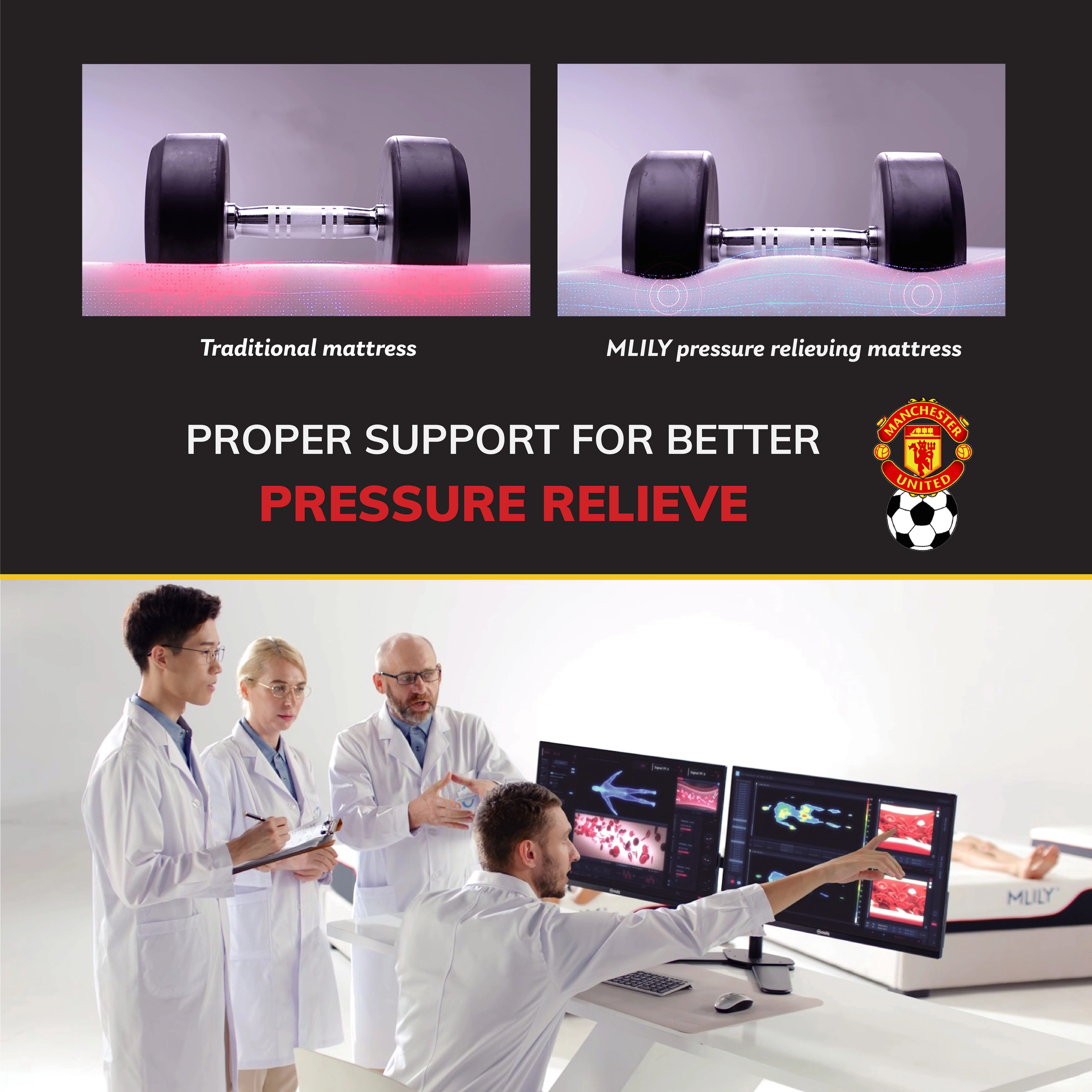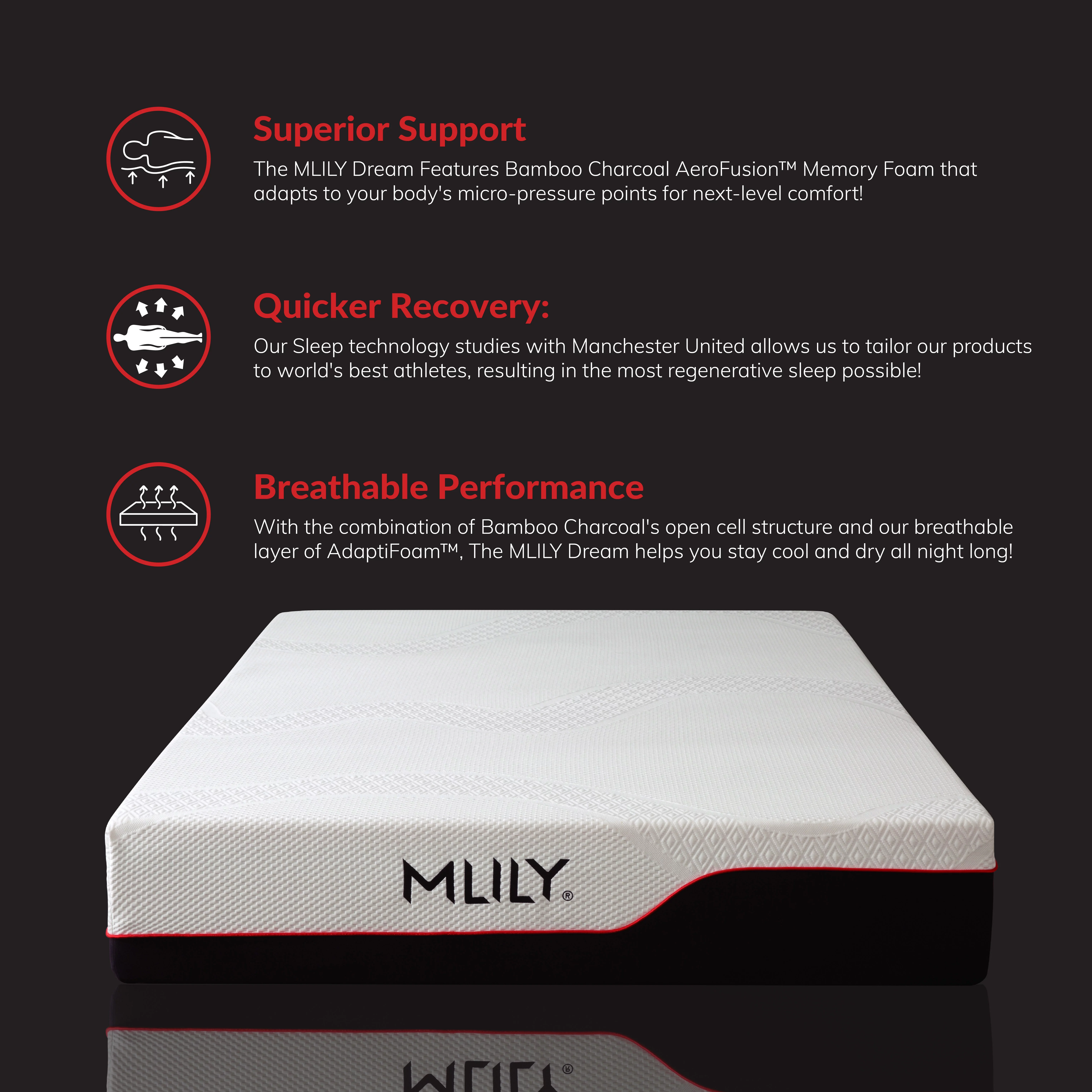 MLILY Manchester United Theatre 12 inch Memory Foam Mattress, Queen Size Mattress in a Box, Medium Plush
