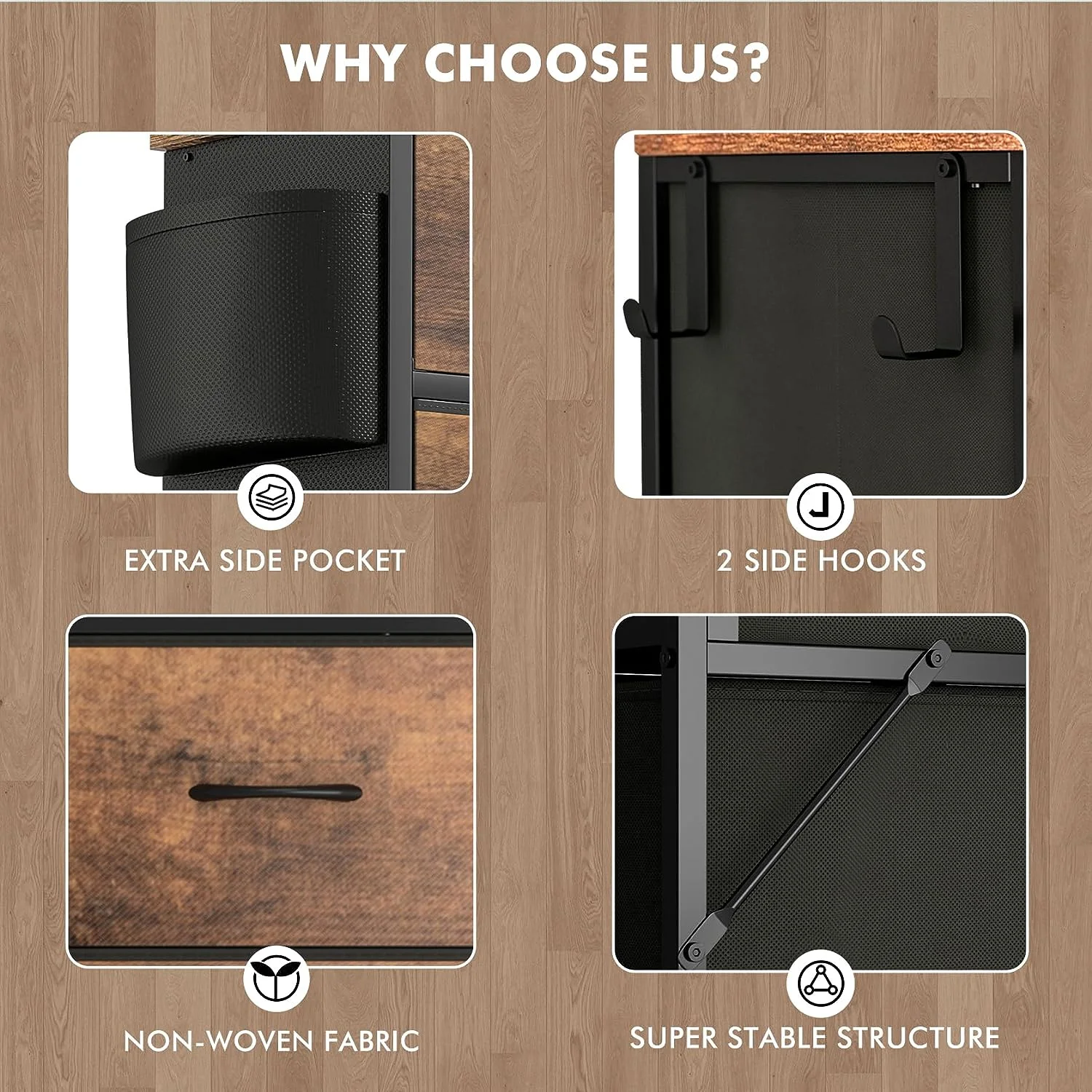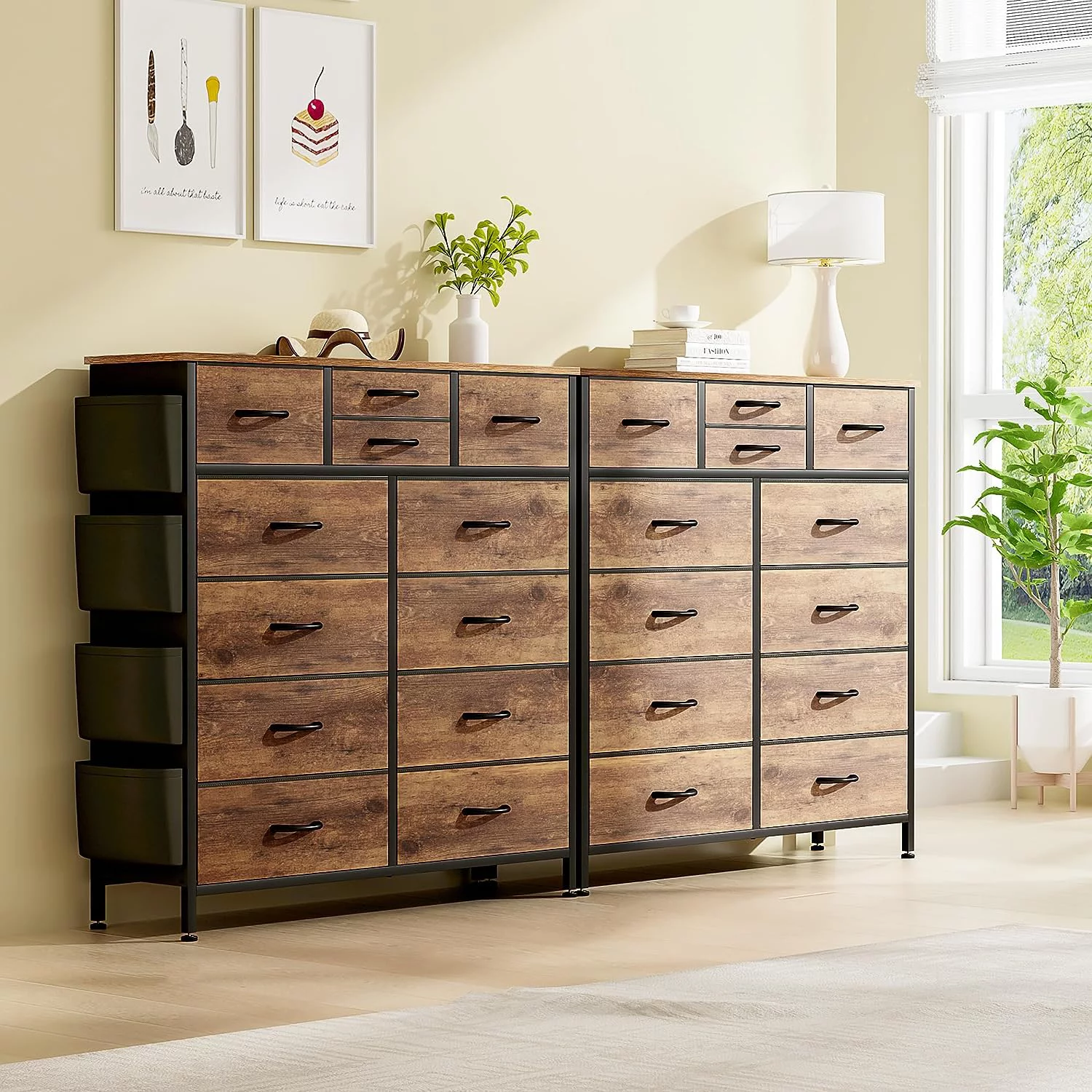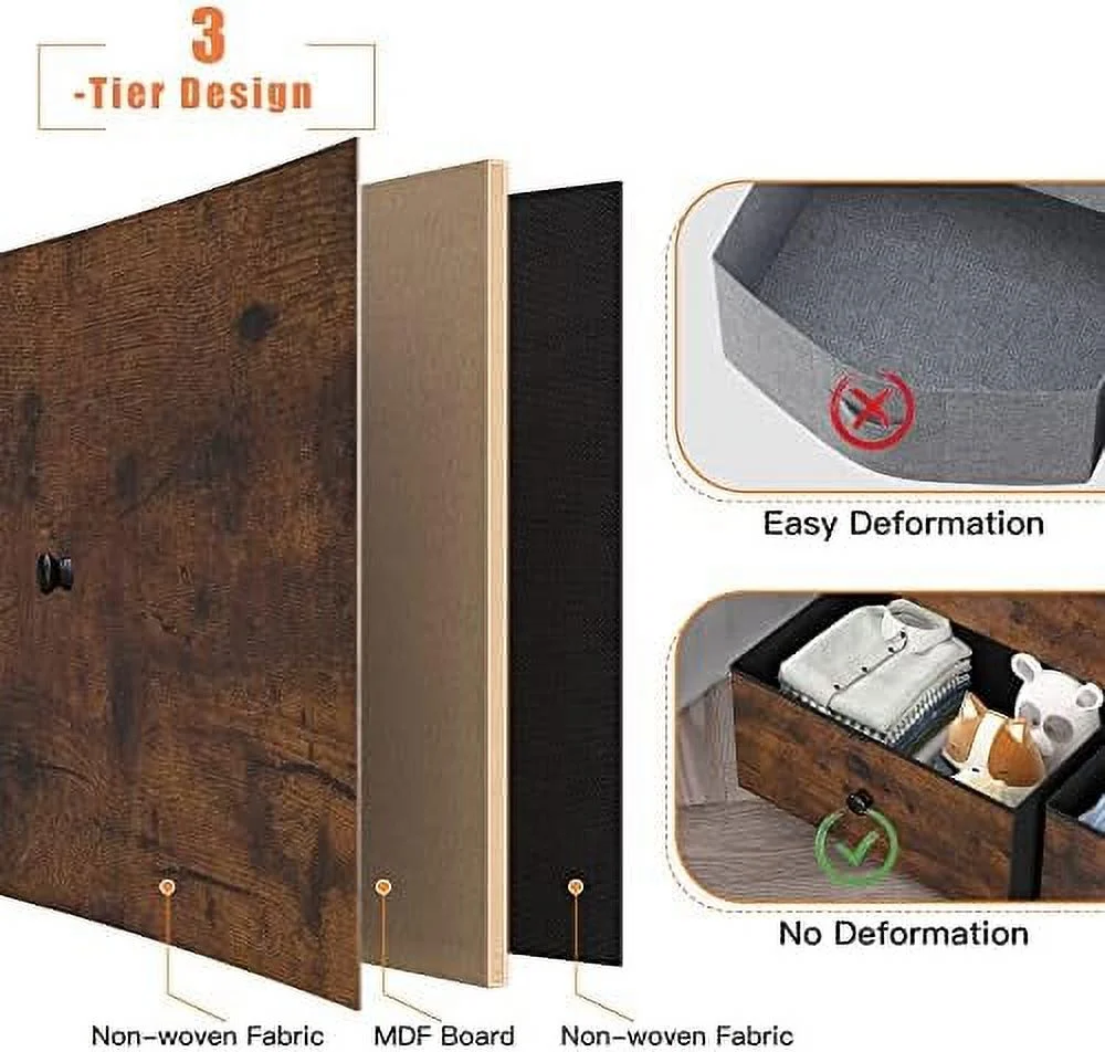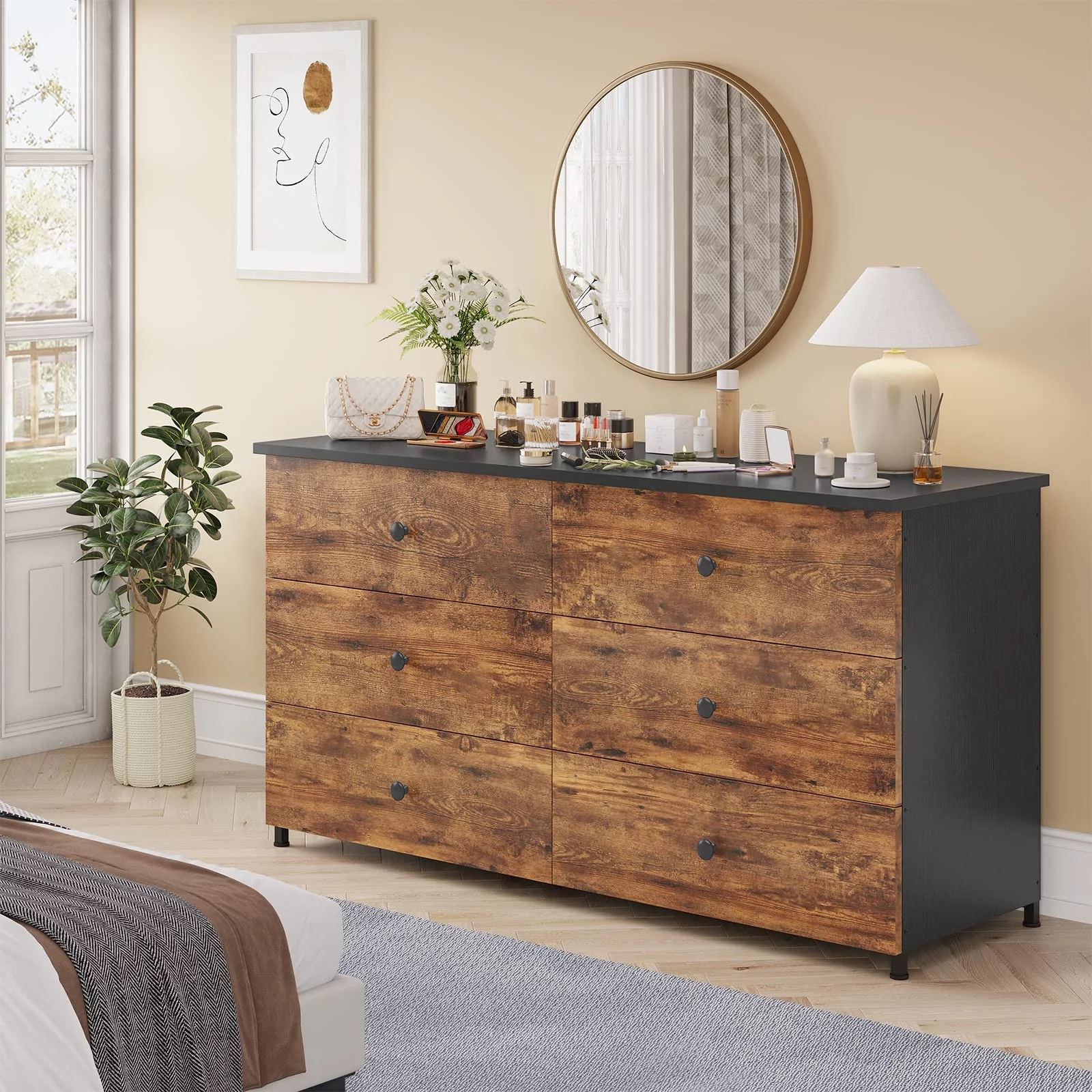 Afuhokles 6 Double Drawer Dresser, Wooden Chest of Drawers with Heavy Sturdy Steel Frame for Bedroom, Rustic Brown