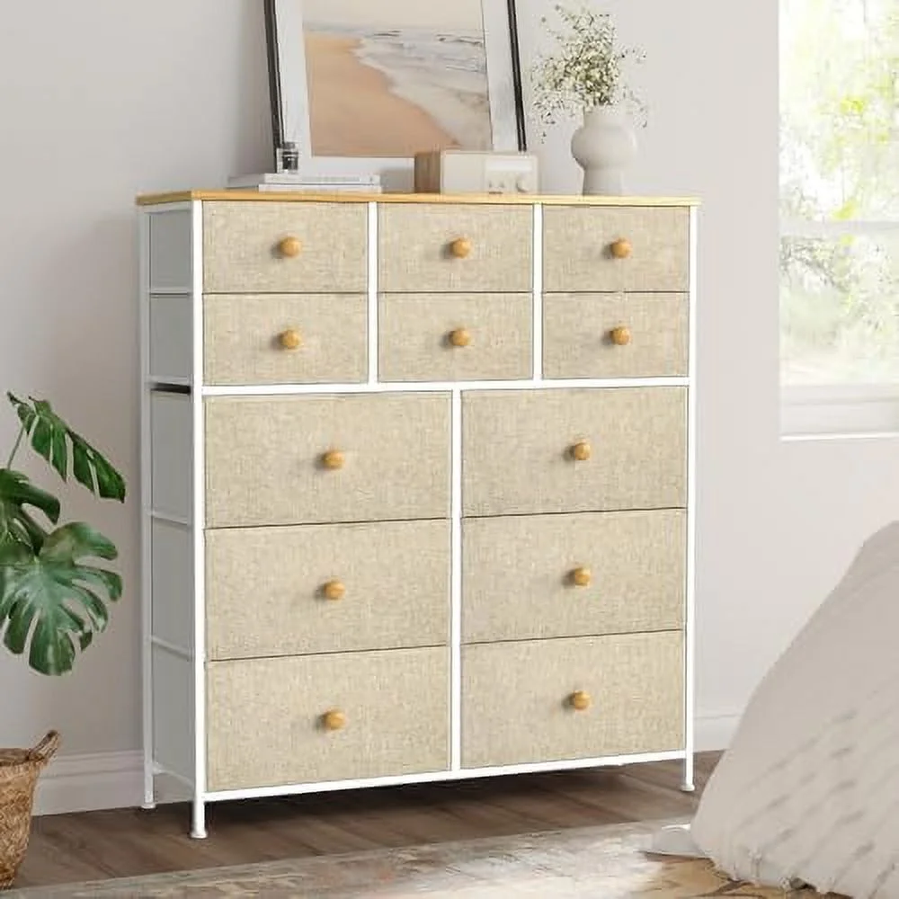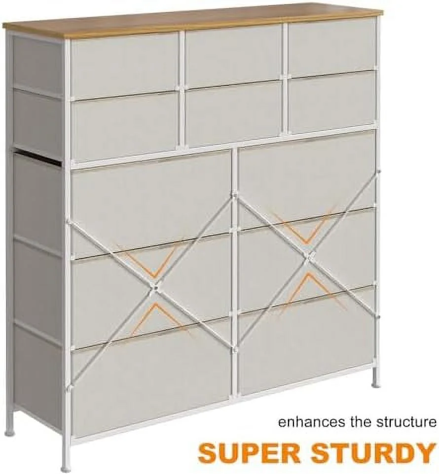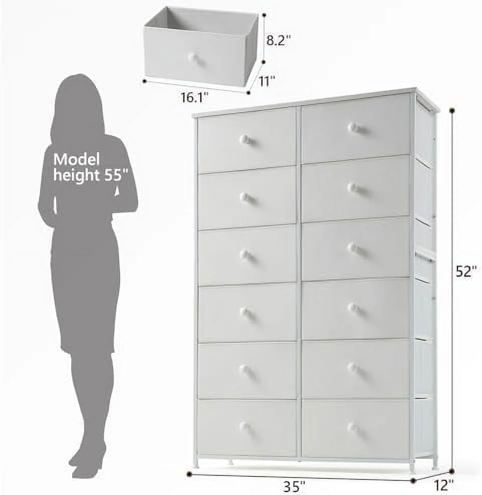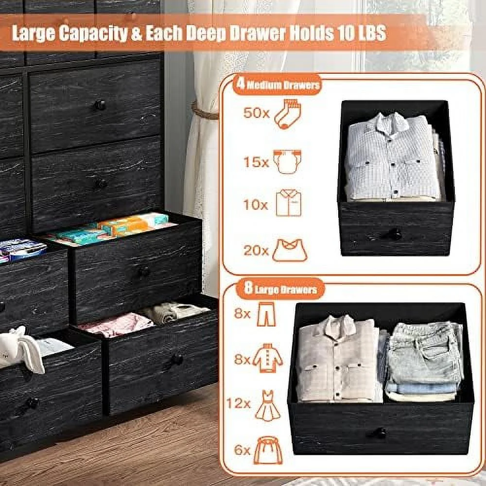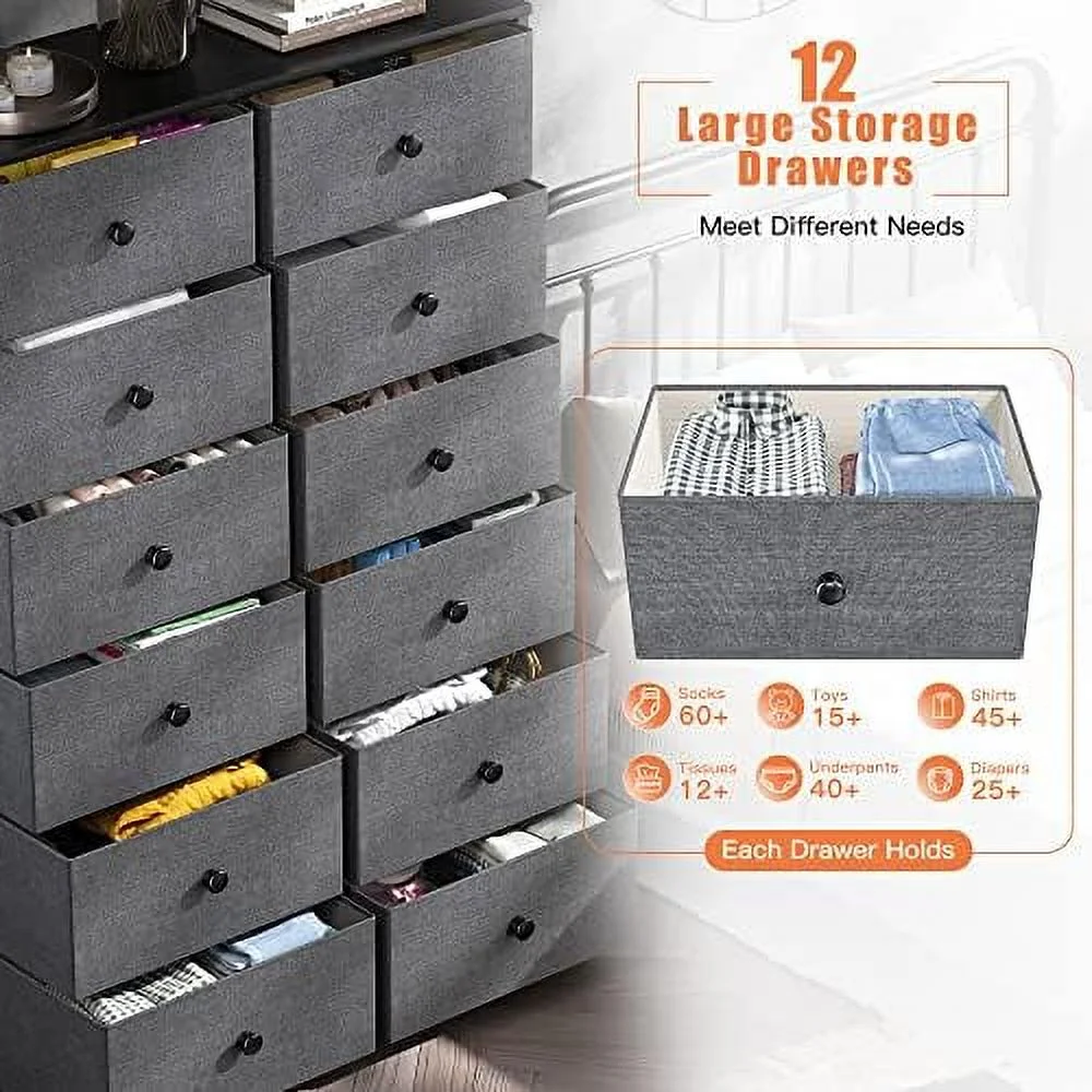 Large Tall Dresser with 12 Drawers for Closet, Bedroom, Living Room, Wooden Top