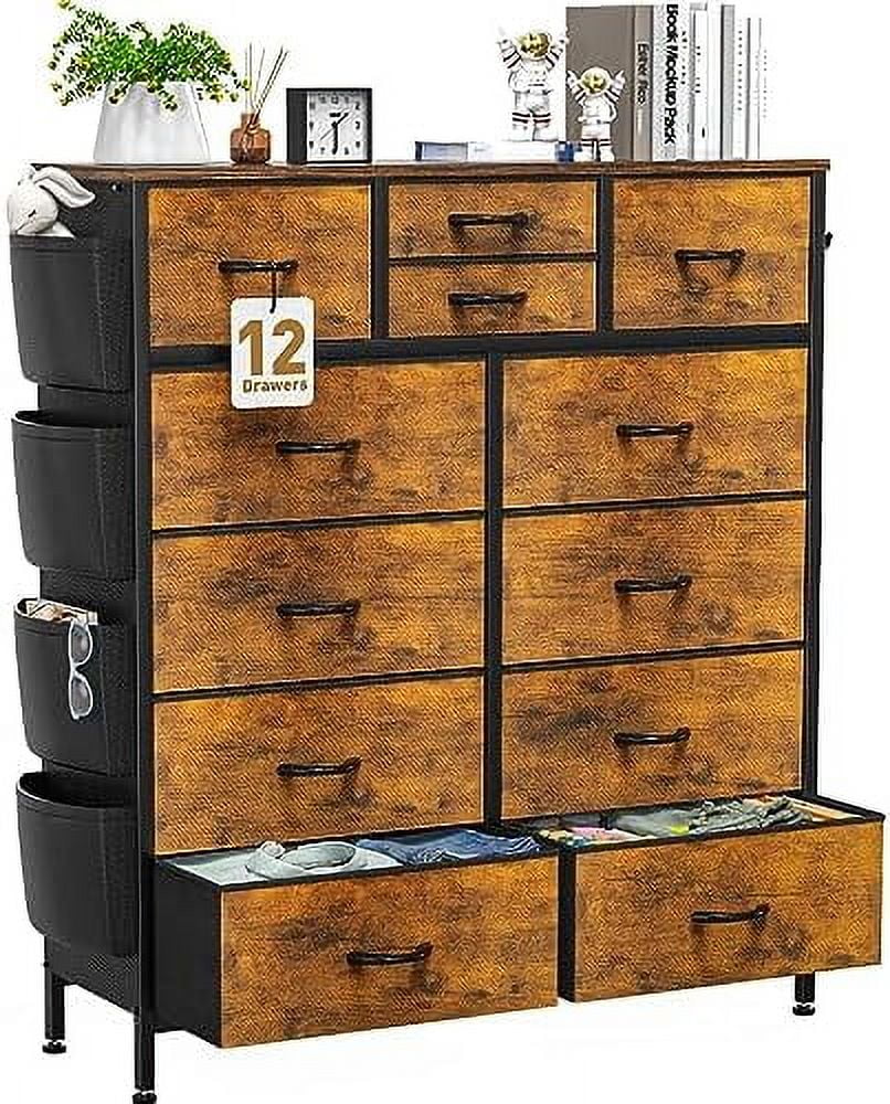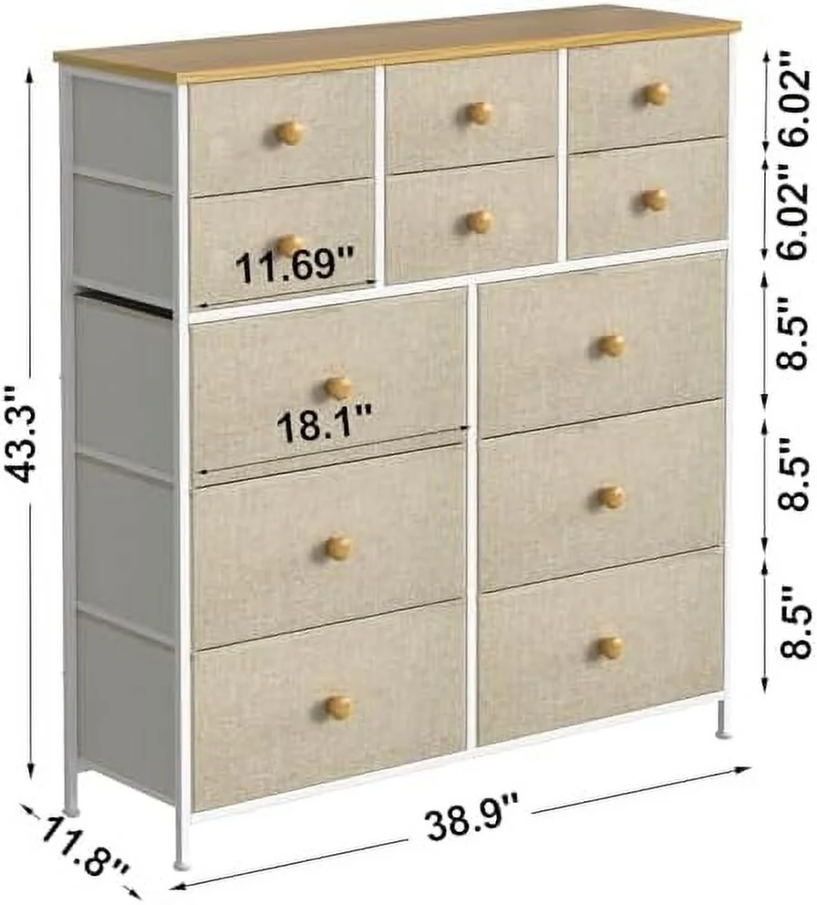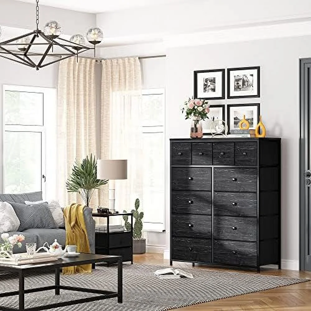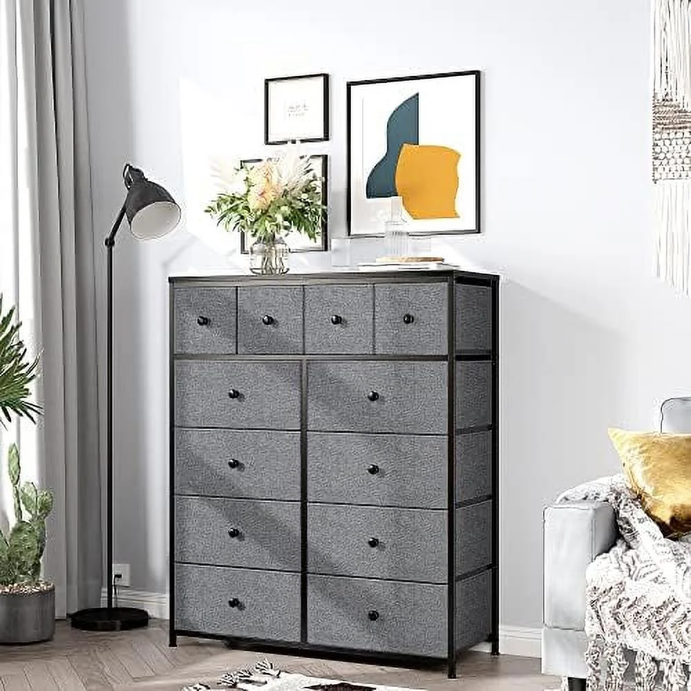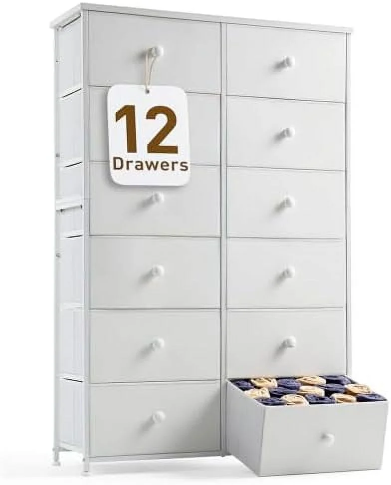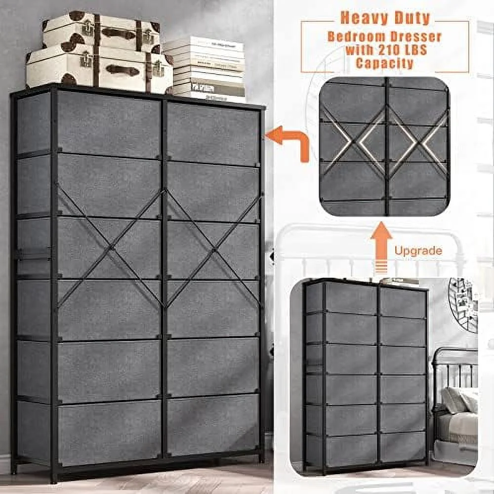 Large Tall Dresser with 12 Drawers for Closet, Bedroom, Living Room, Wooden Top