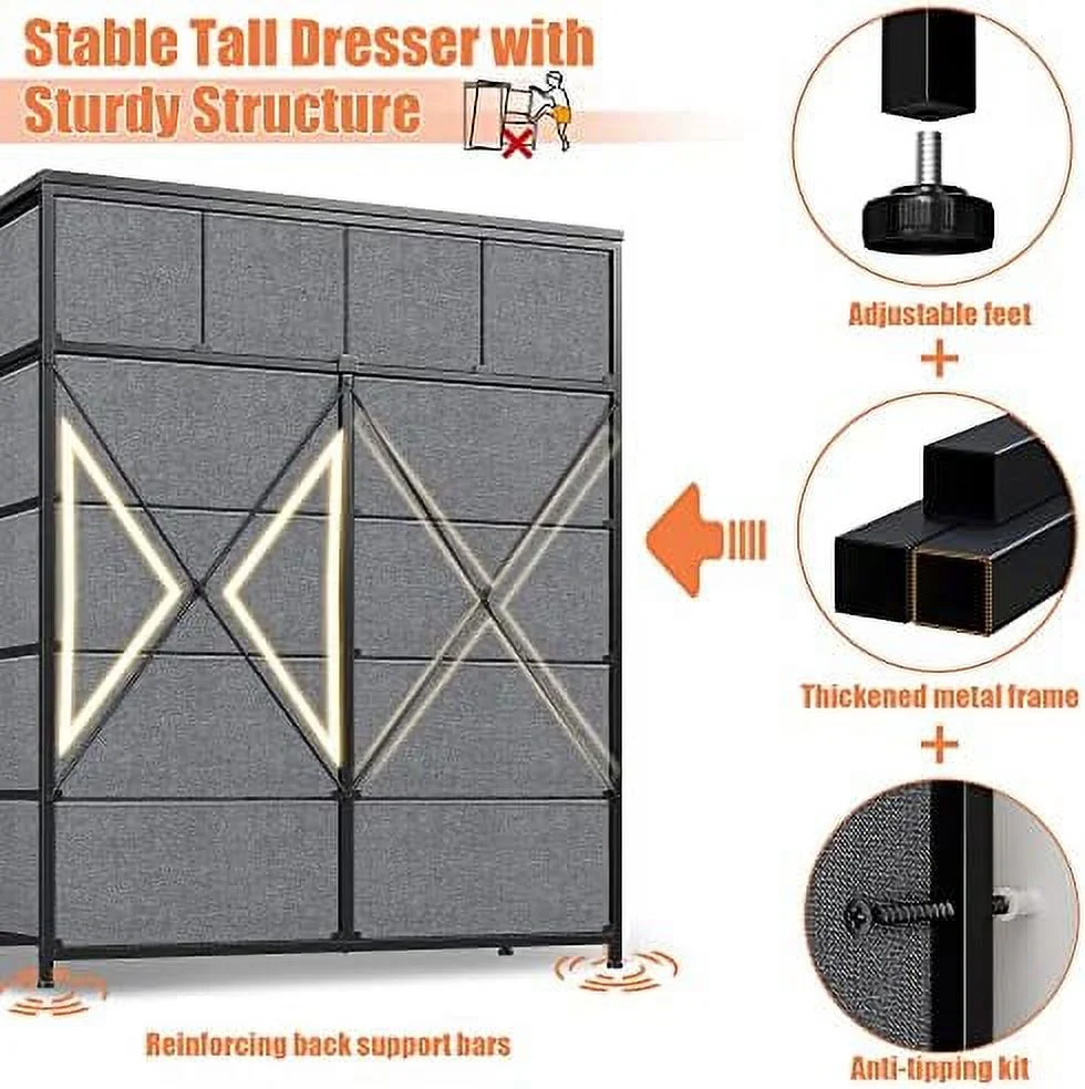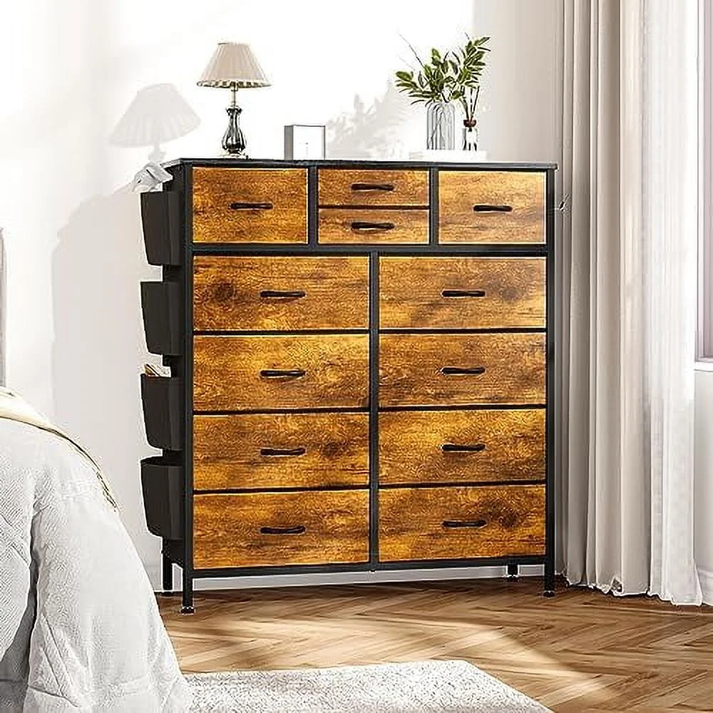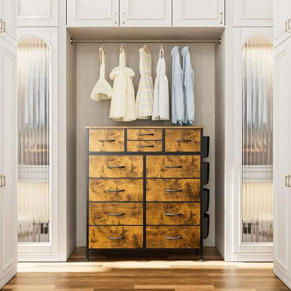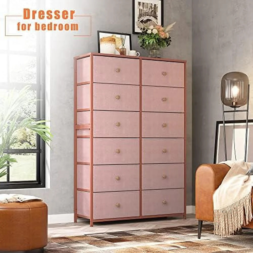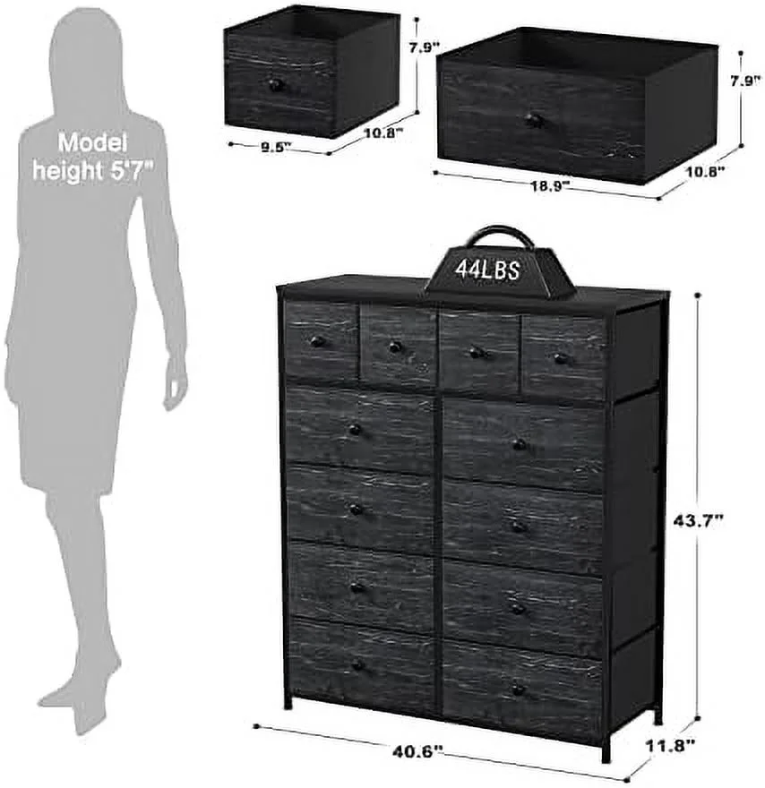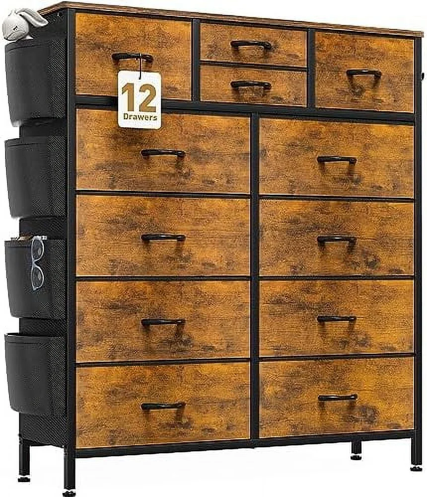 Large Tall Dresser with 12 Drawers for Closet, Bedroom, Living Room, Wooden Top