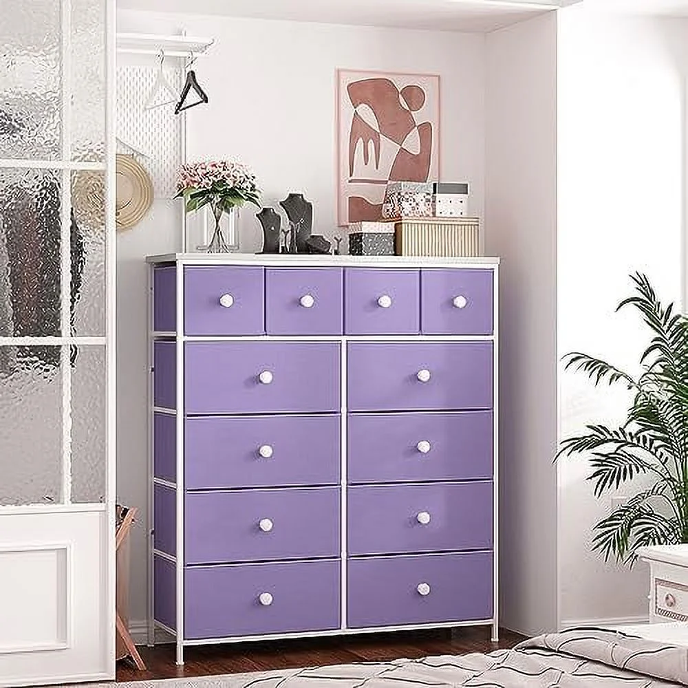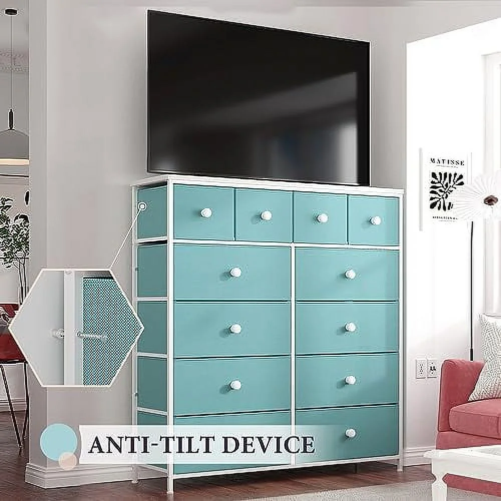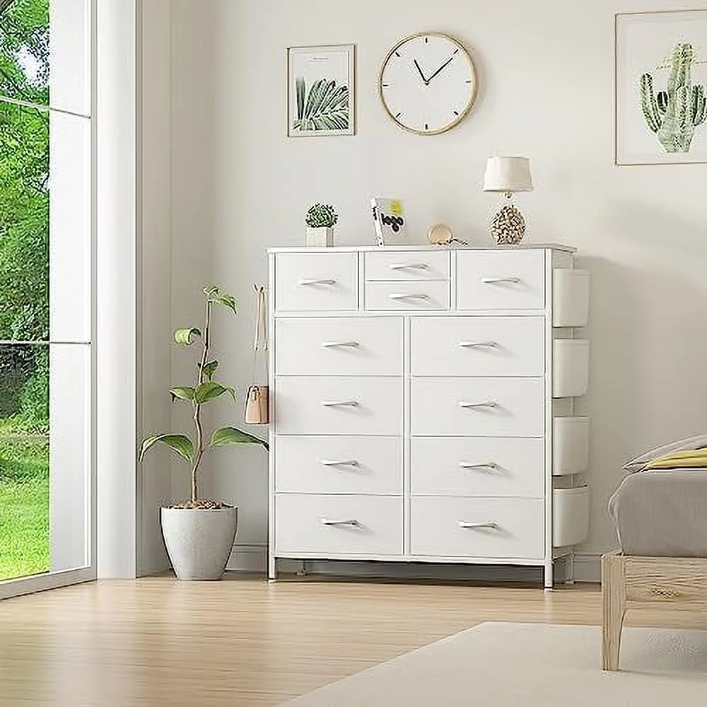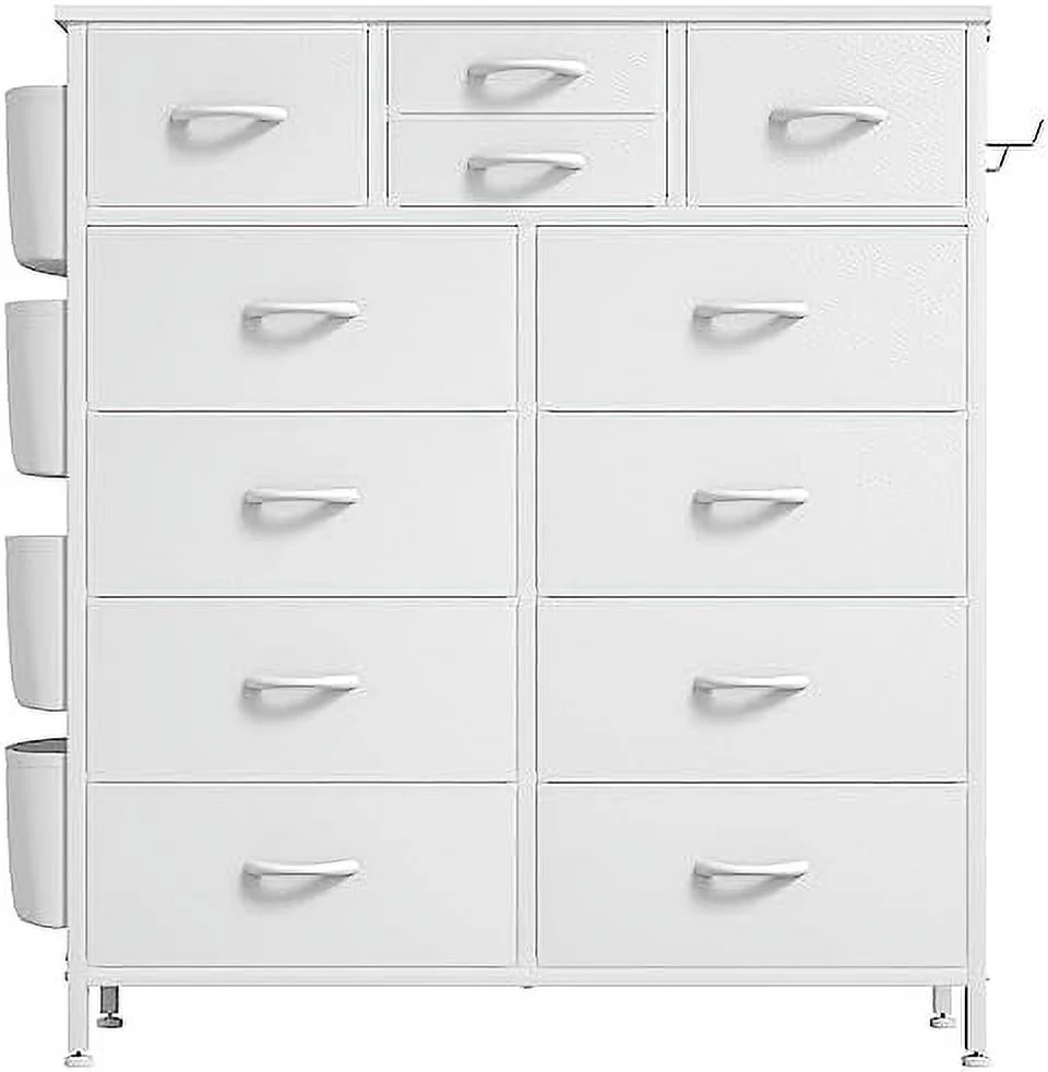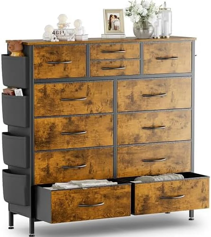 Large Tall Dresser with 12 Drawers for Closet, Bedroom, Living Room, Wooden Top