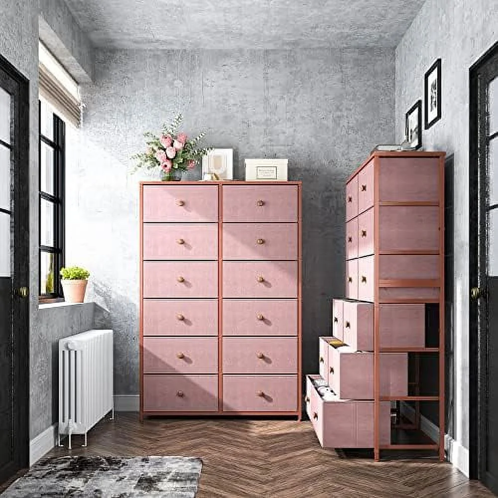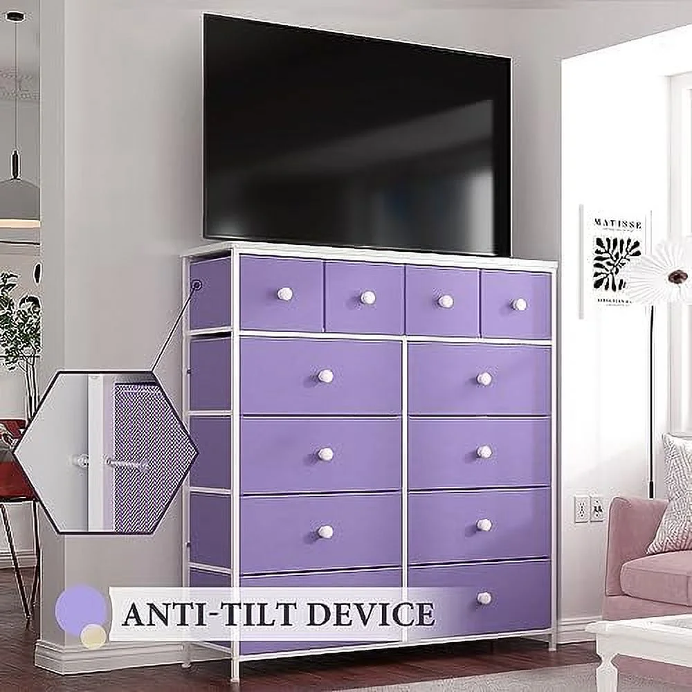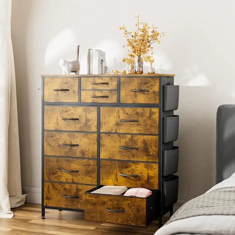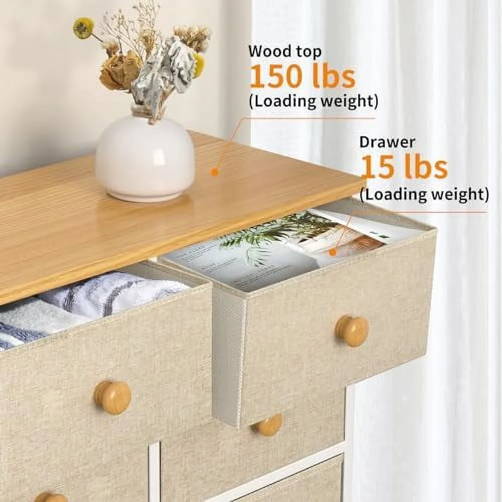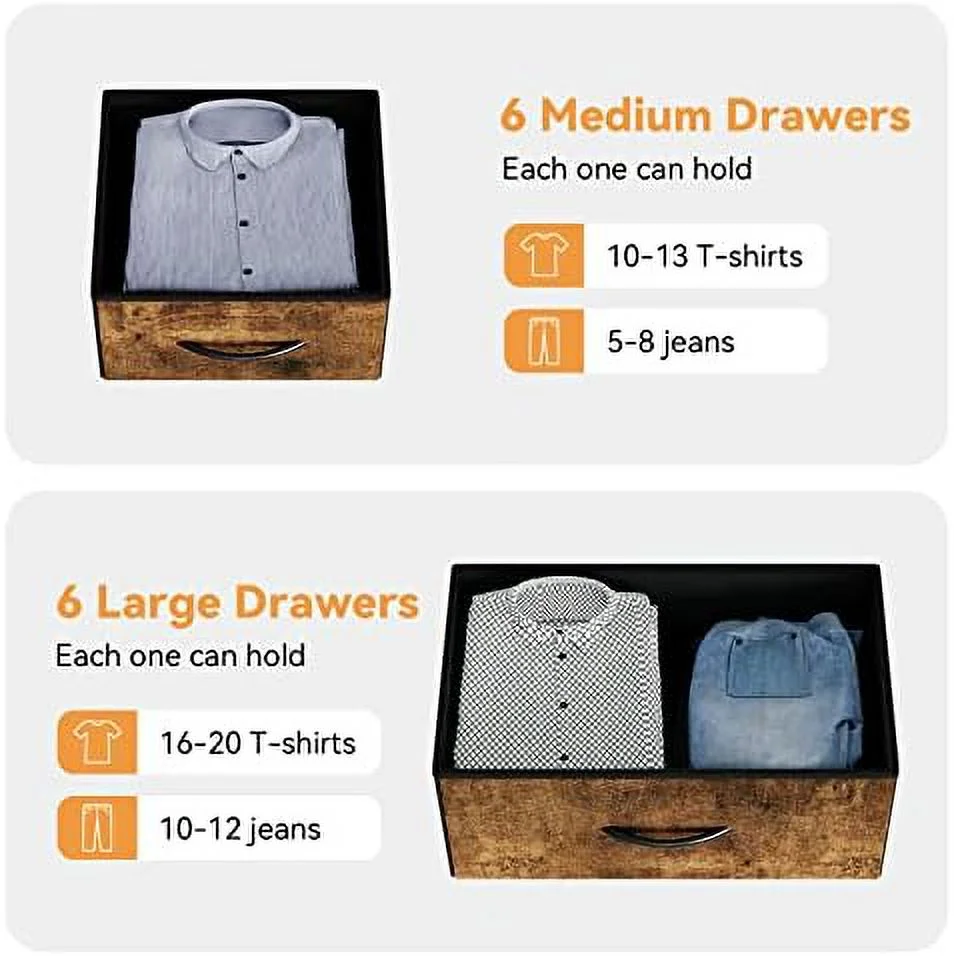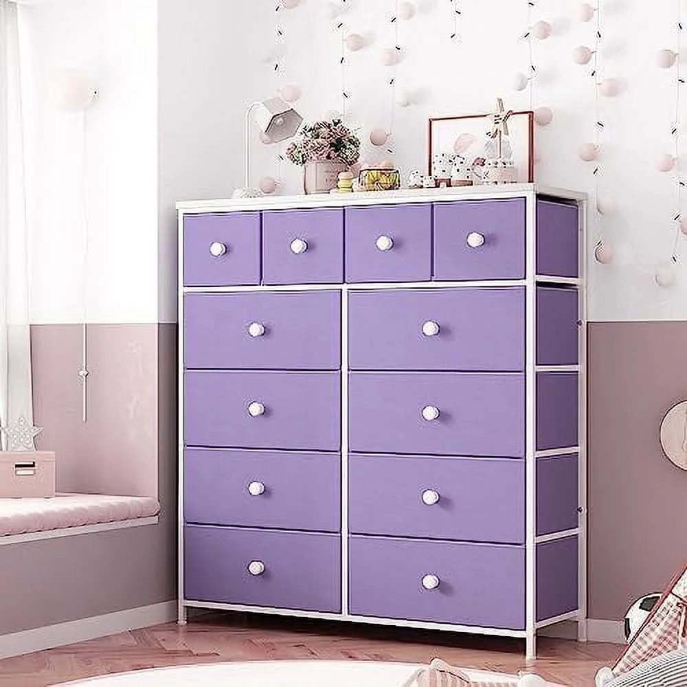 Large Tall Dresser with 12 Drawers for Closet, Bedroom, Living Room, Wooden Top