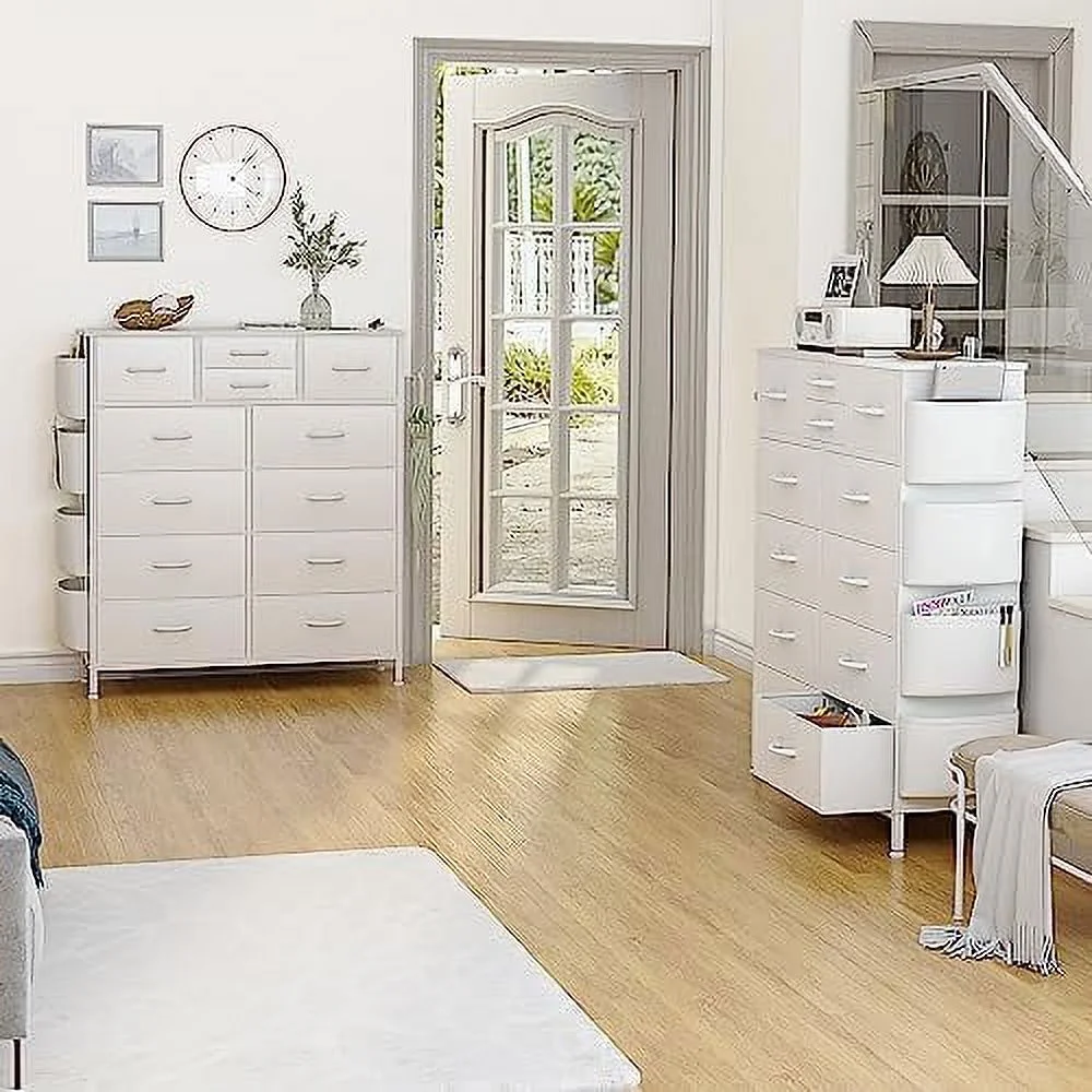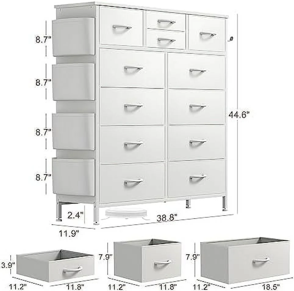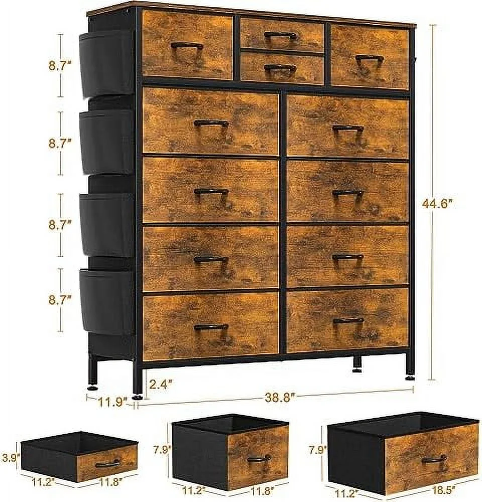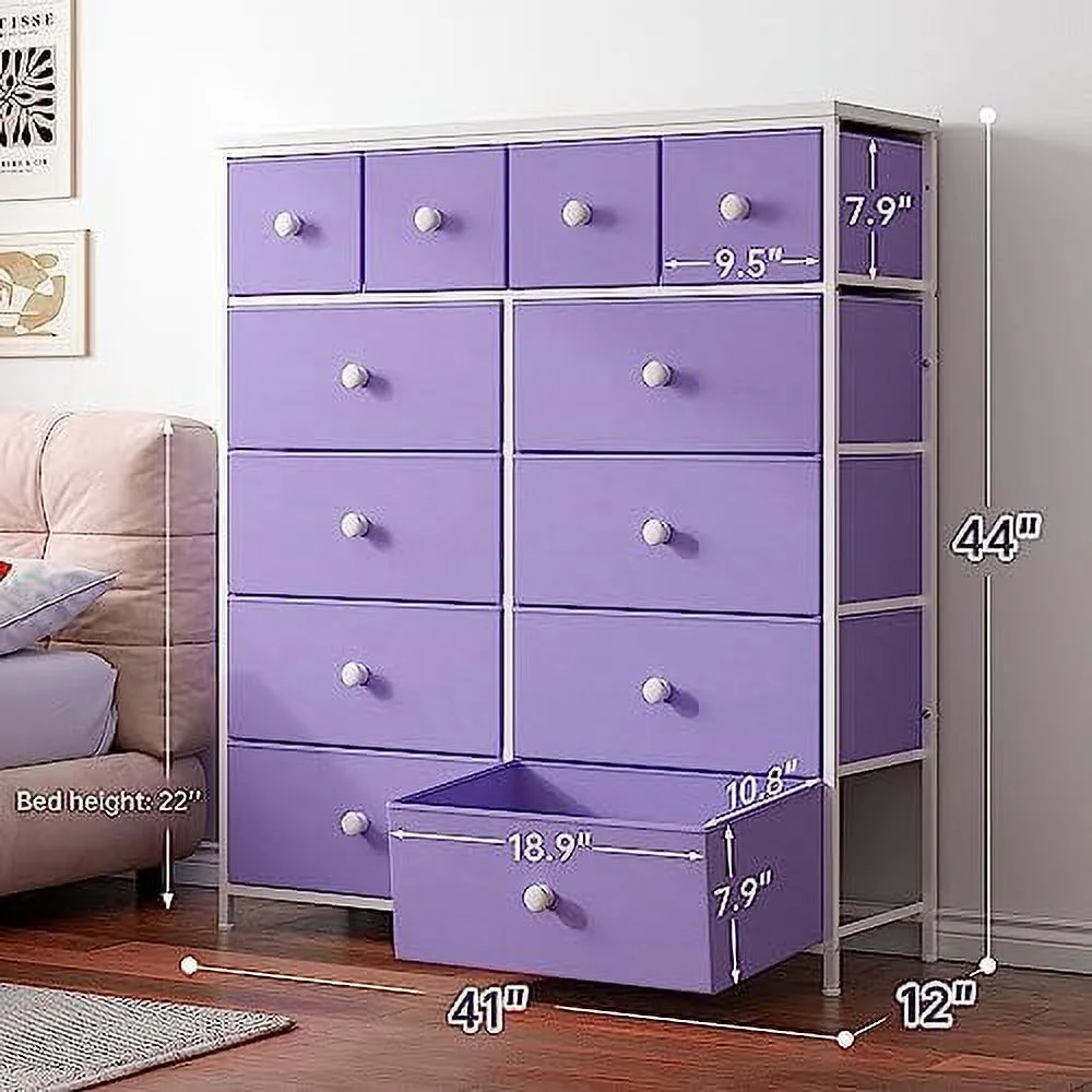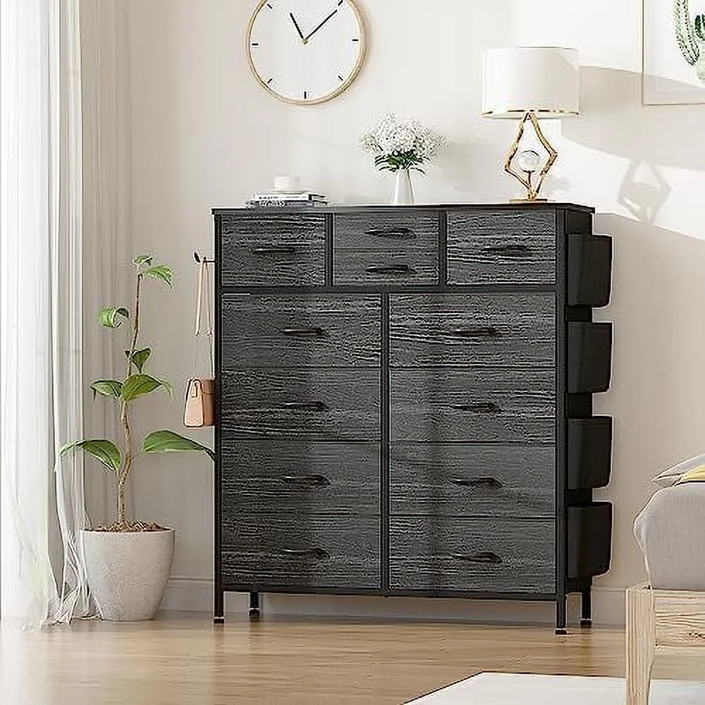Large Tall Dresser with 12 Drawers for Closet, Bedroom, Living Room, Wooden Top