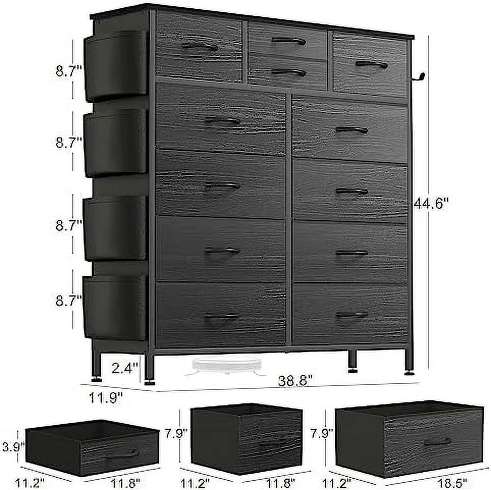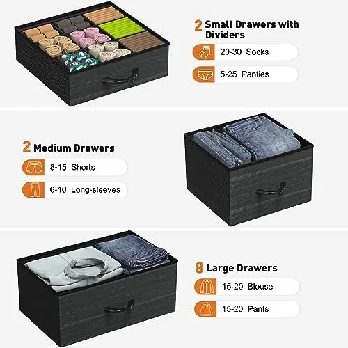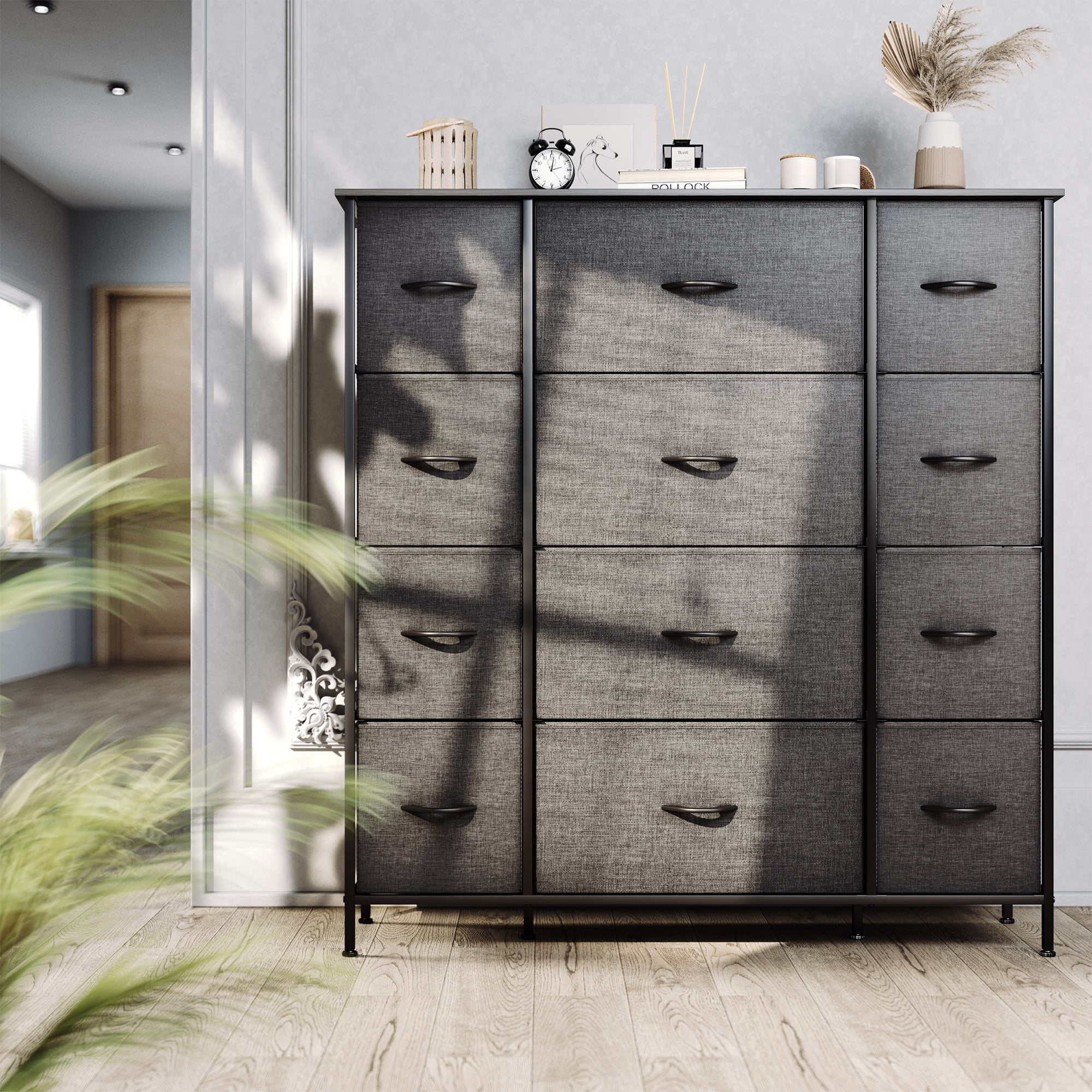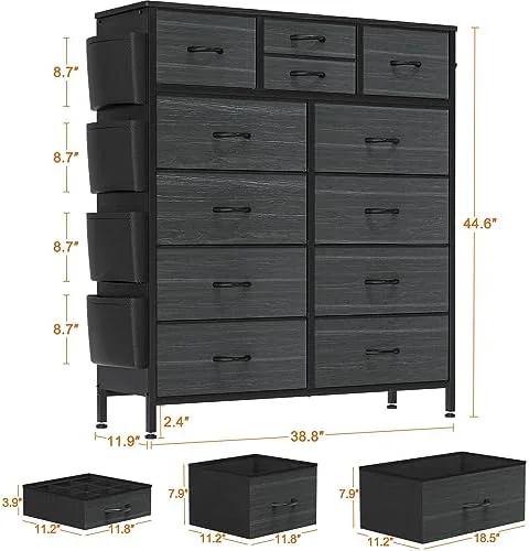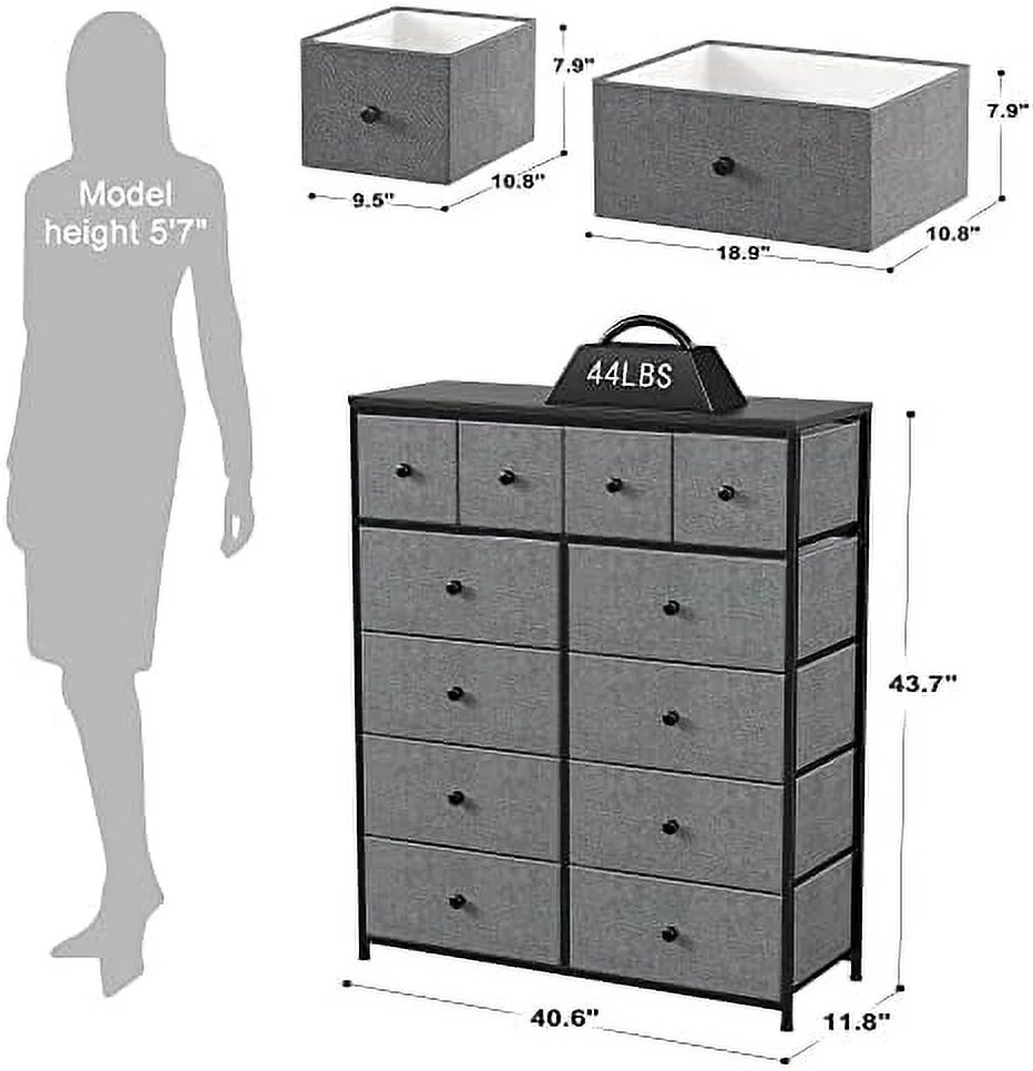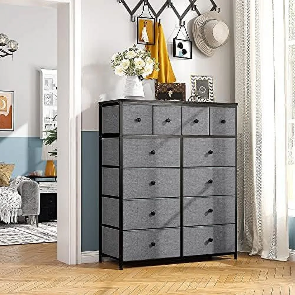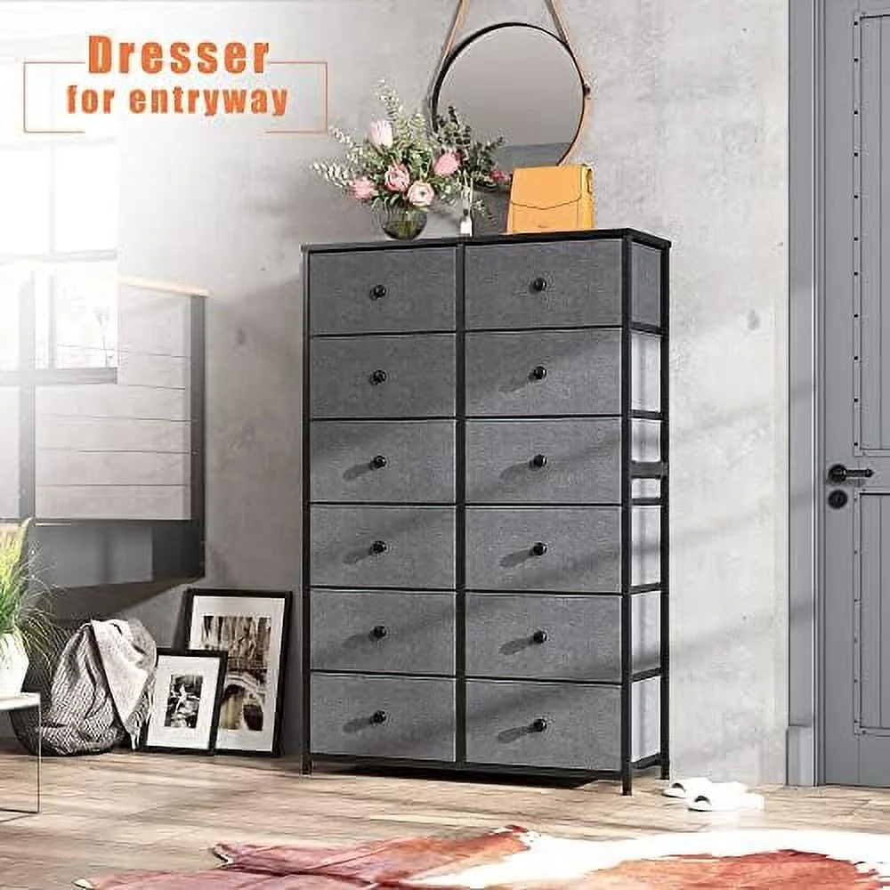 SYTHERS Storage Cabinet Organizer with 12 Drawers, Fabric Dresser for Closet, Living Room, Hallway, Dark Grey