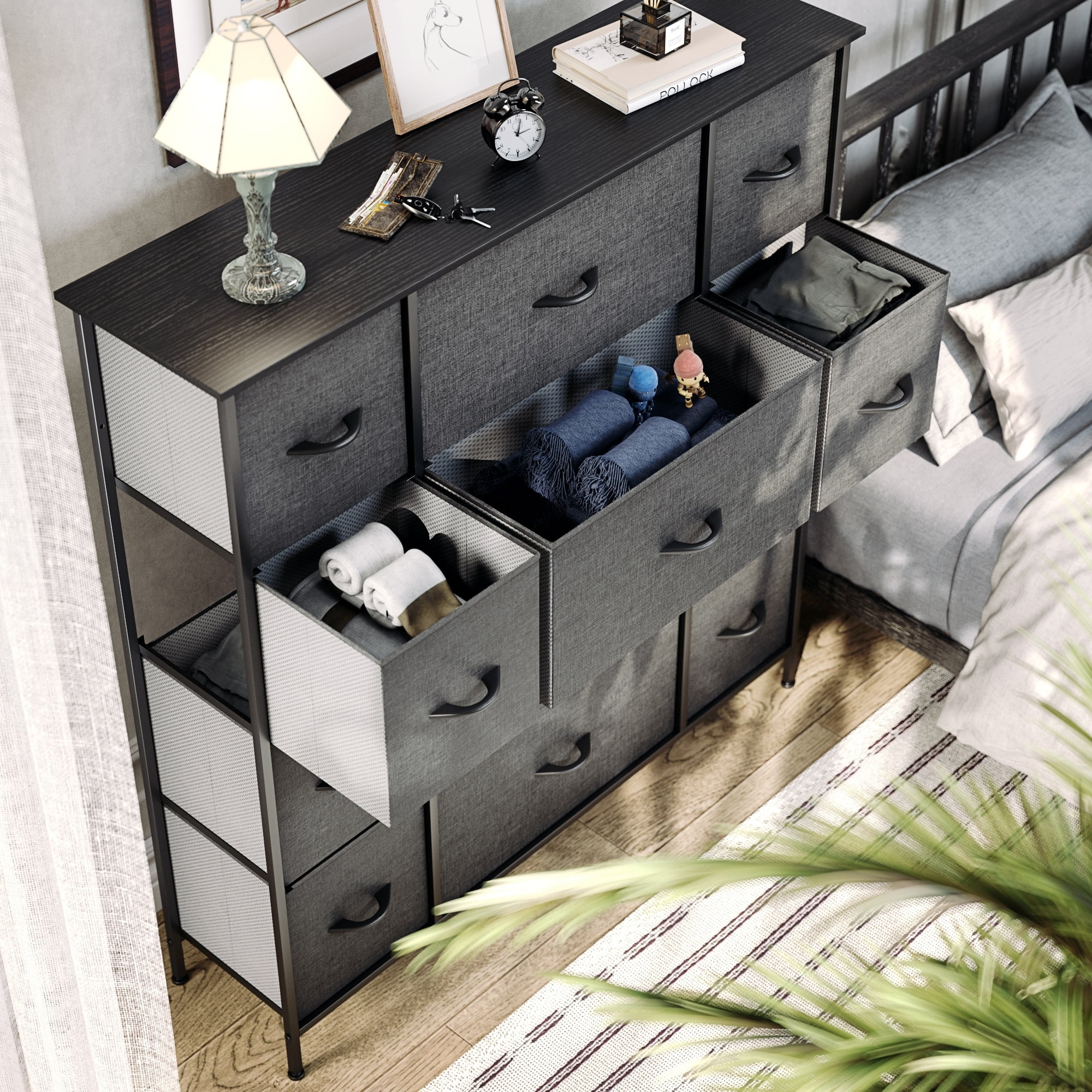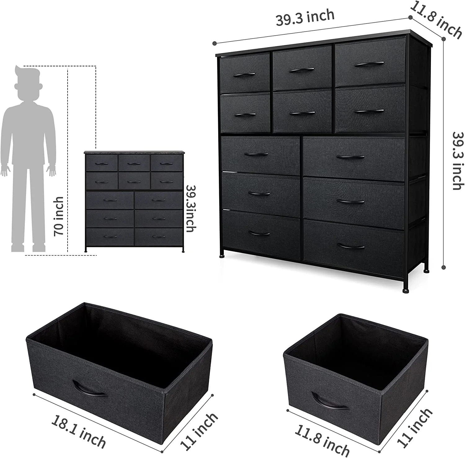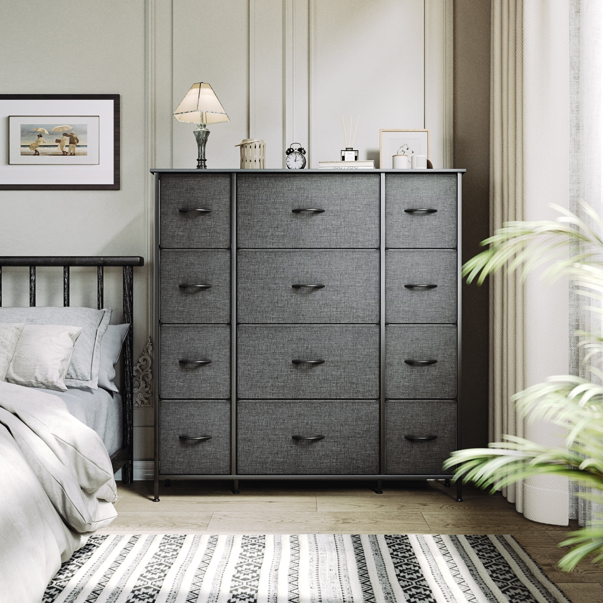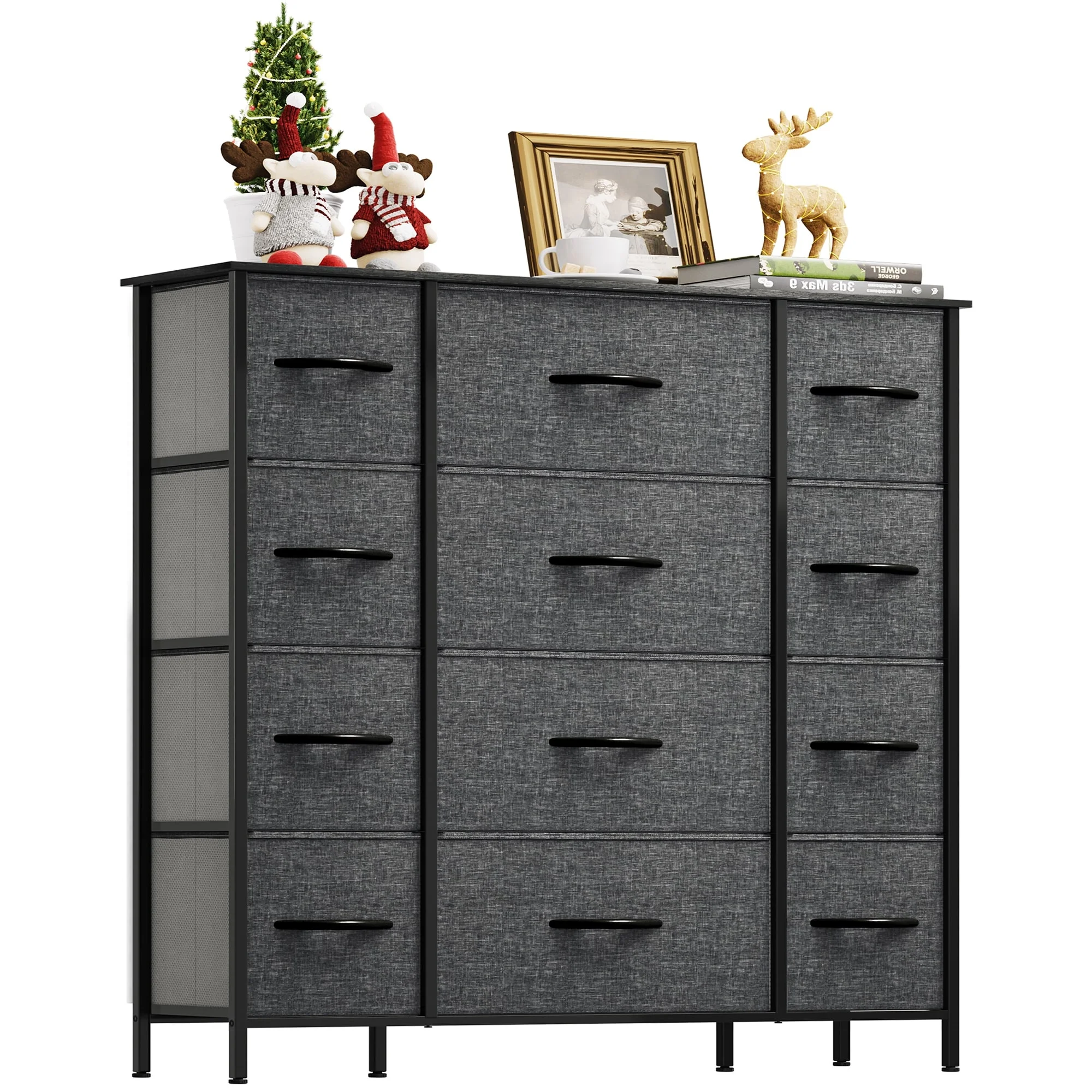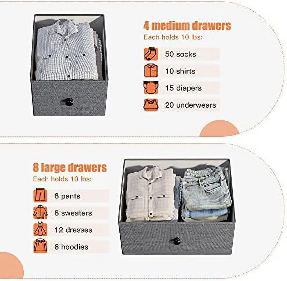 SYTHERS Storage Cabinet Organizer with 12 Drawers, Fabric Dresser for Closet, Living Room, Hallway, Dark Grey