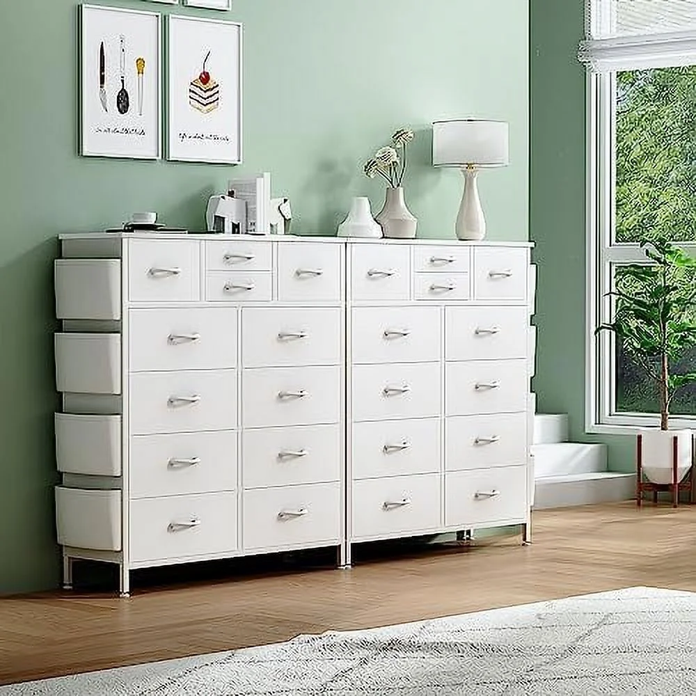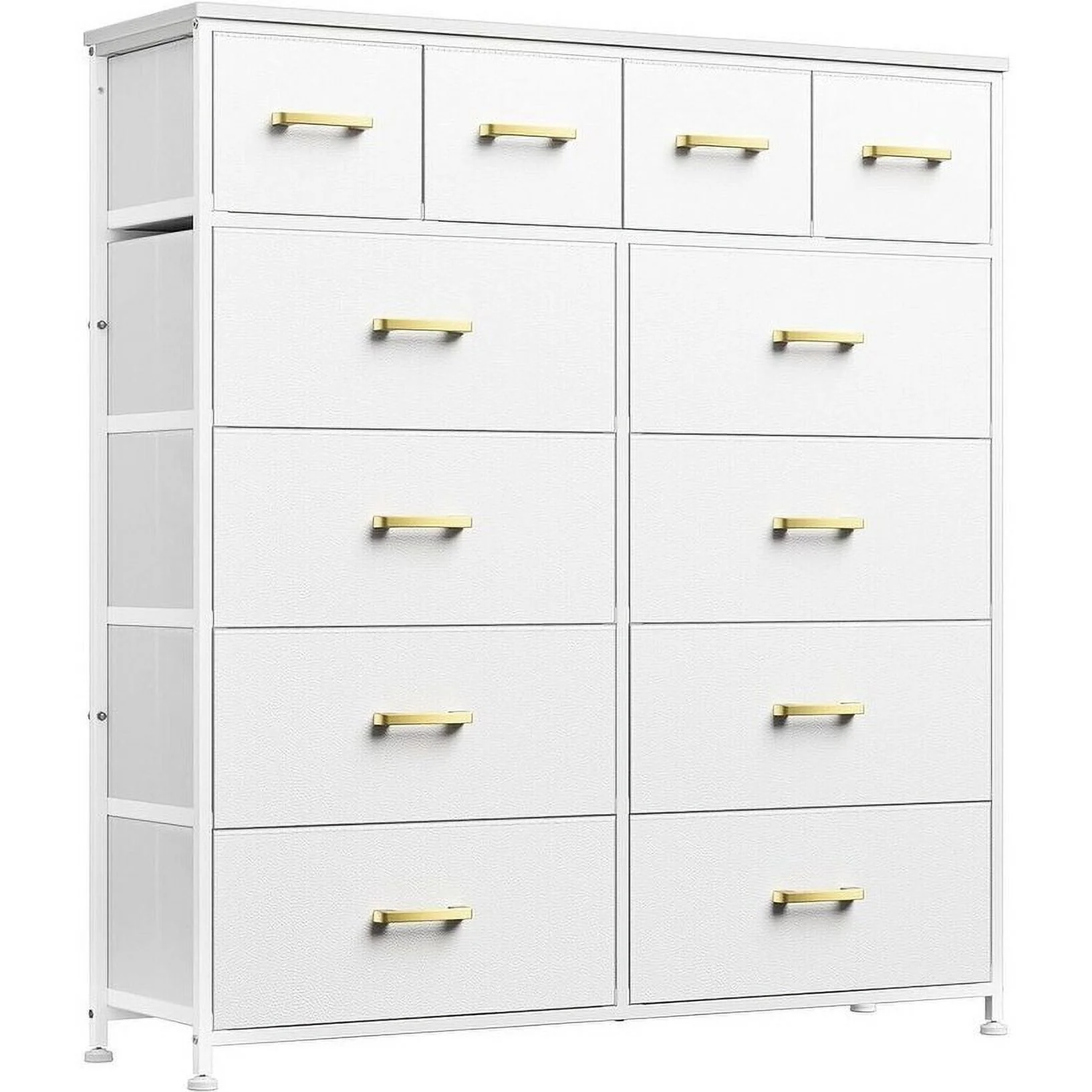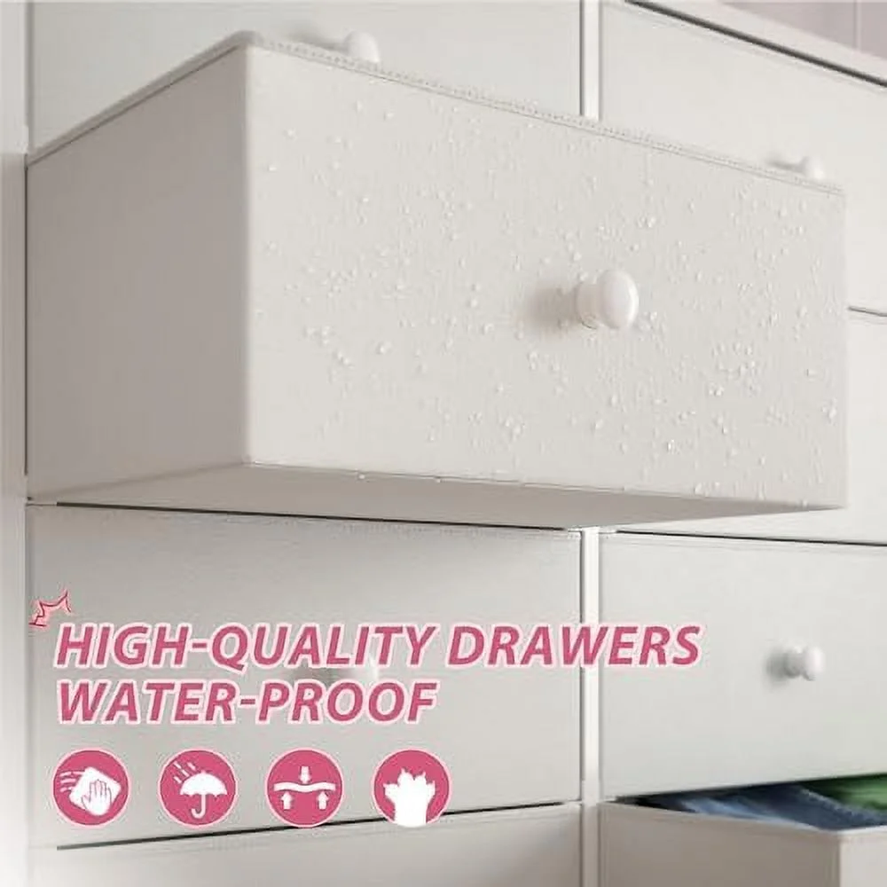 White 12-Drawer Dresser with Wooden Top and Metal Frame Tall Chest of Drawers for Closet Nursery Girls Bedroom White