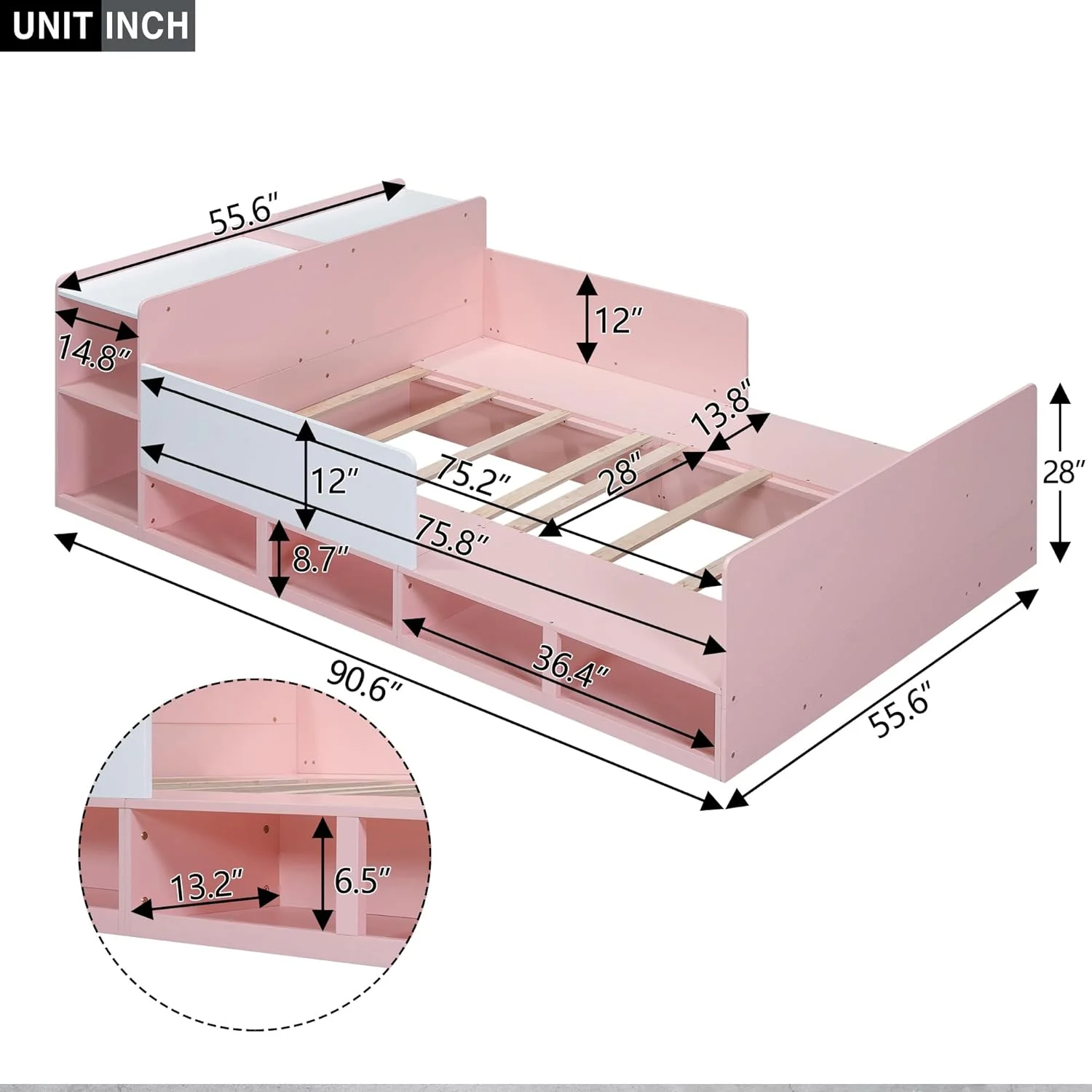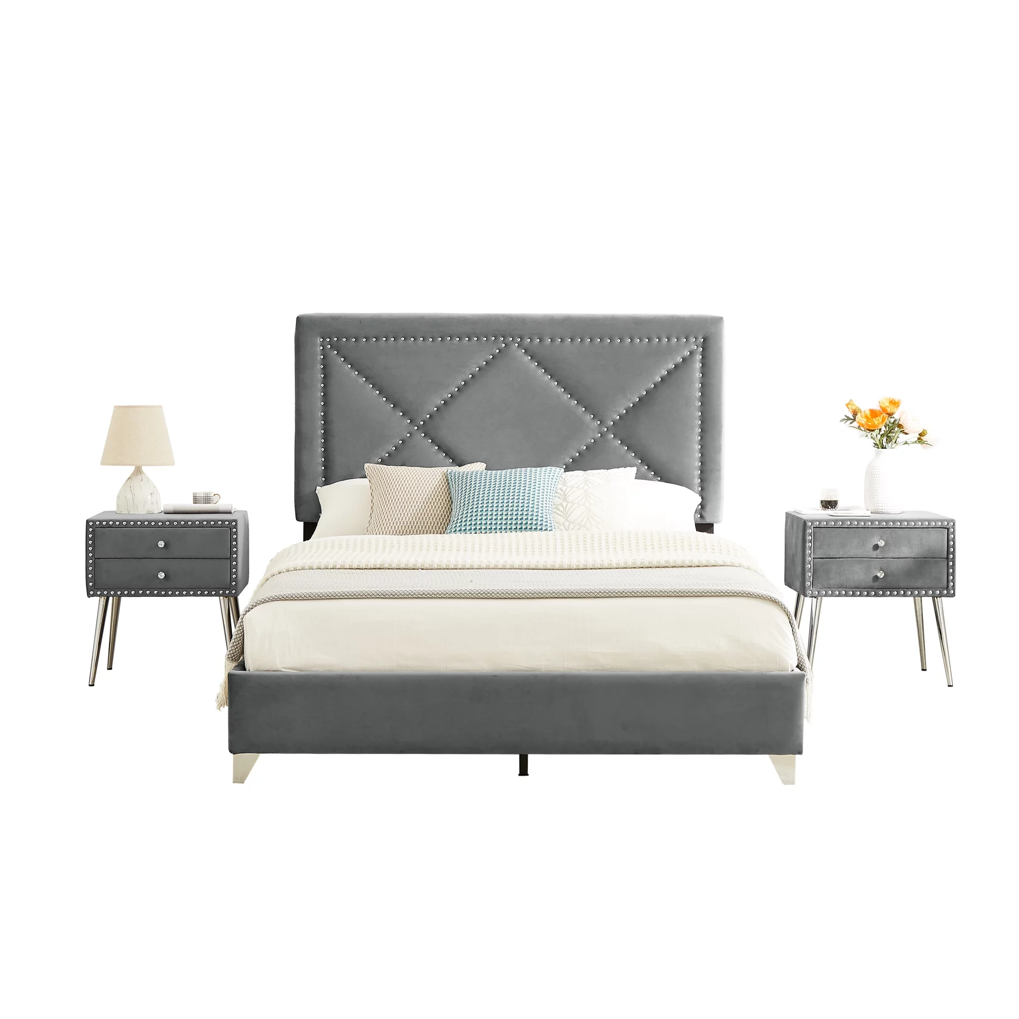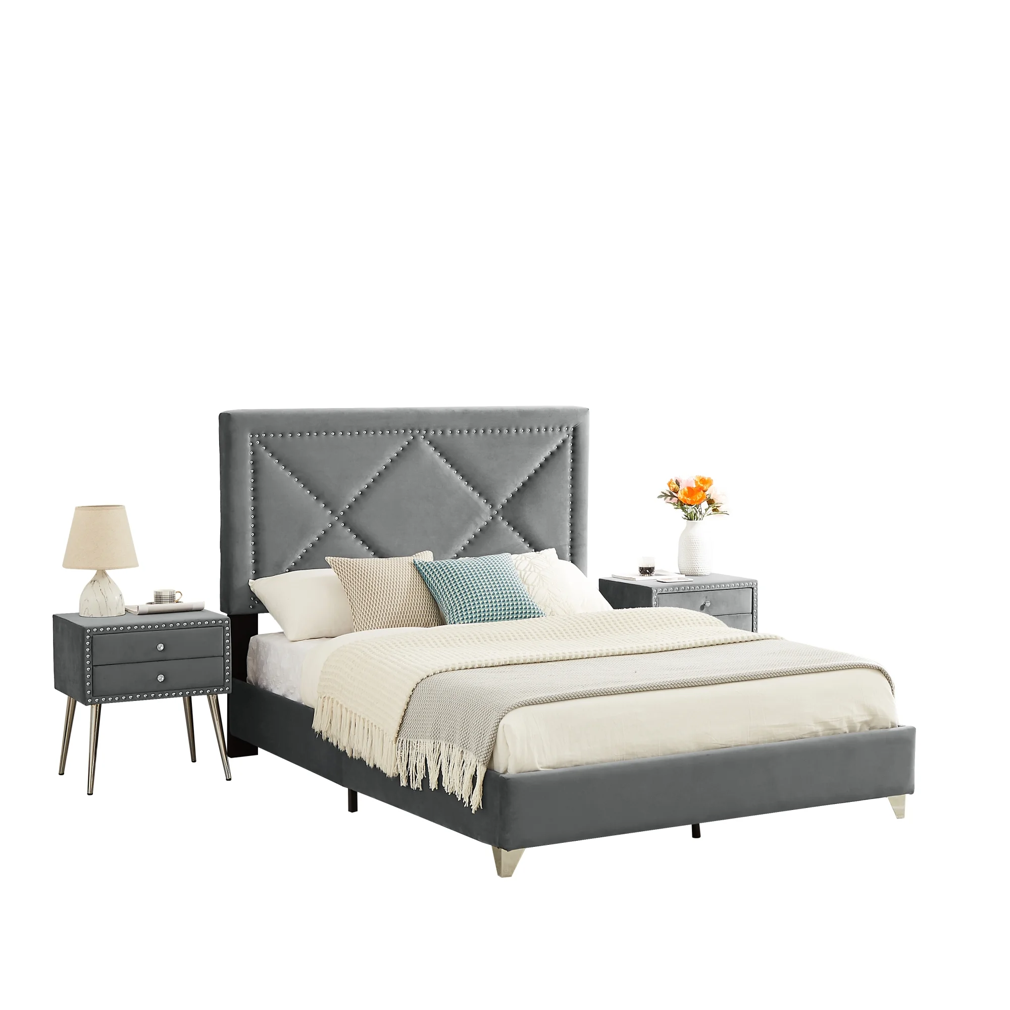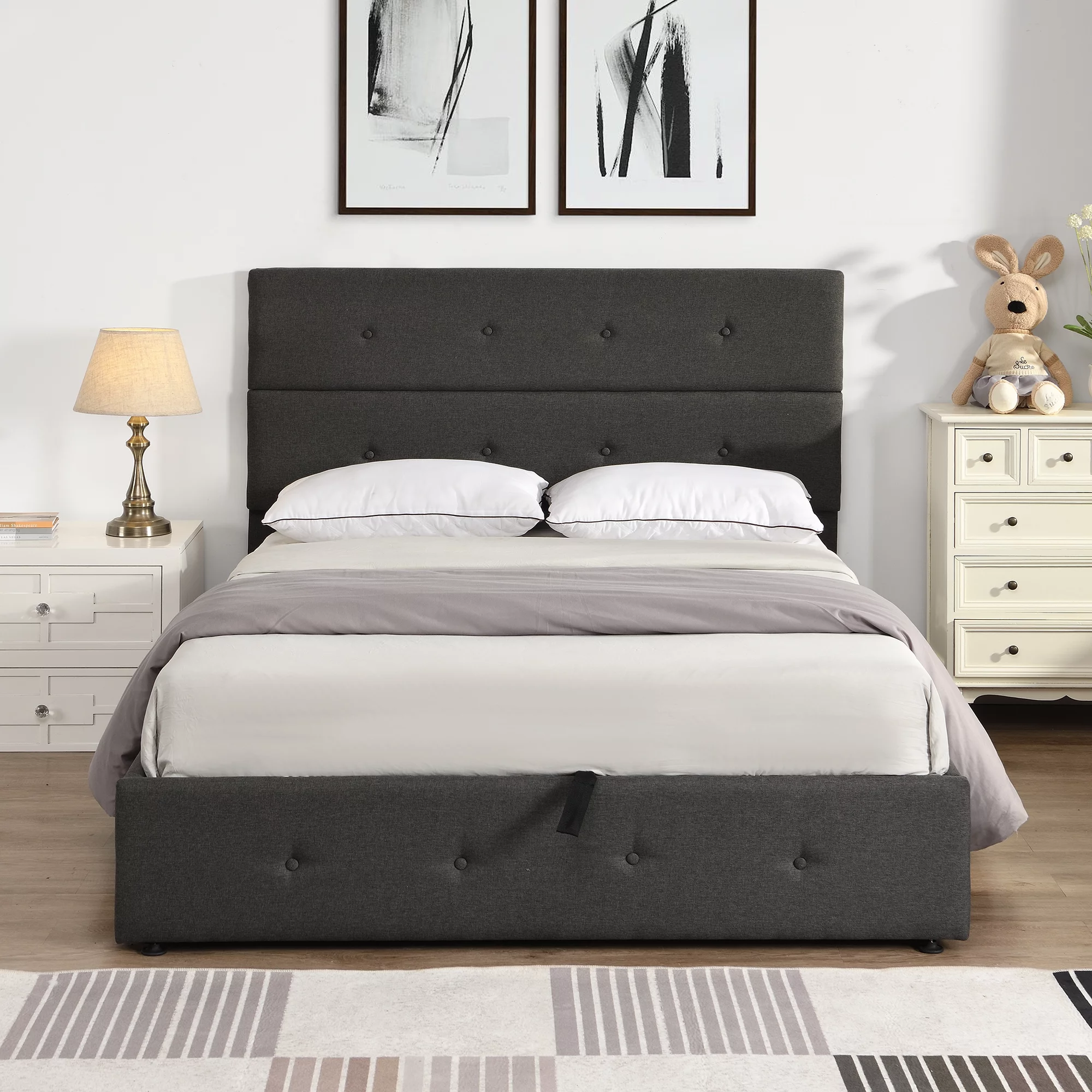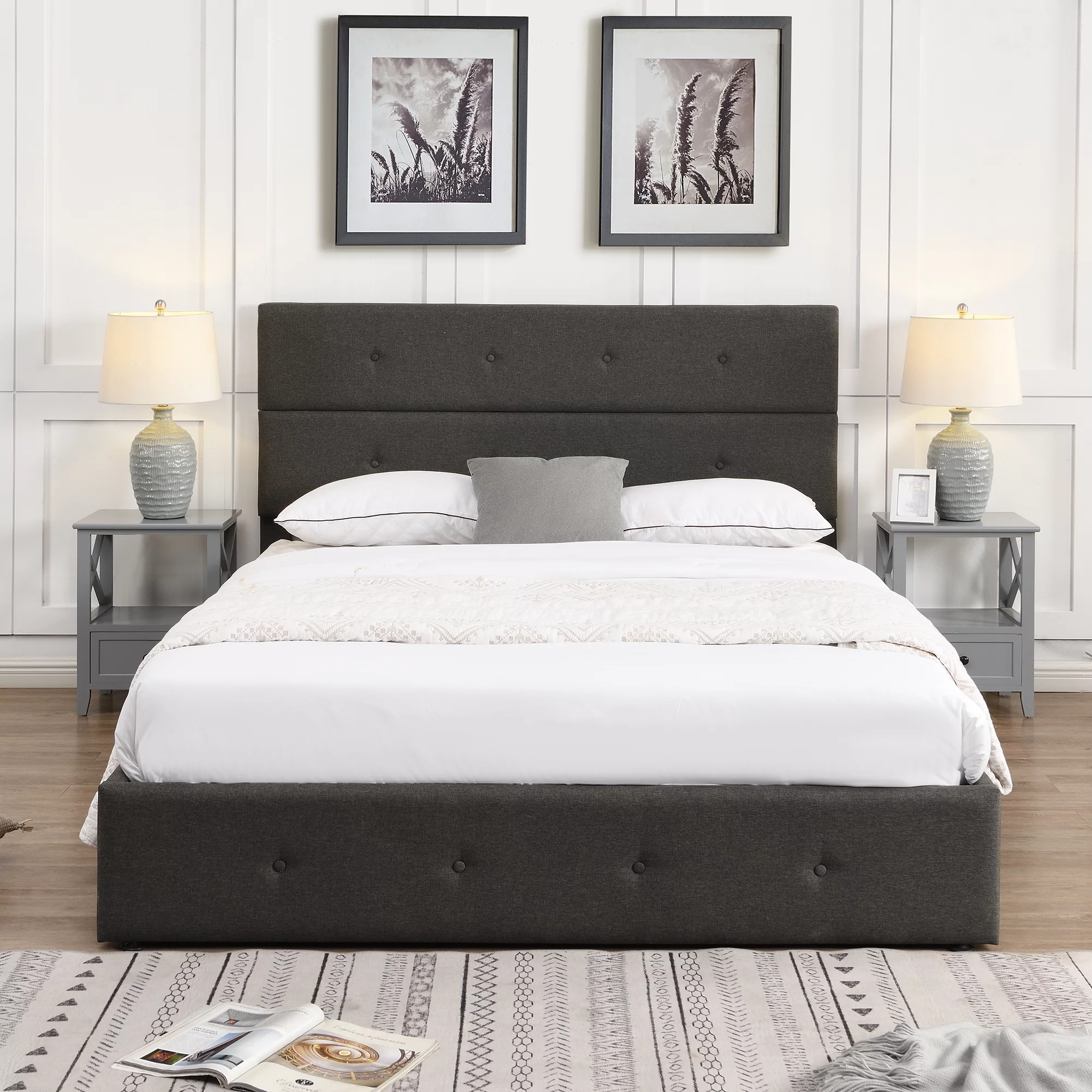 Nestfair Gray Full Size Upholstered Platform Bed with Underneath Storage