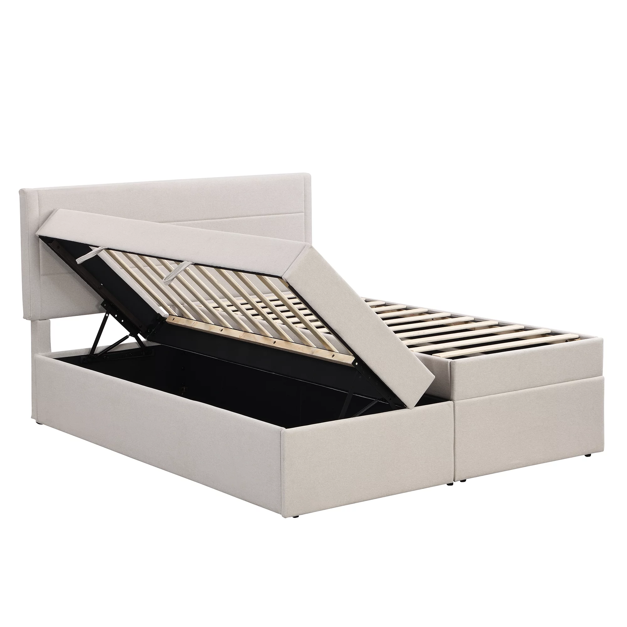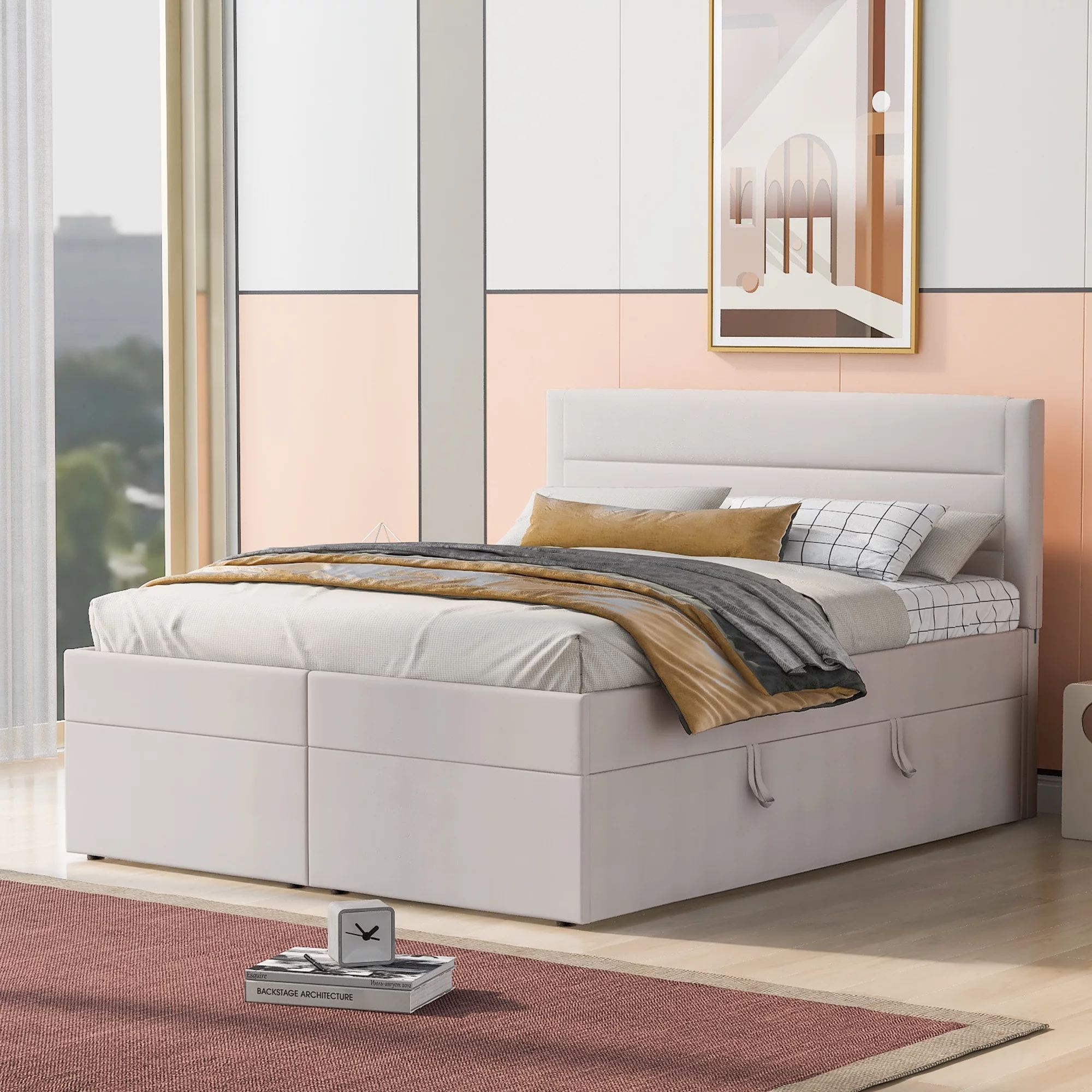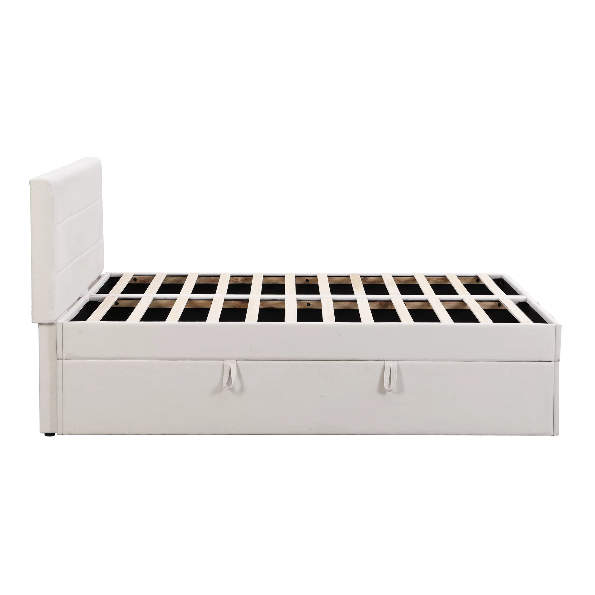 Dawn Whisper Upholstered Platform Bed with Underneath Storage, Queen Size, Beige