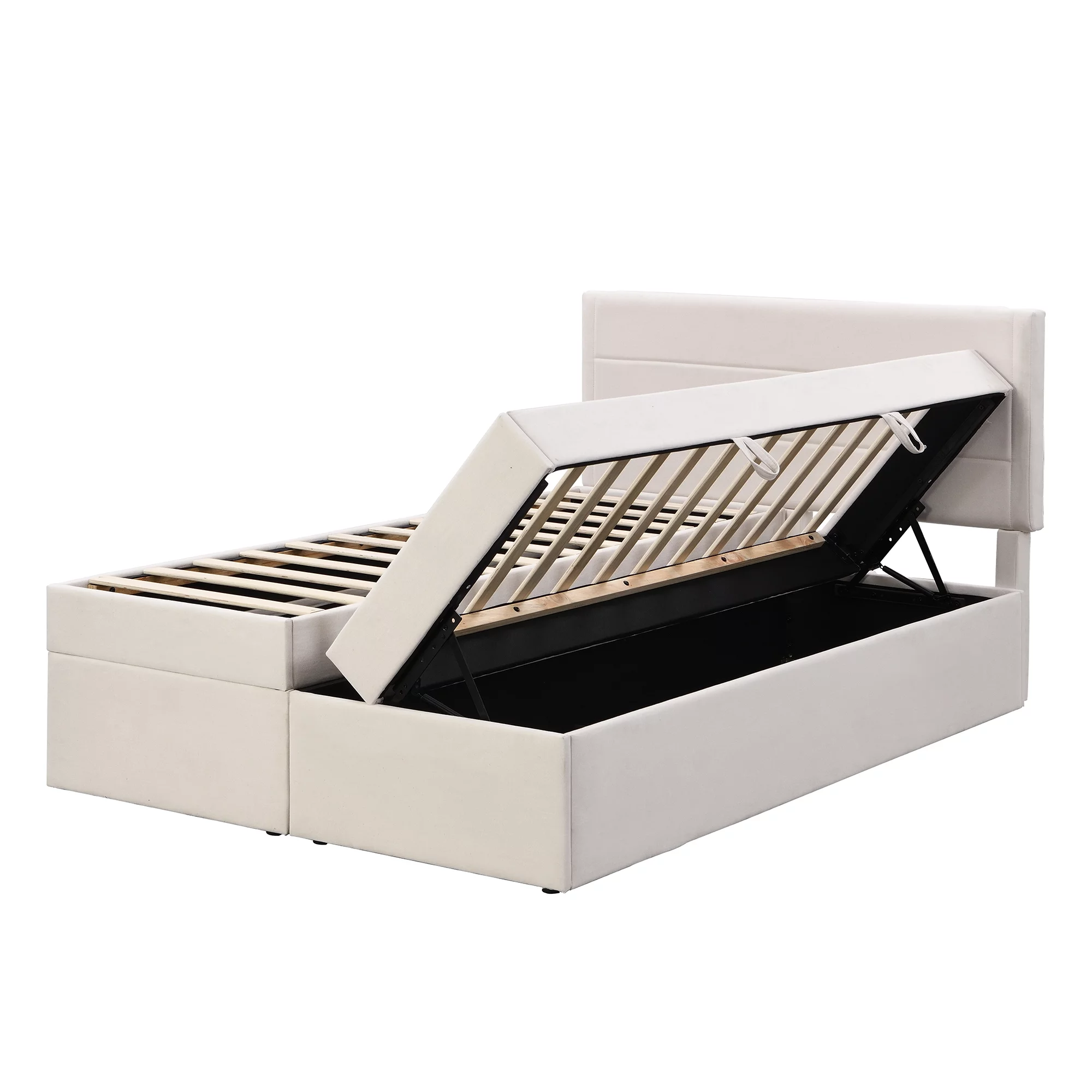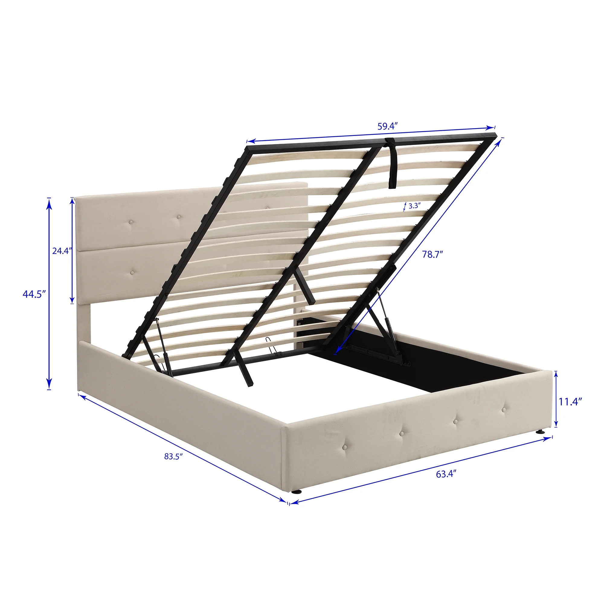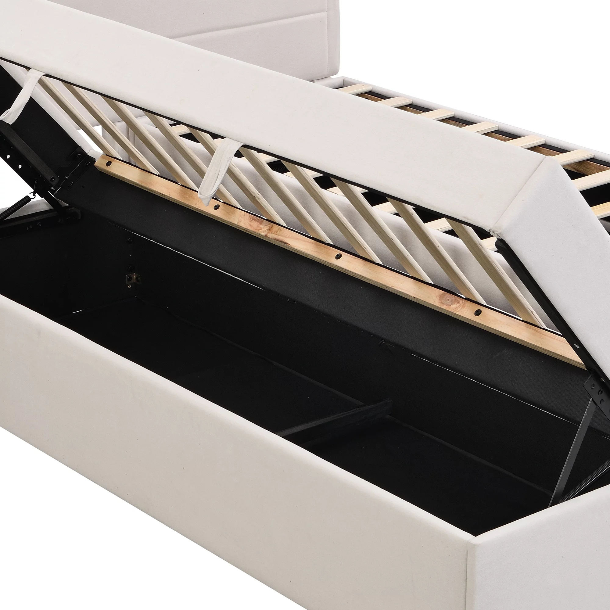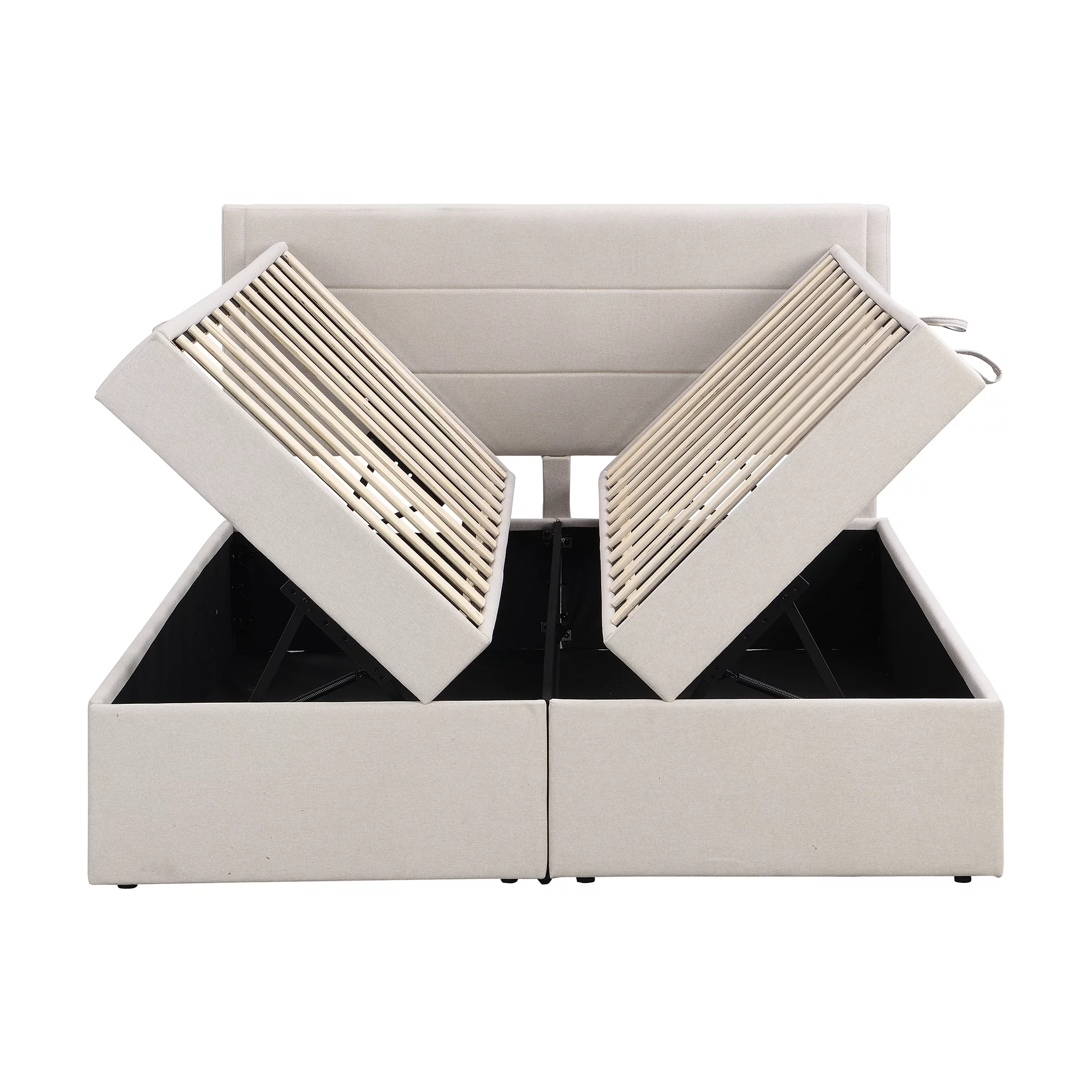 Dawn Whisper Upholstered Platform Bed with Underneath Storage, Queen Size, Beige