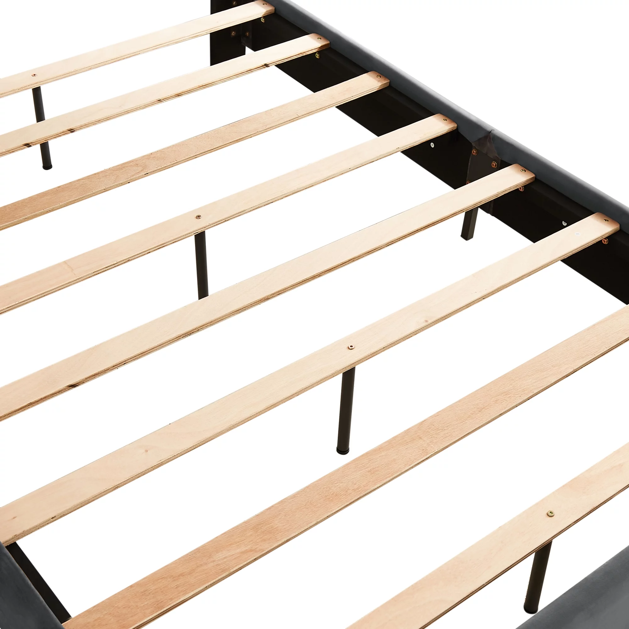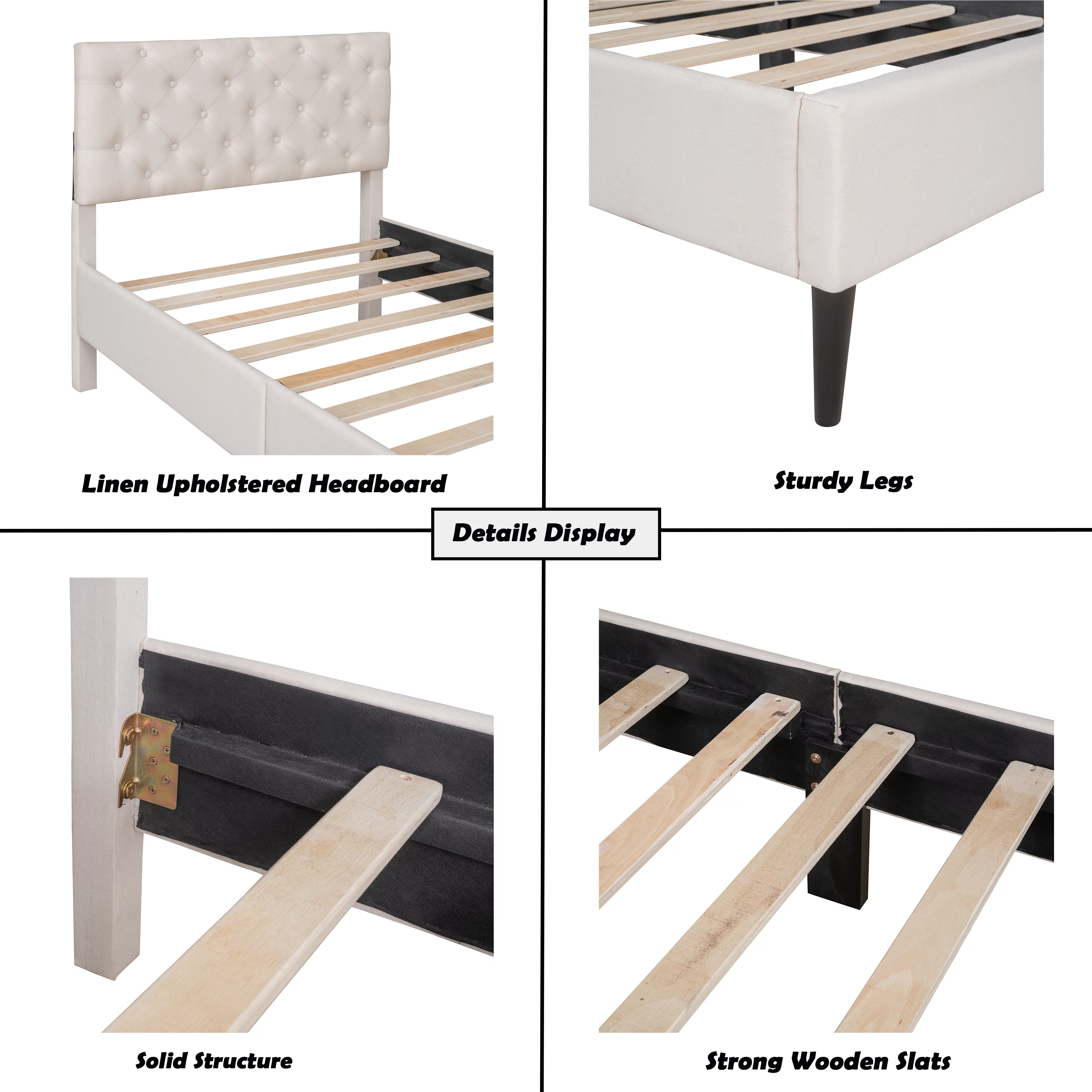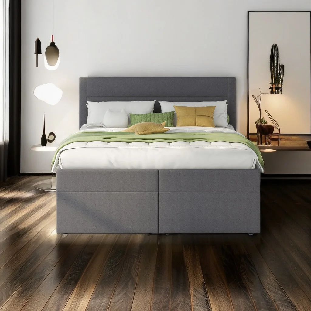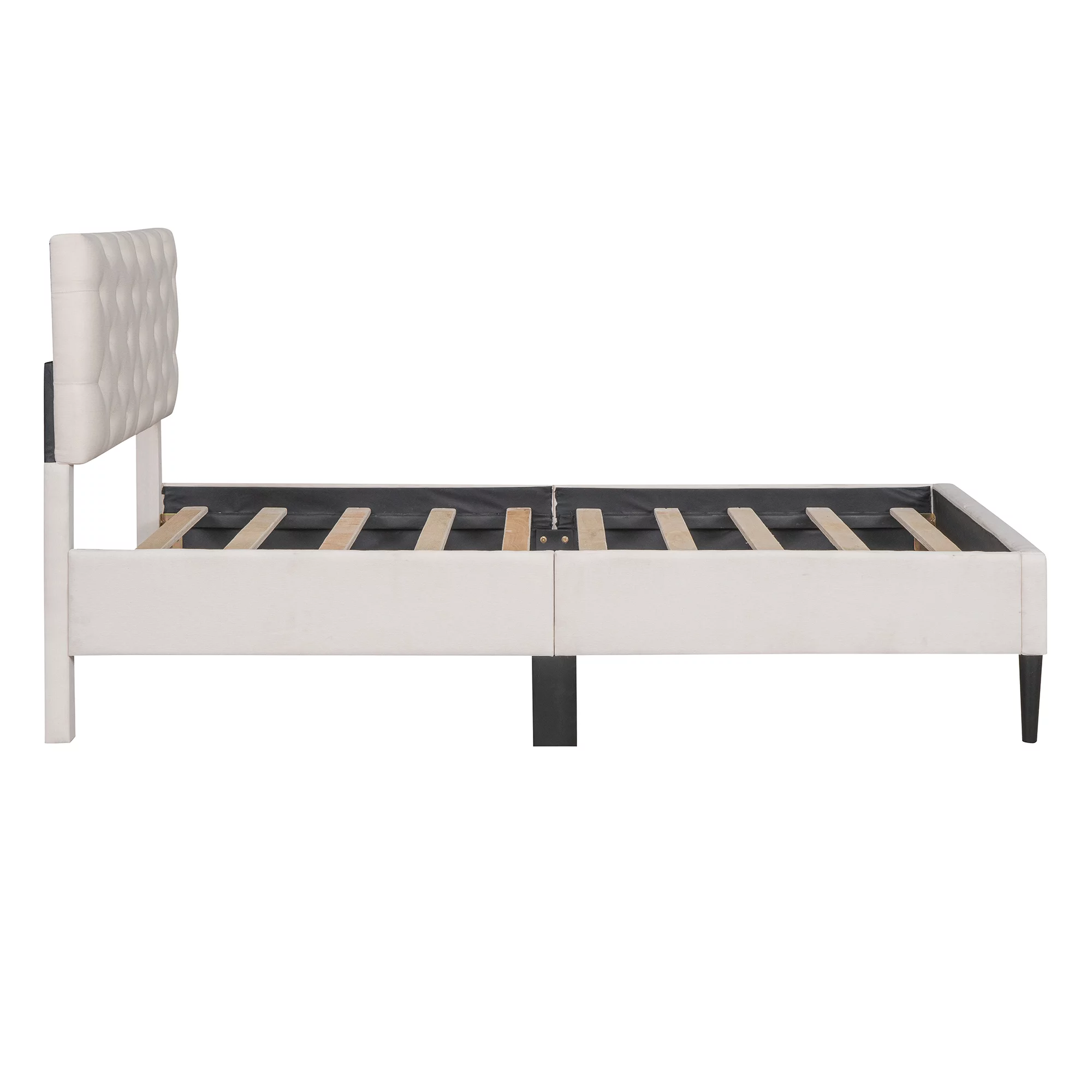 Upholstered Platform Bed Queen Size,with Cotton and Linen Fabric Headboard and Storage Underneath