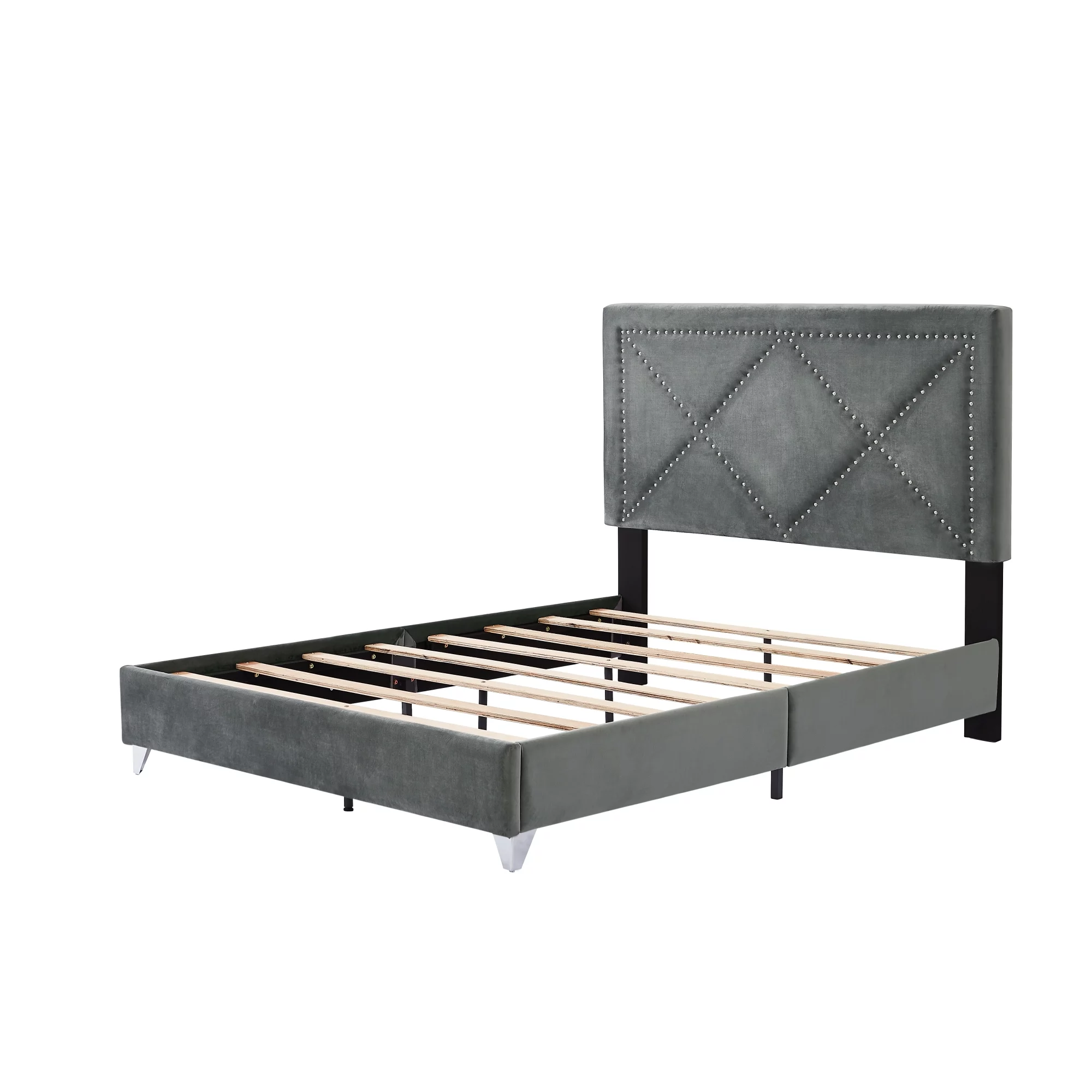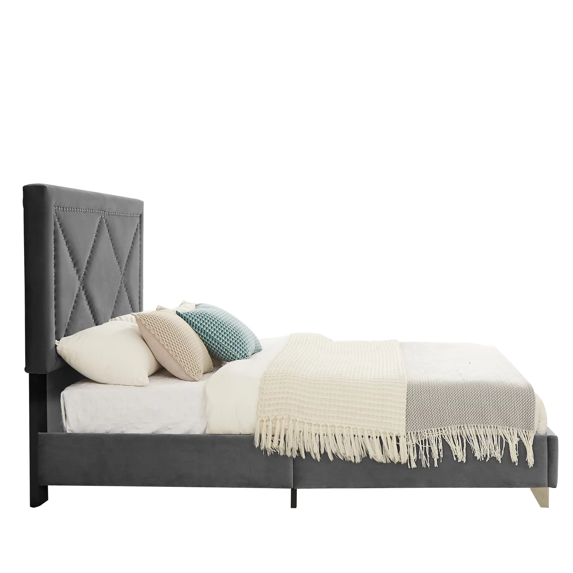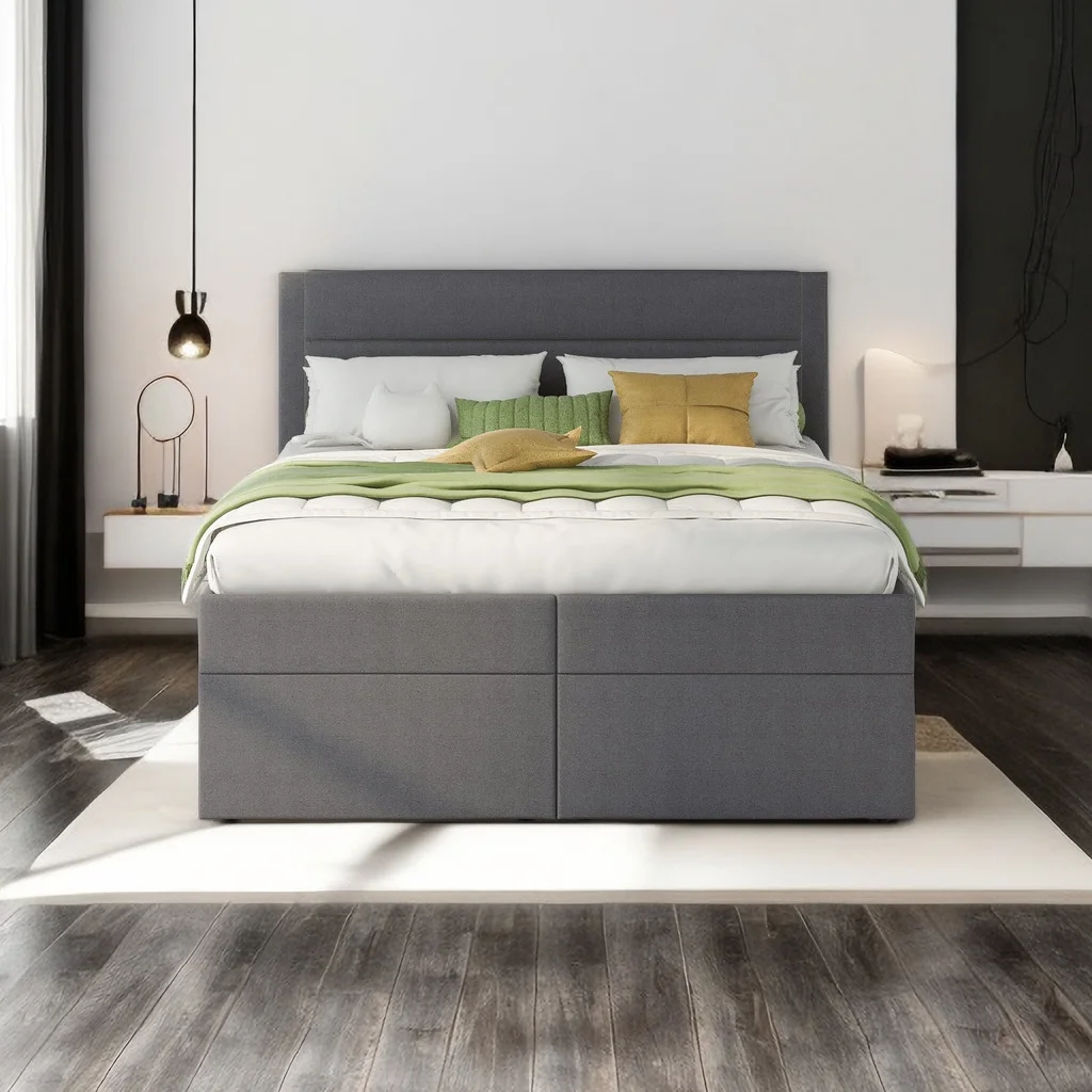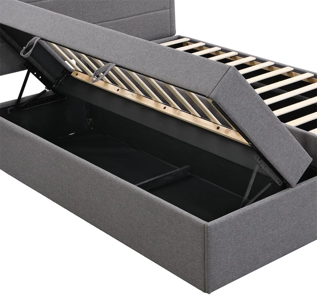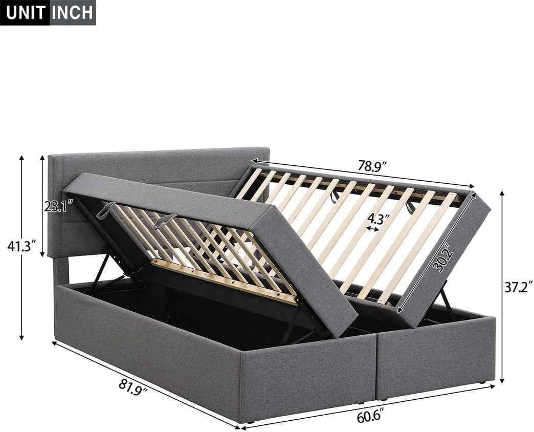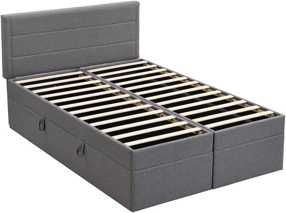 Dawn Whisper Upholstered Platform Bed with Underneath Storage, Full Size, Gray