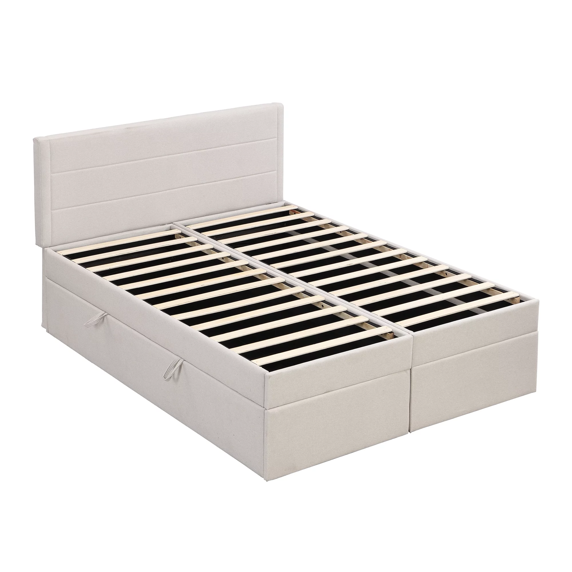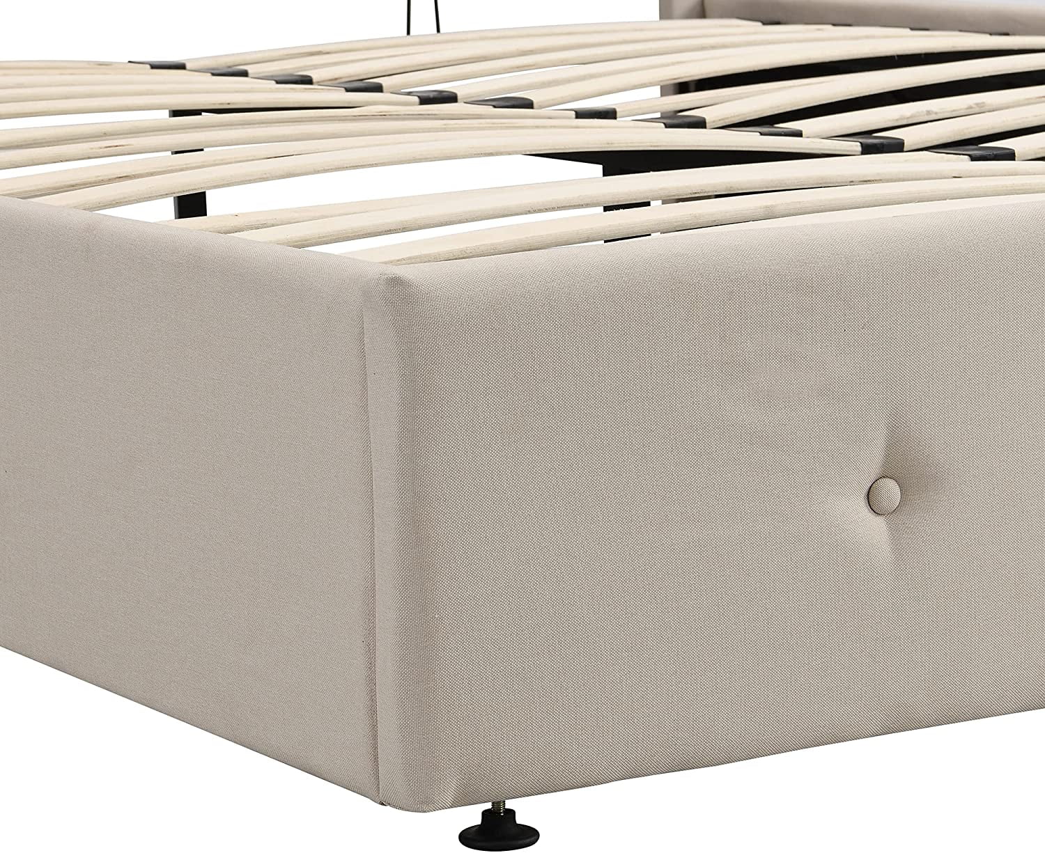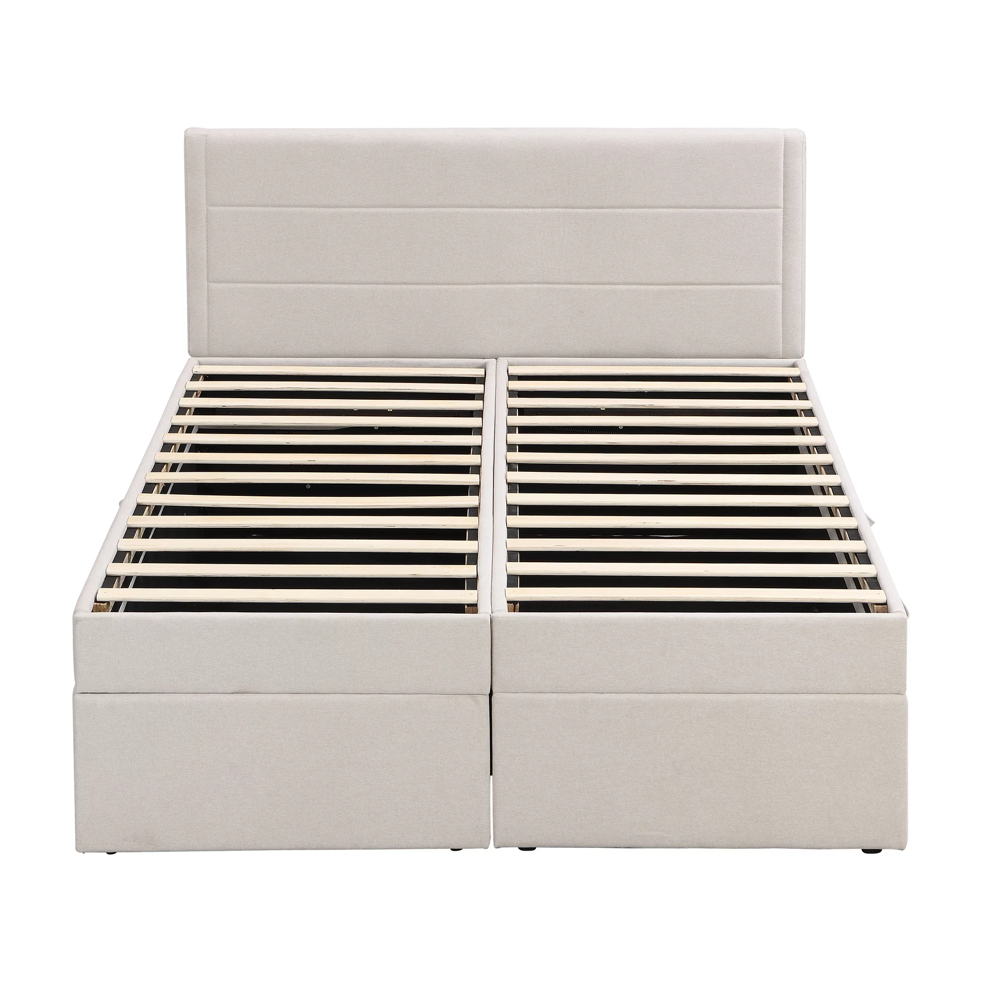 Nestfair Beige Queen Size Upholstered Platform Bed with Storage Underneath