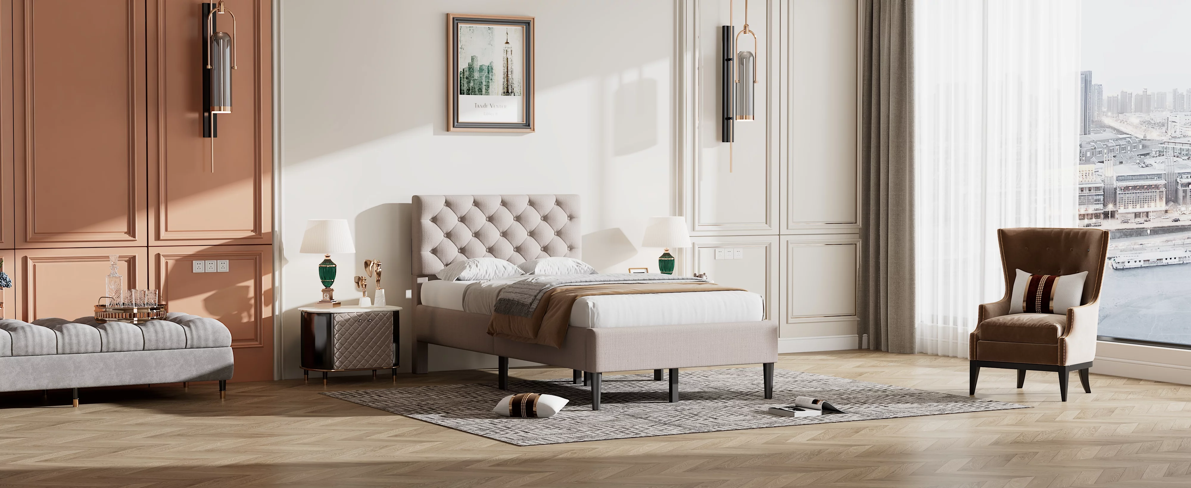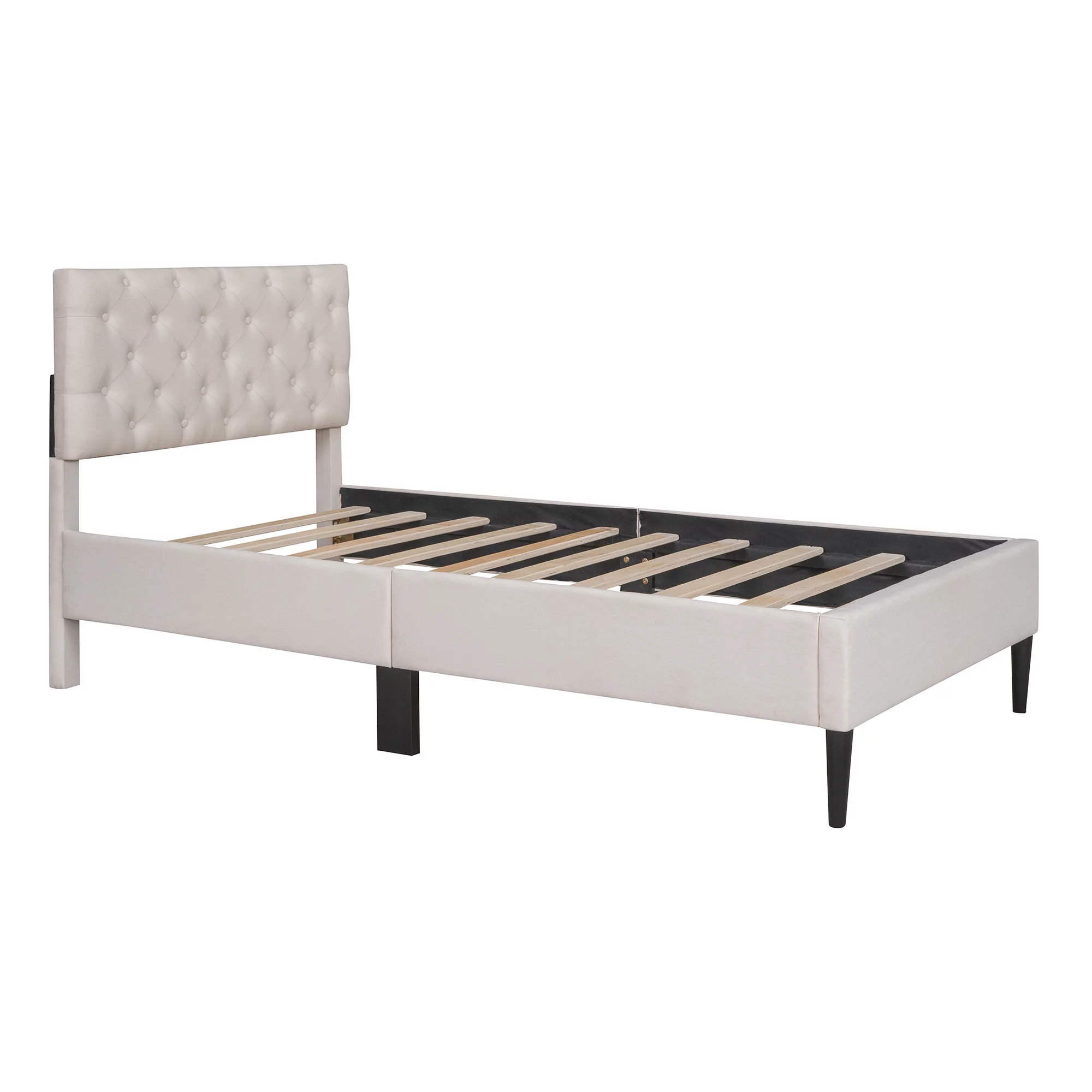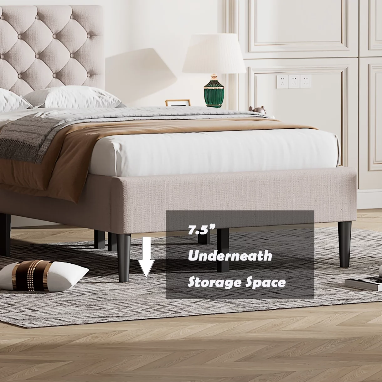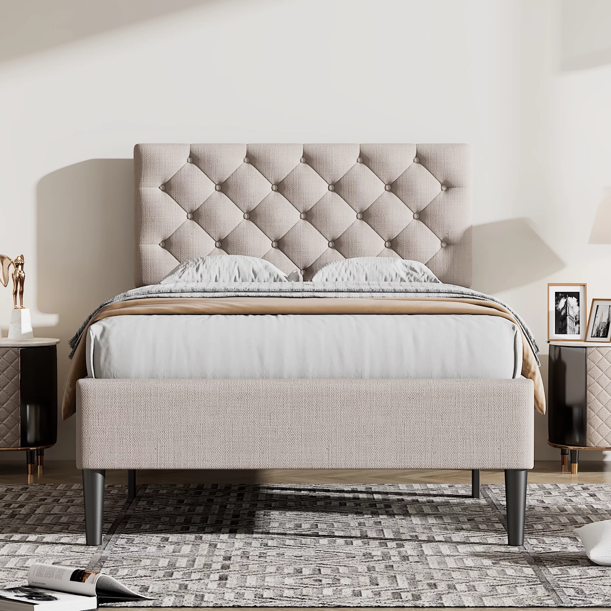 Nestfair Beige Queen Size Upholstered Platform Bed with Storage Underneath