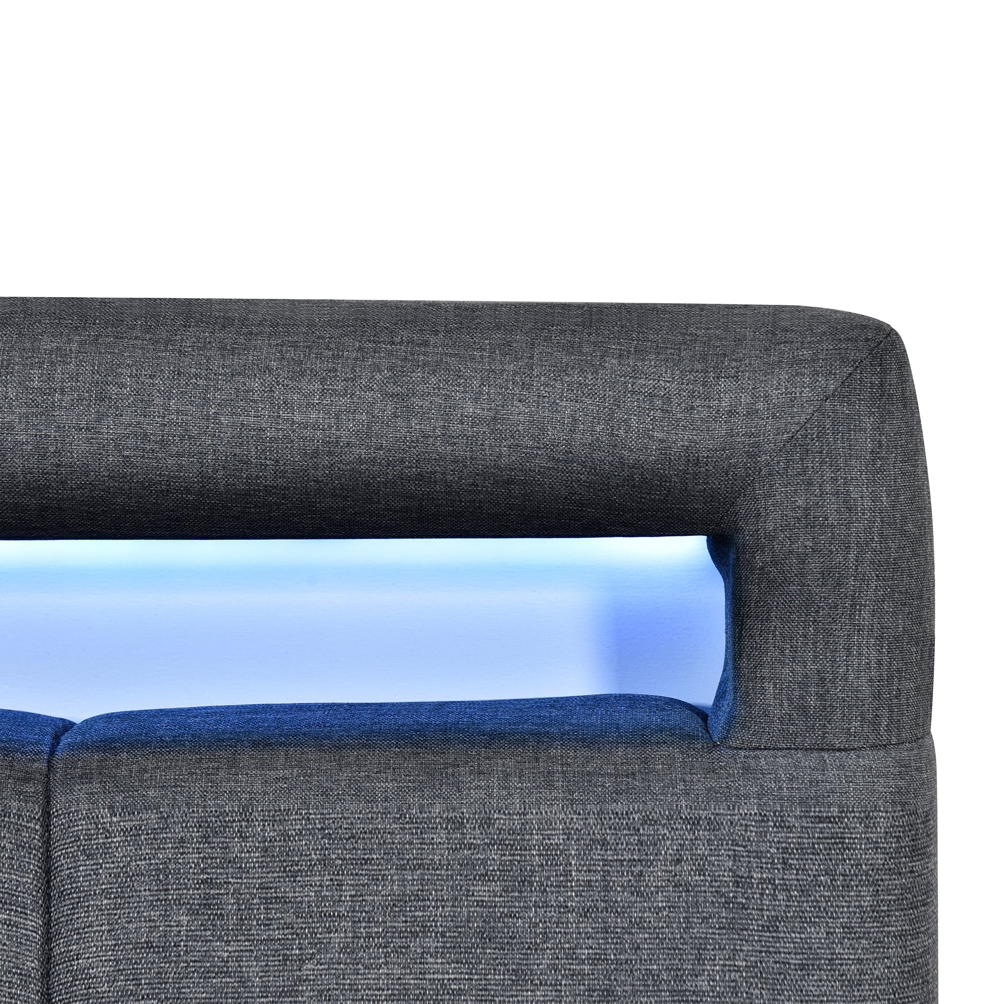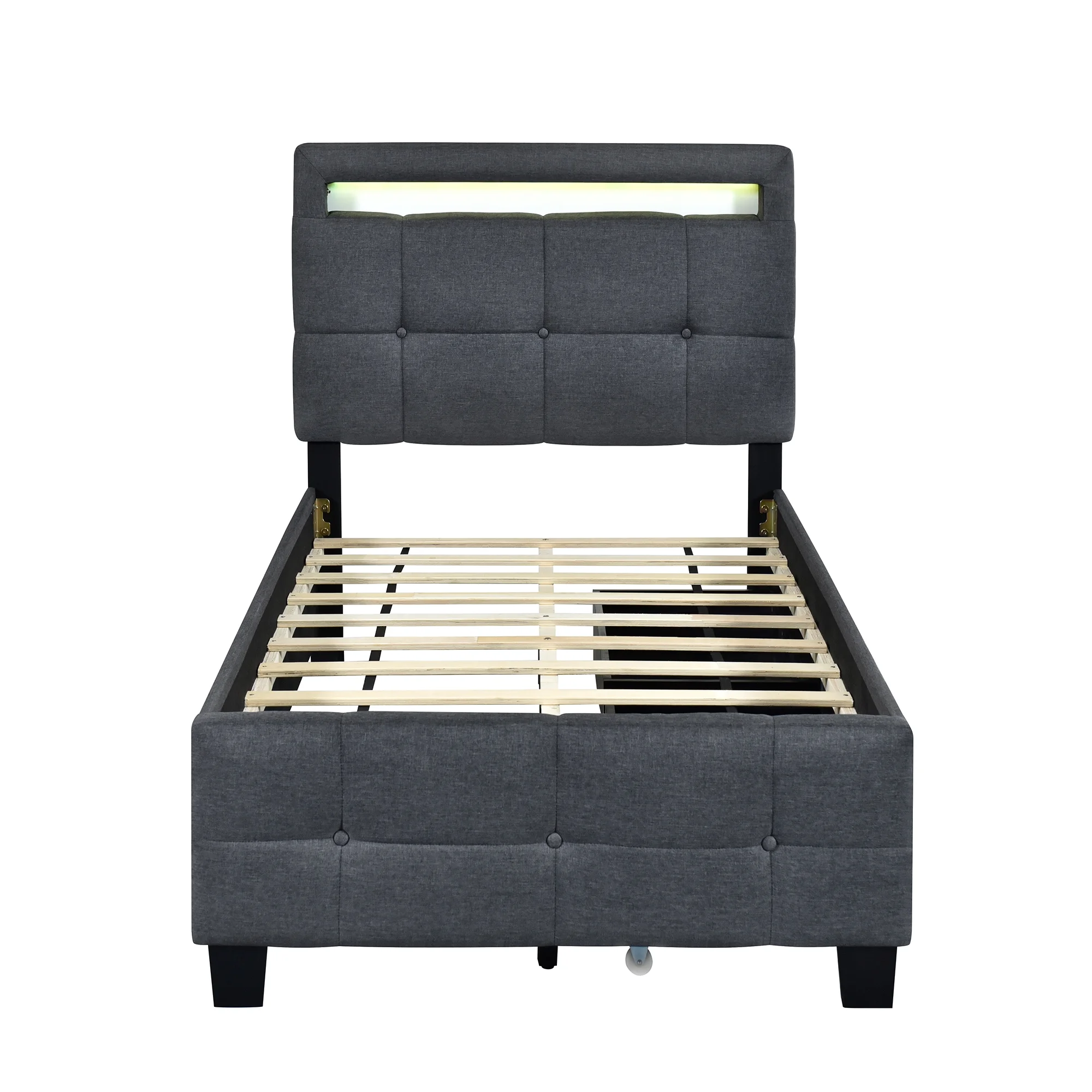 Churanty Twin Size Upholstered Platform Bed with LED Lights and 2 Drawers, Linen Fabric Bed with Tufted Headboard,Gray