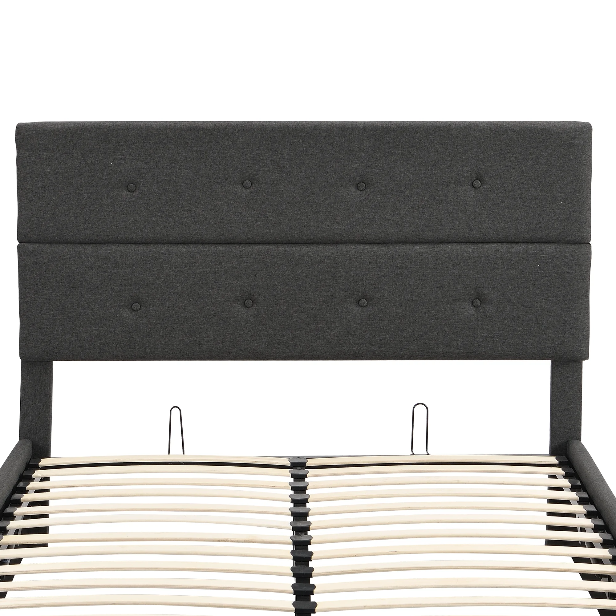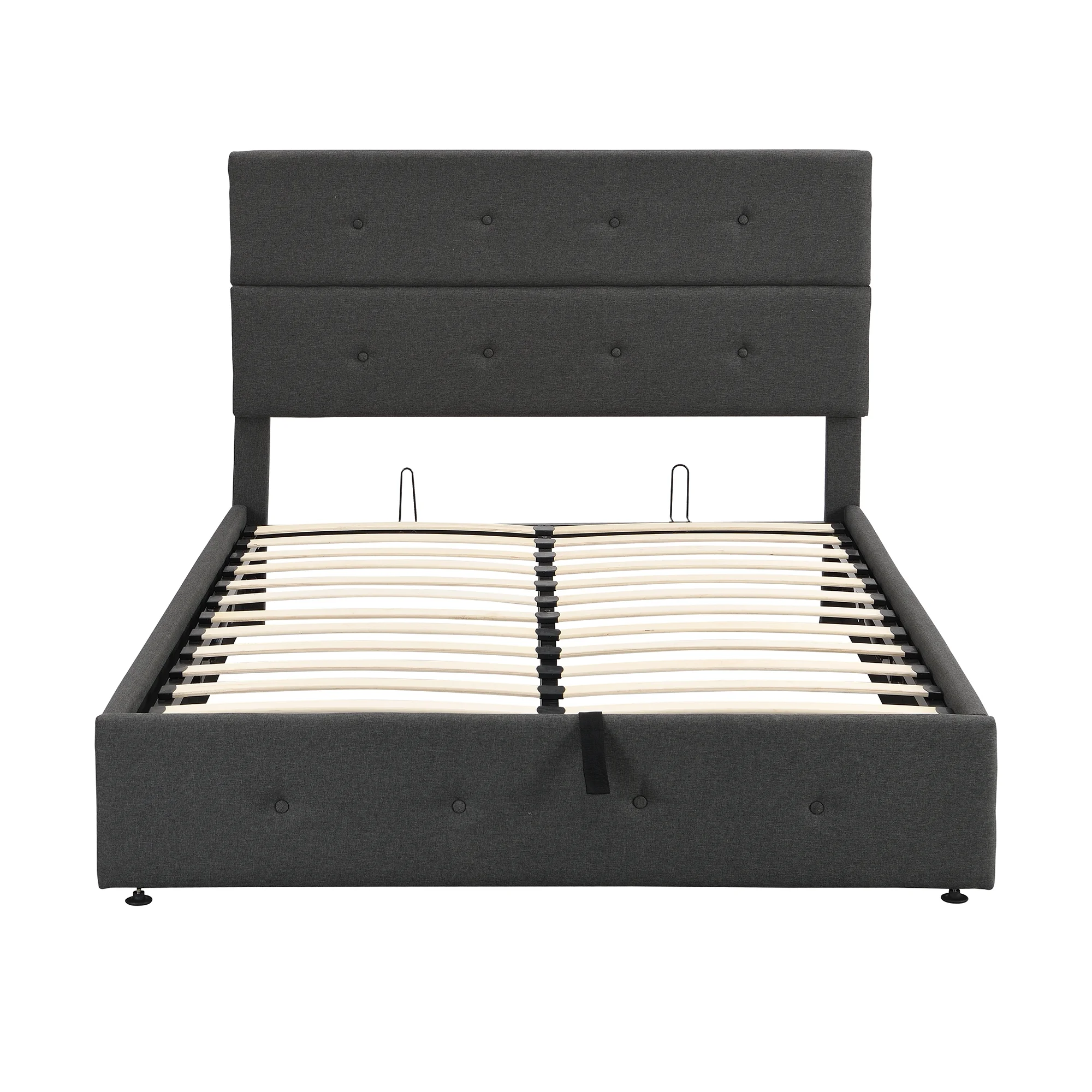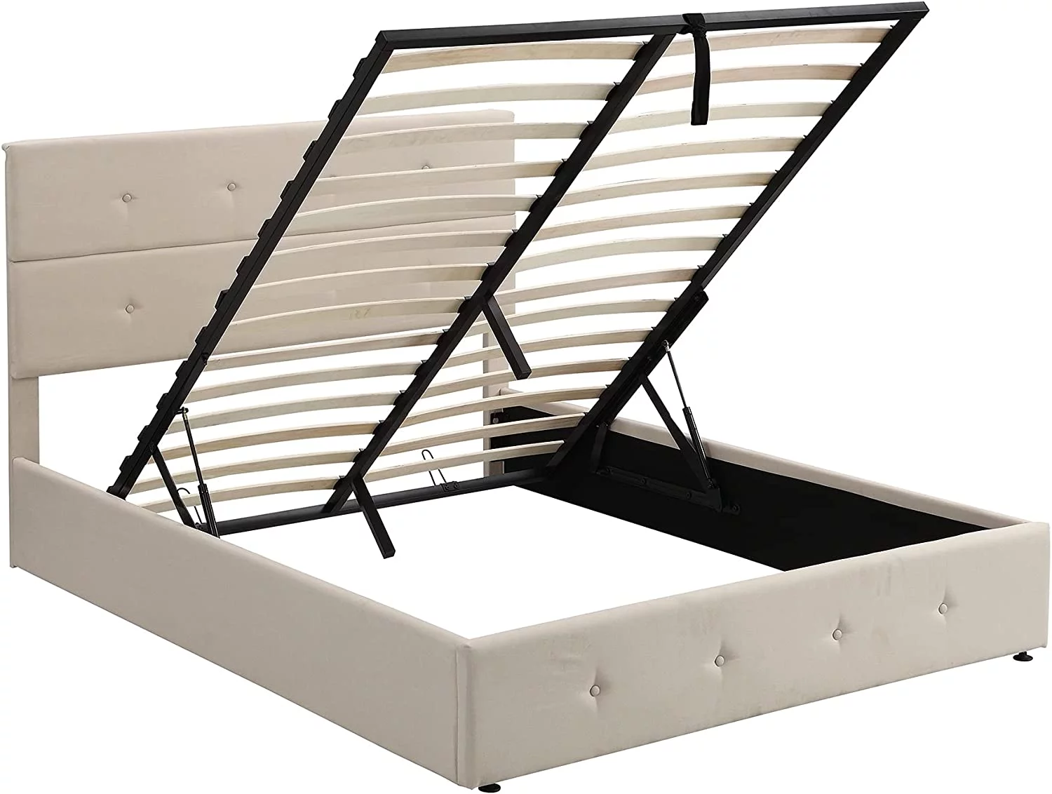 Queen Size Upholstered Platform Bed with Gas Lift Up Underneath Storage, Metal Queen Bed Frame with Headboard