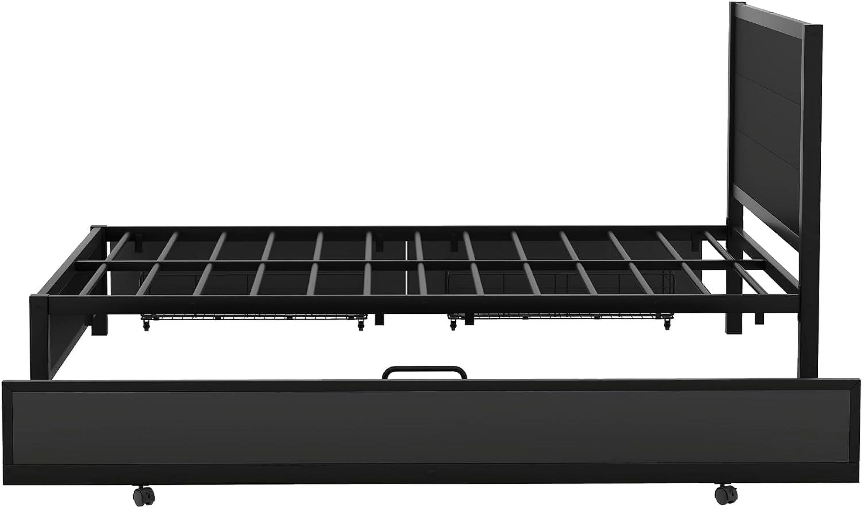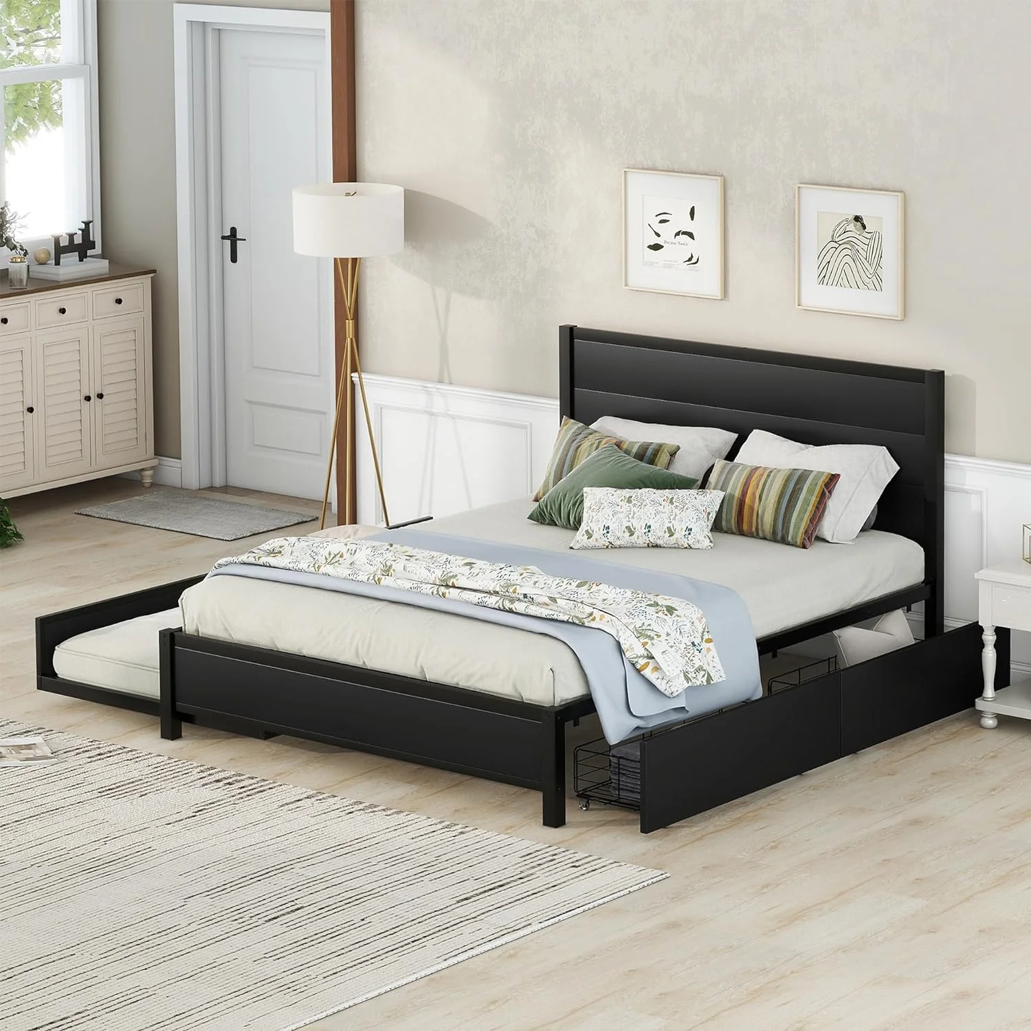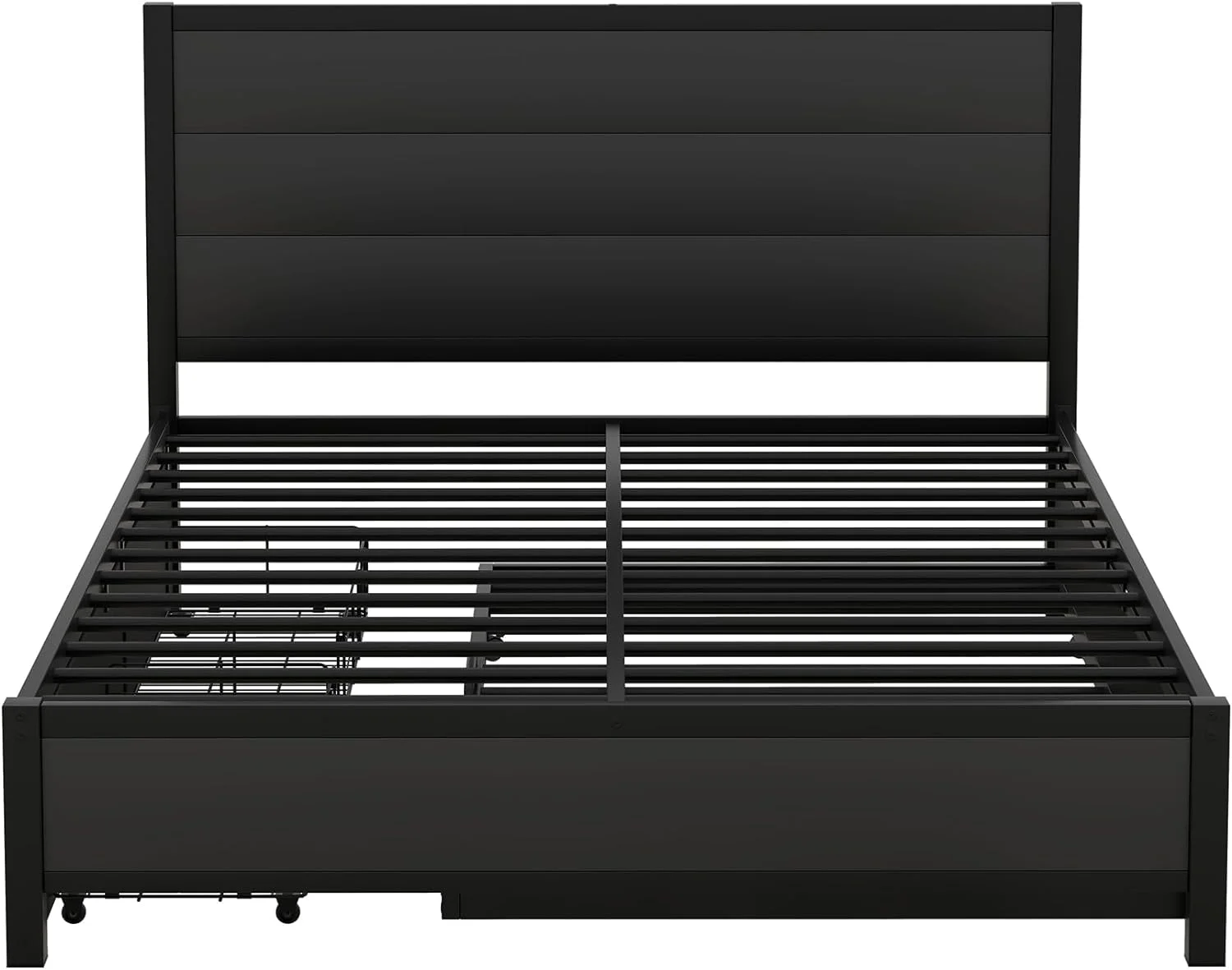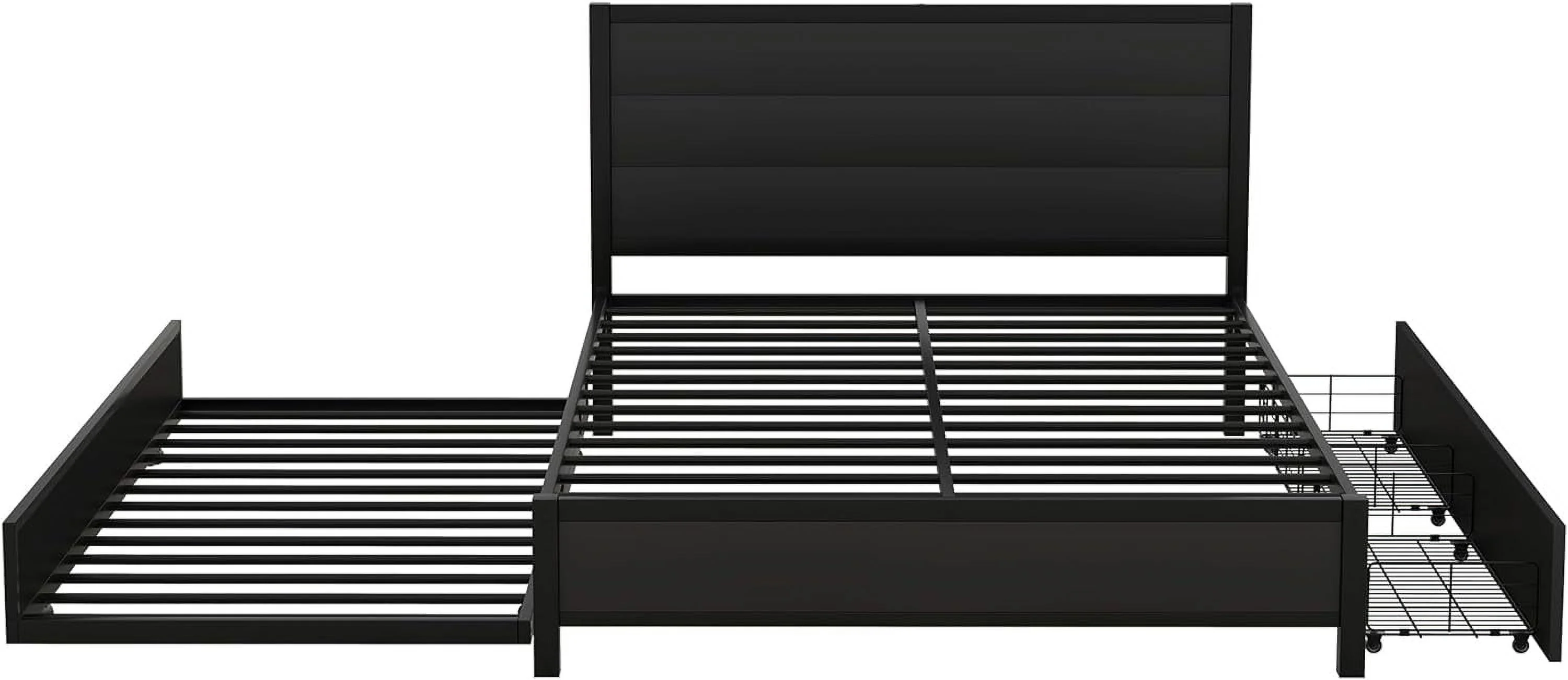 Queen Metal Platform Bed Frame,Queen Size Storage Platform Bed With Size Trundle And 2 Underneath The Bed Drawers,Black