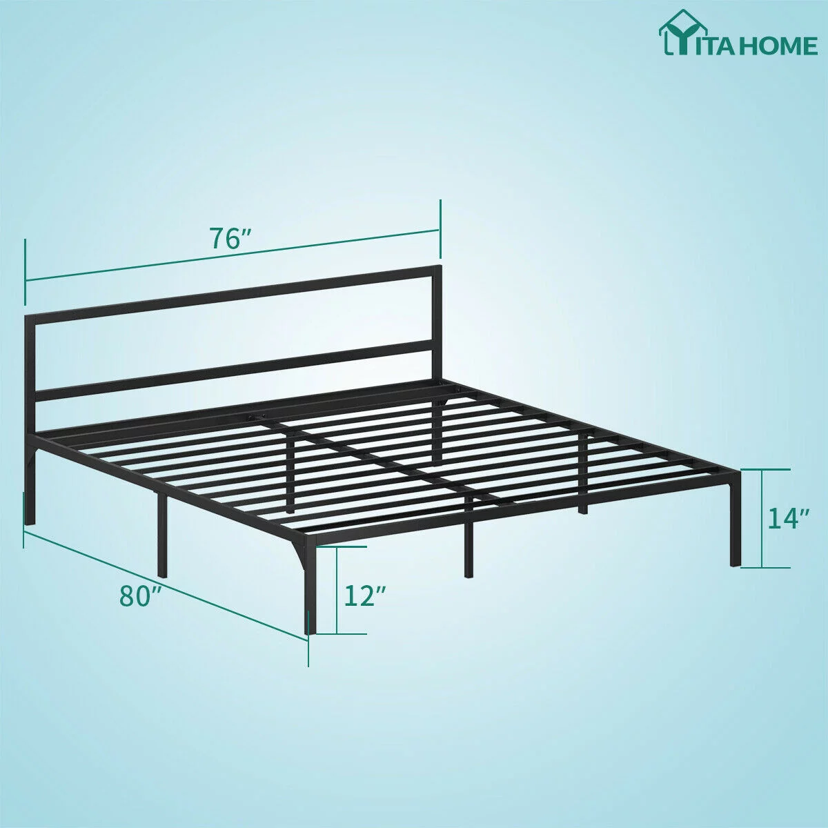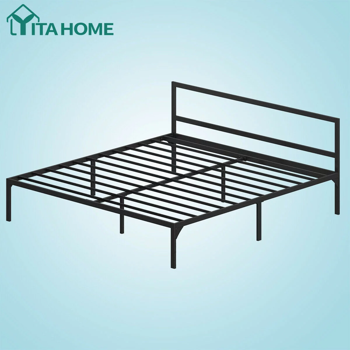 YITAHOME King Size Heavy Duty Metal Bed Frame Steel Platform Headboard Bedroom
