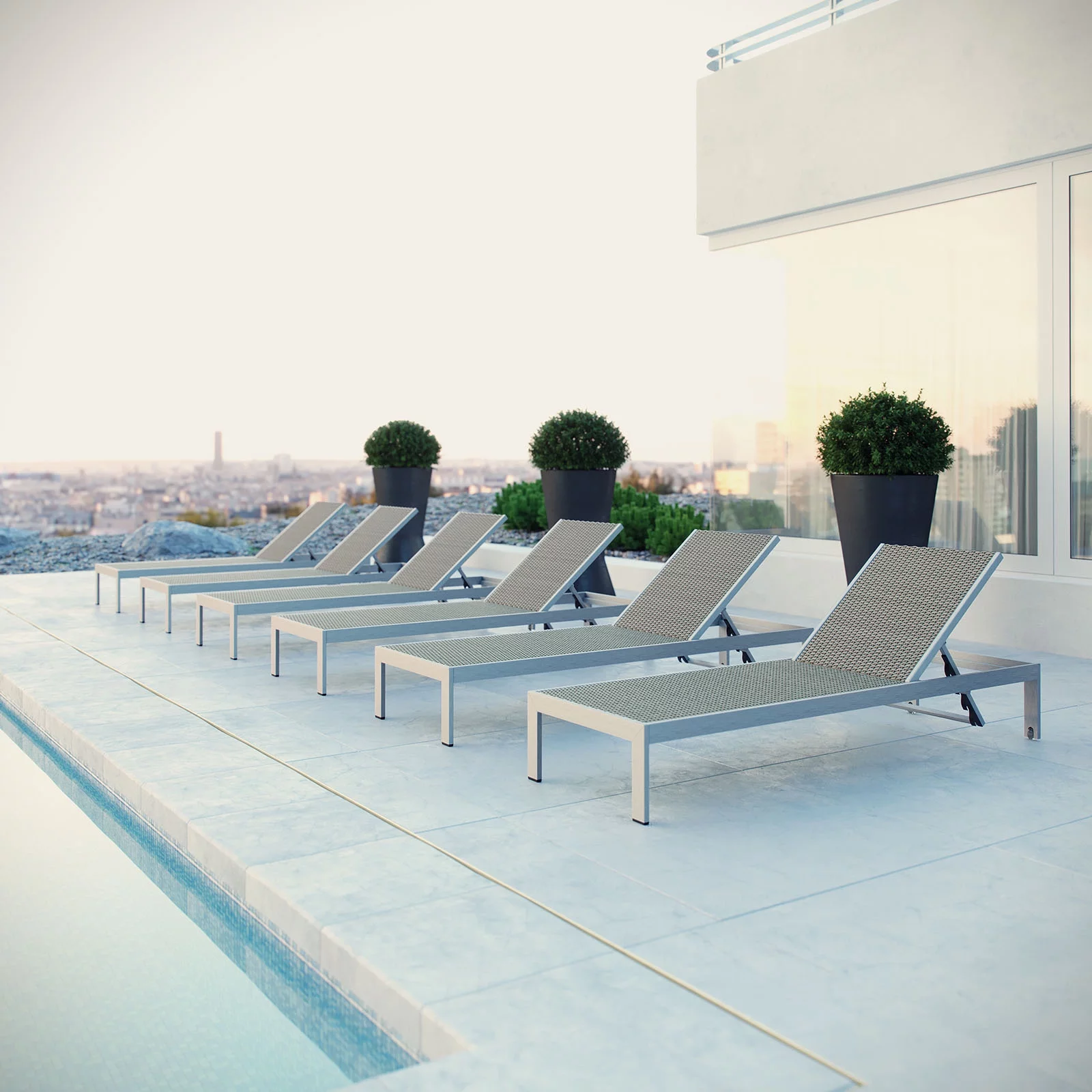 Modway Shore Chaise Outdoor Patio Aluminum Set of 6 in Silver Gray