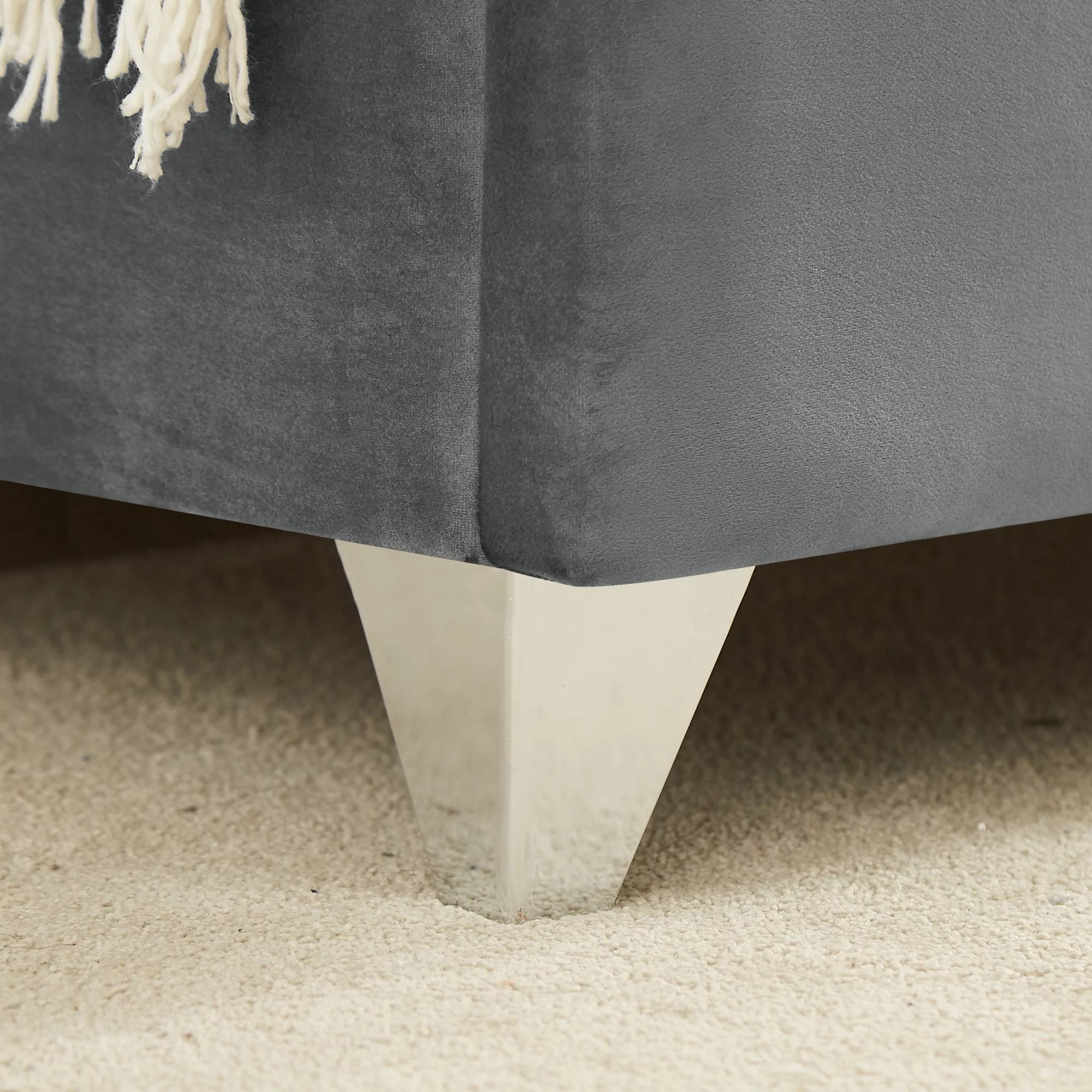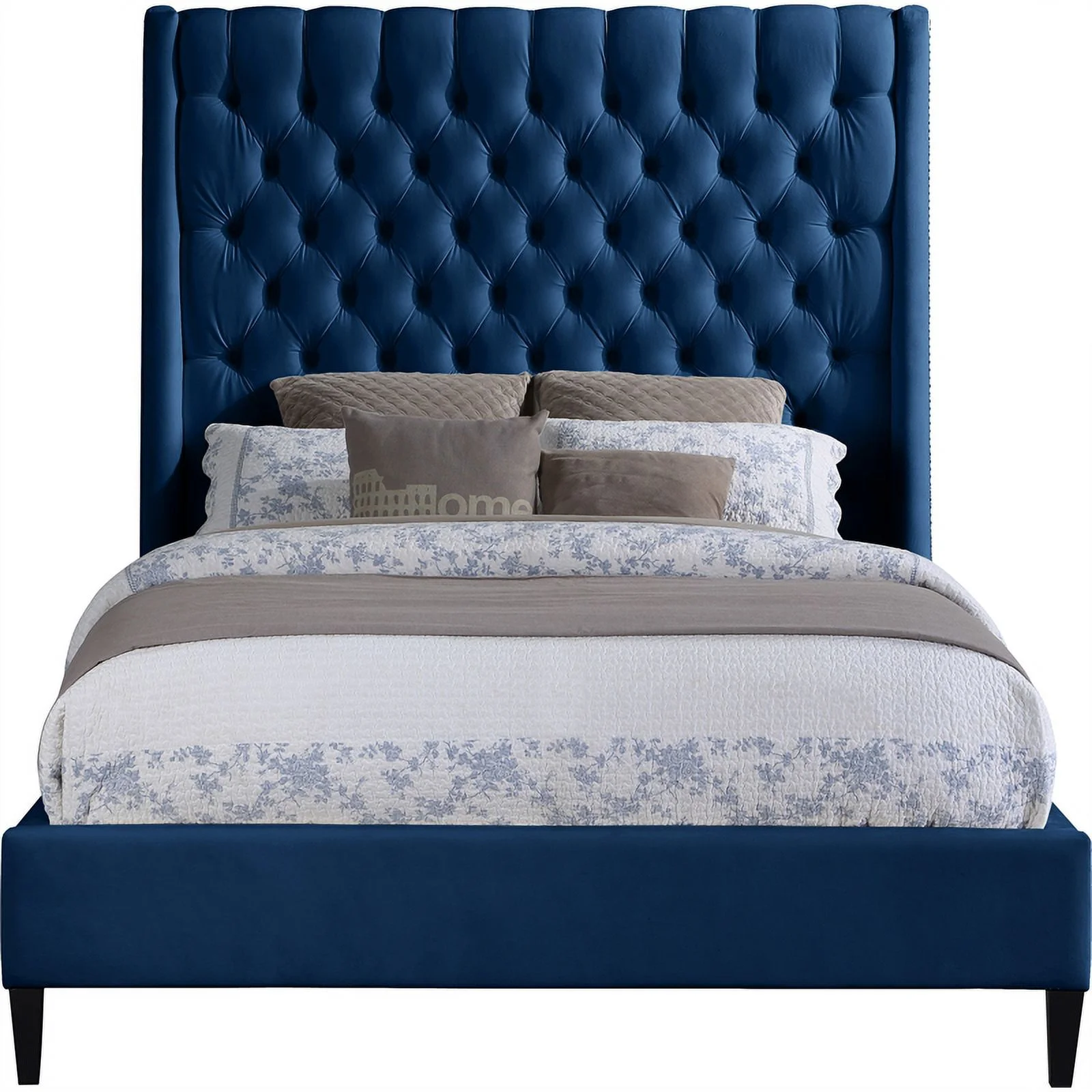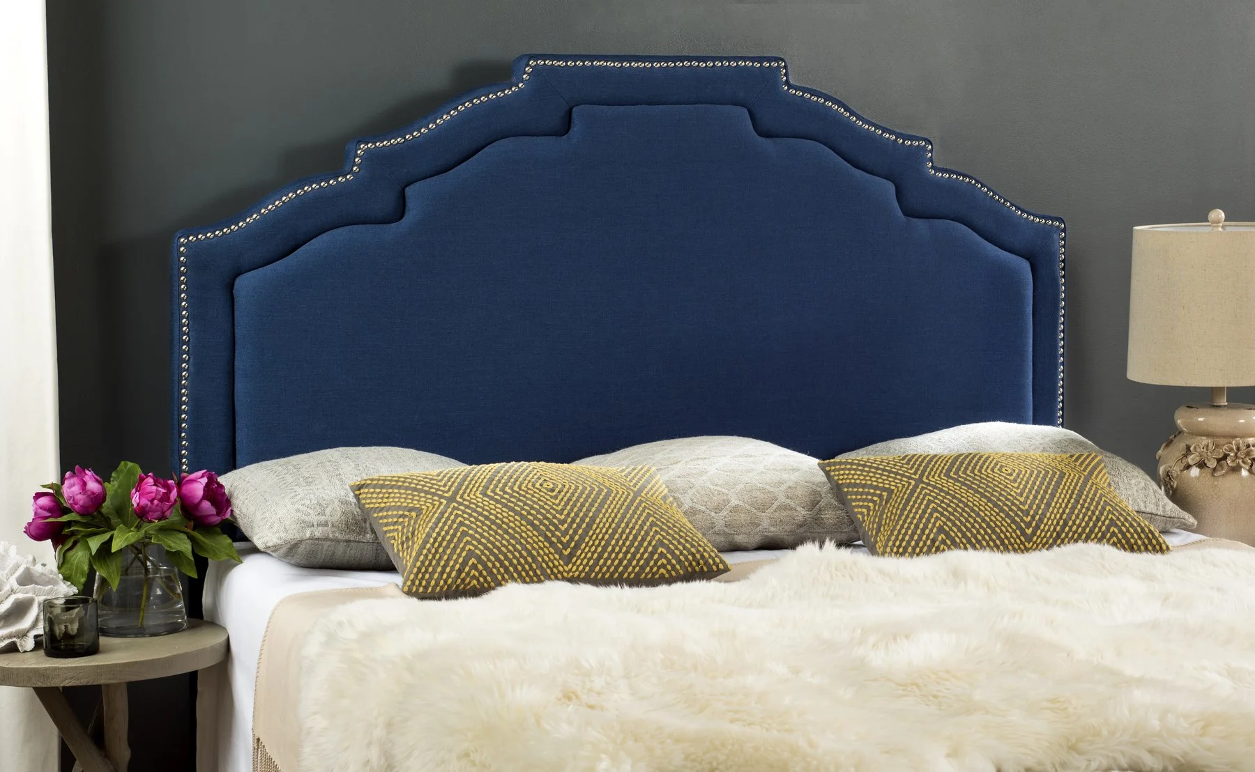 SAFAVIEH Alexia Modern Glam Upholstered Headboard with Nail Heads, Queen, Steel Blue