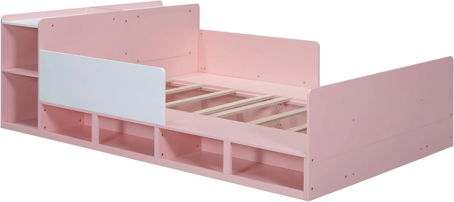 55 x 85 x 64 in. Composite Wood Queen Size Bed with Storage Headboard & Footboard, Oak