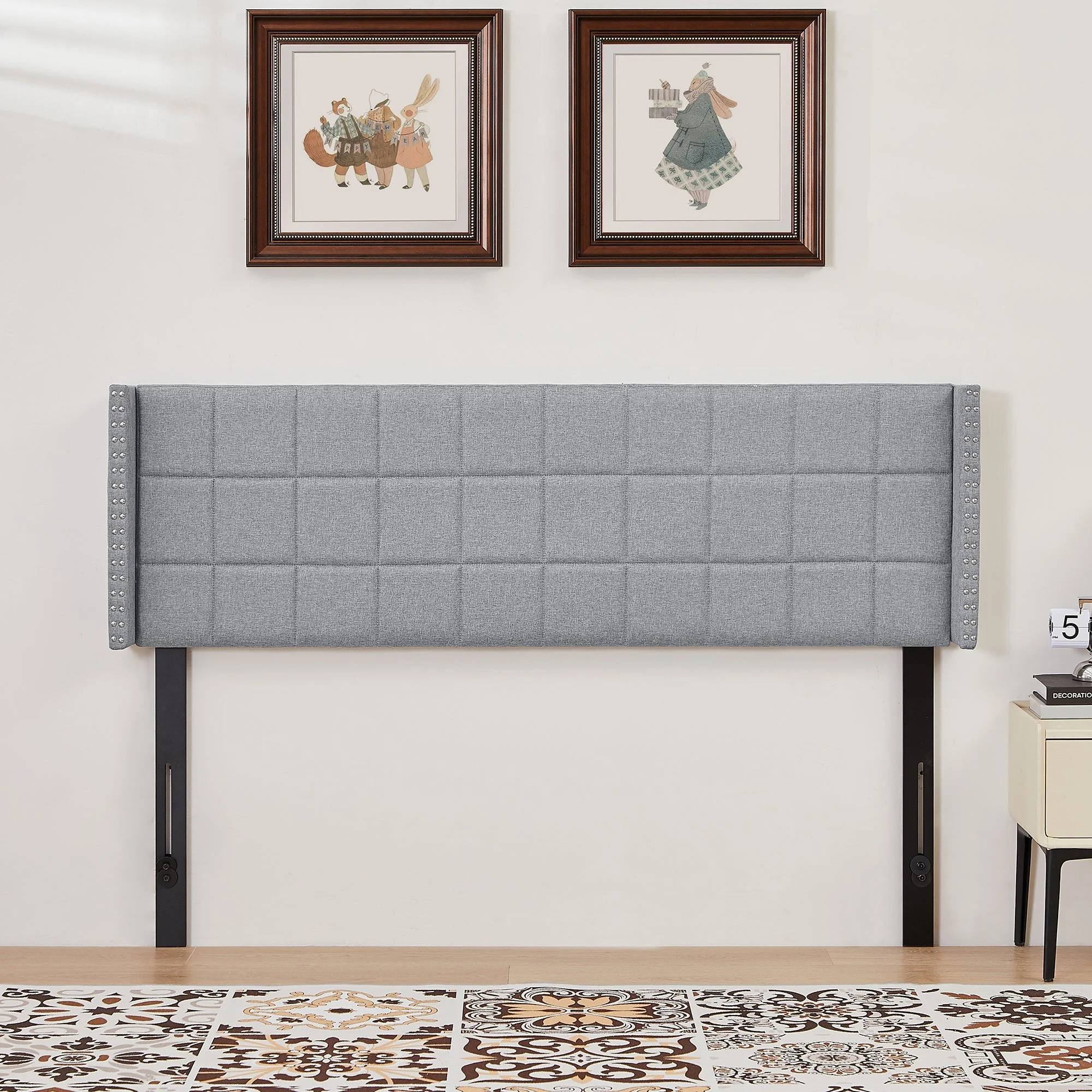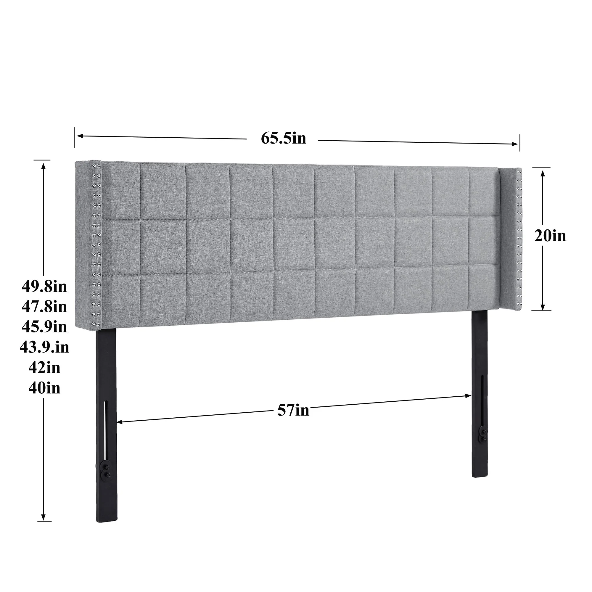 Emma + Oliver Upholstered Queen Size Headboard with Nailtrim in White Fabric