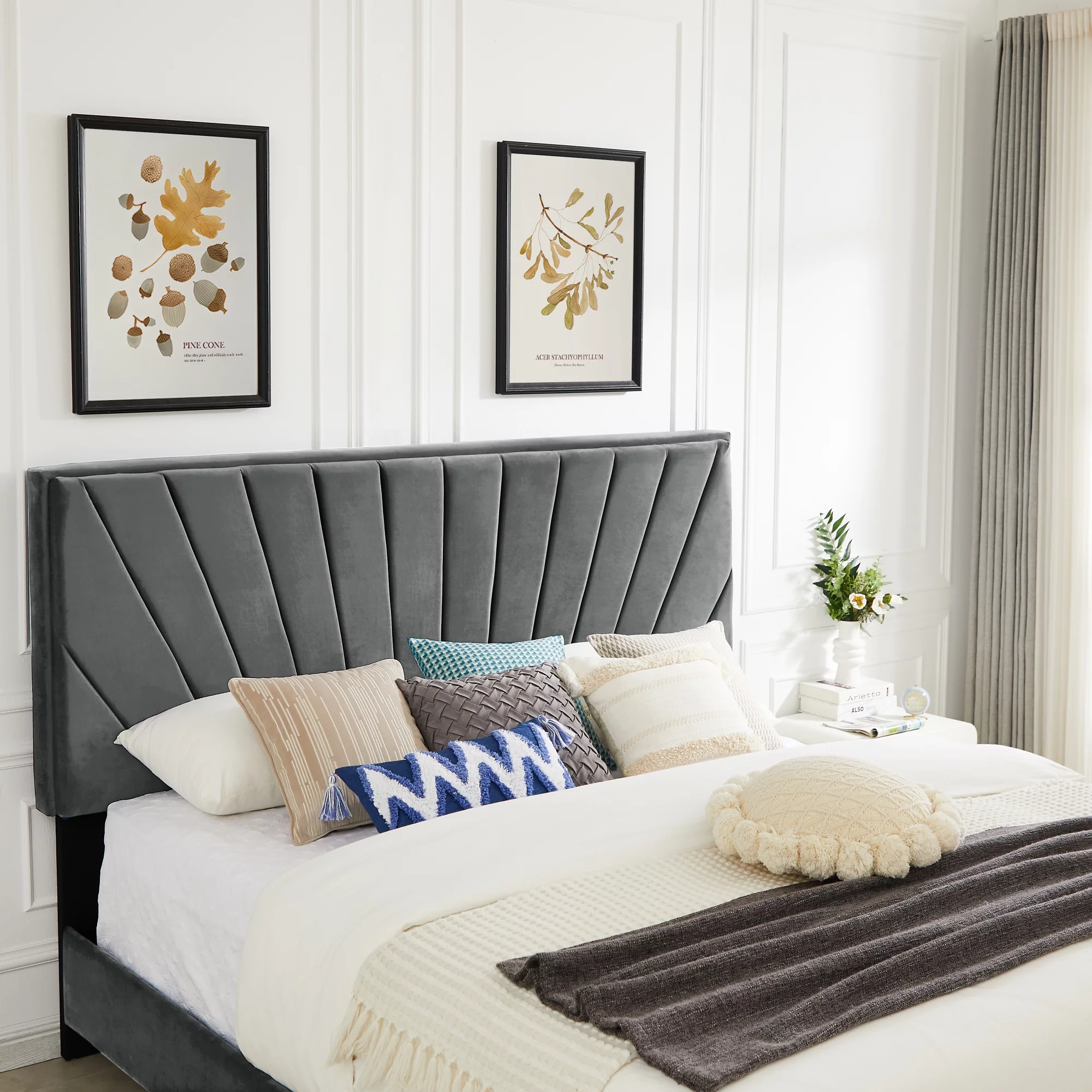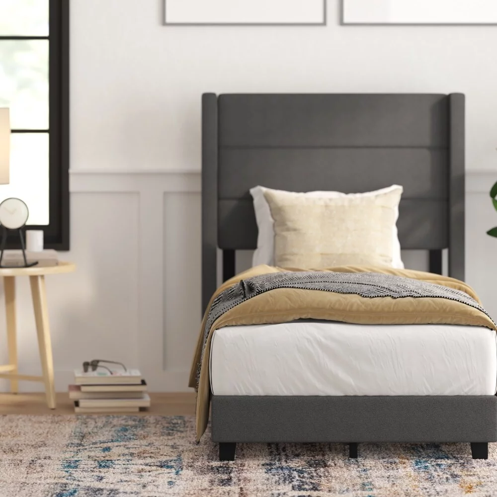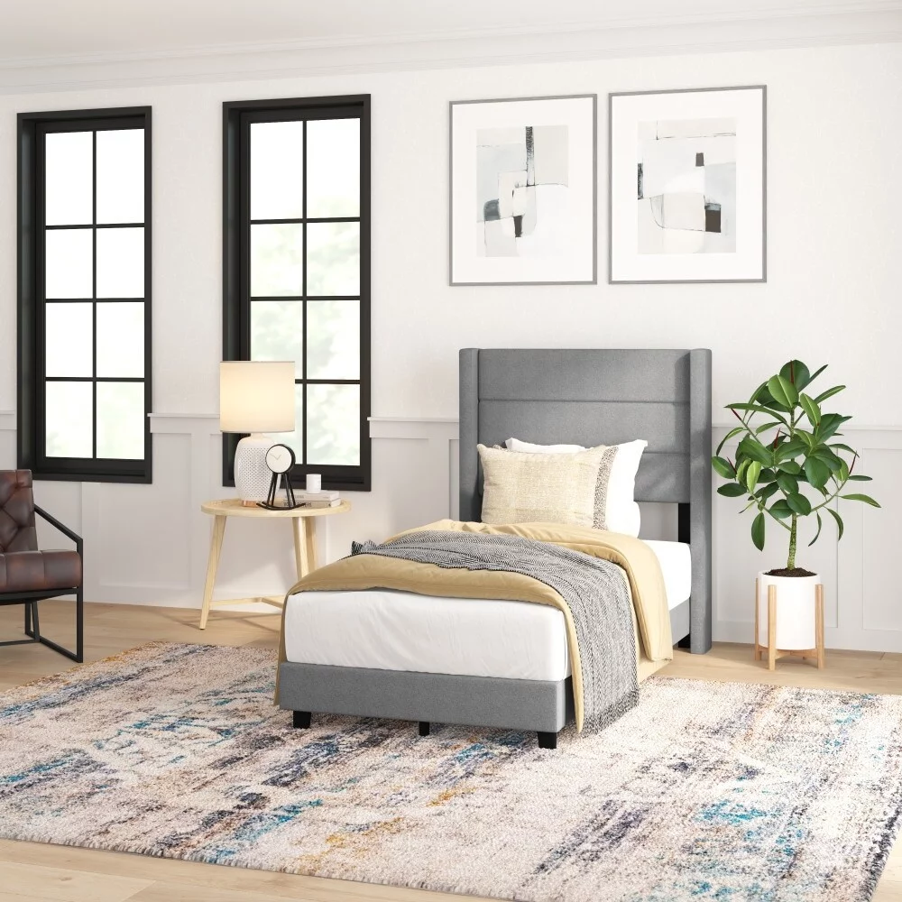 Taylor & Logan Upholstered Platform Bed with Wingback Headboard Gray - Twin