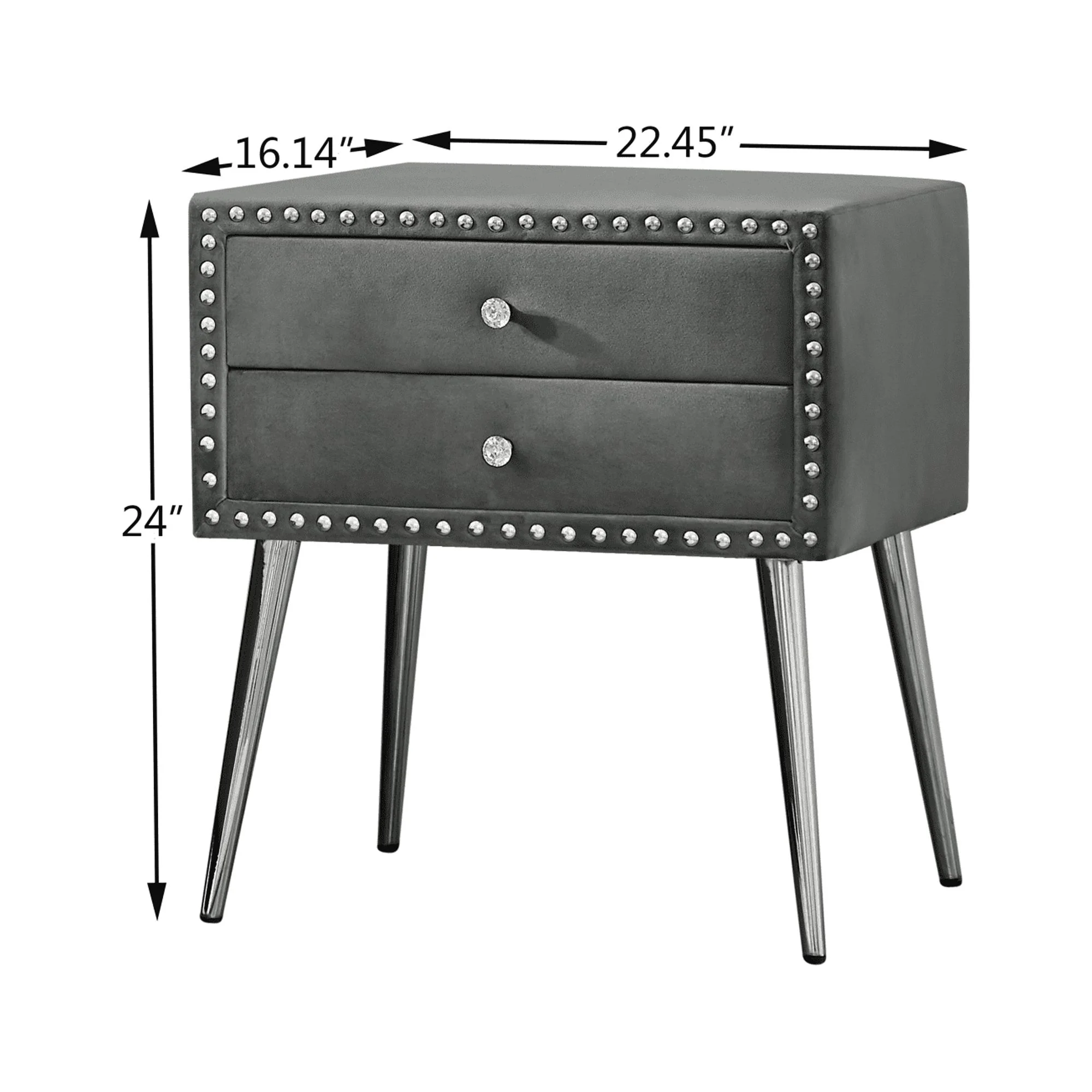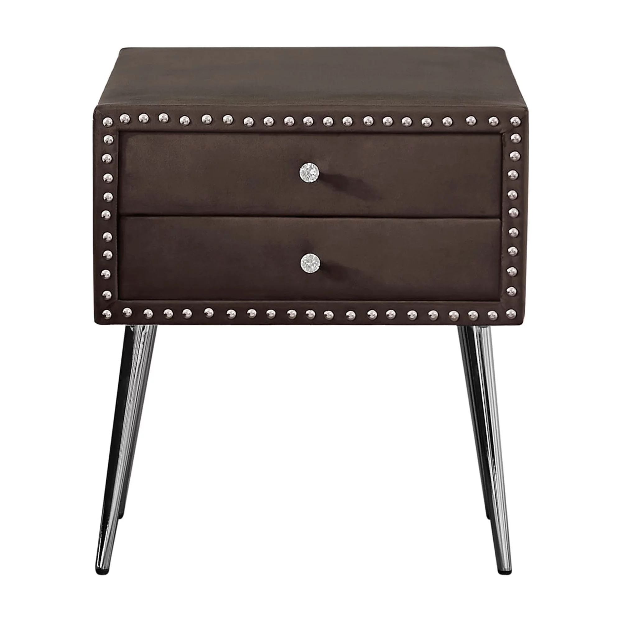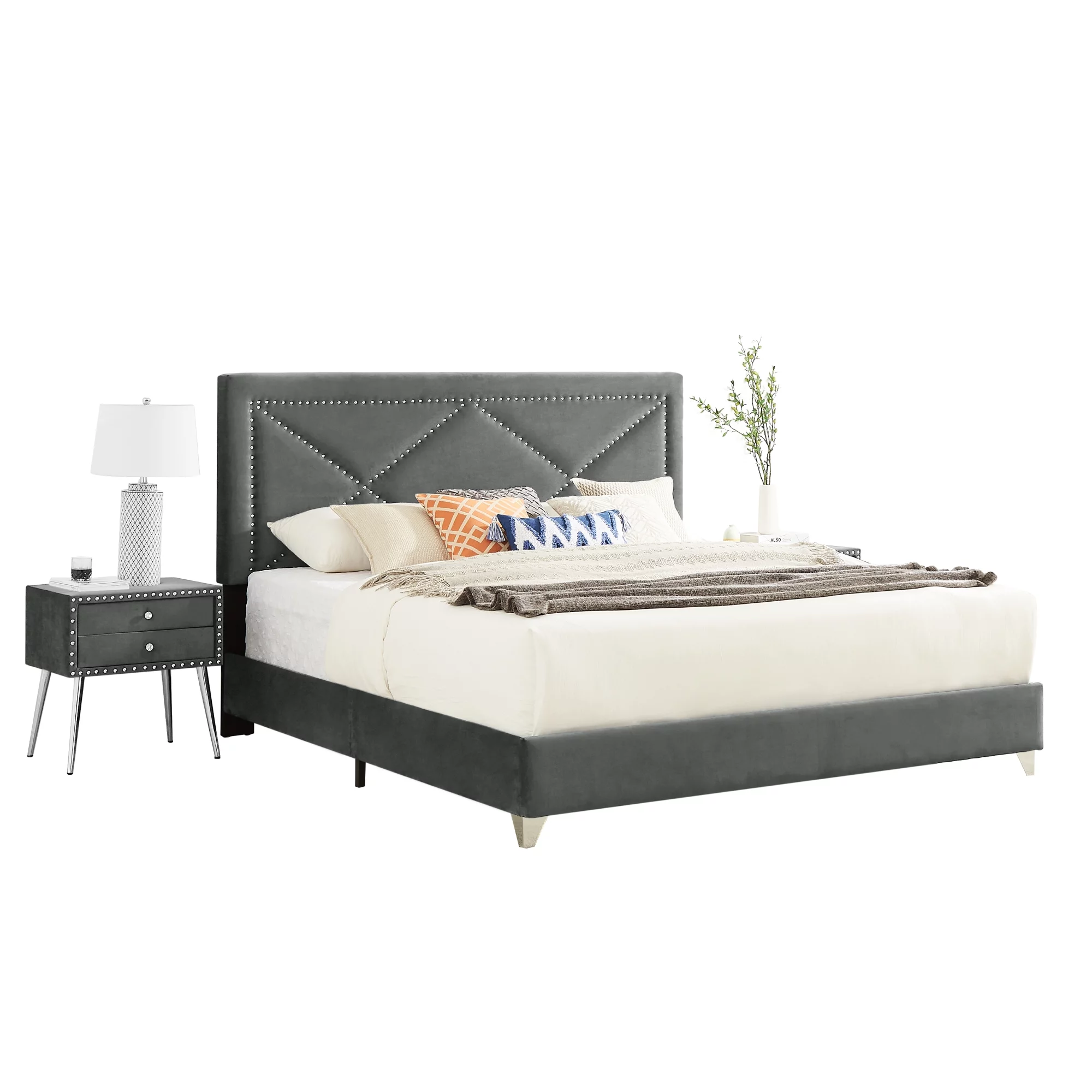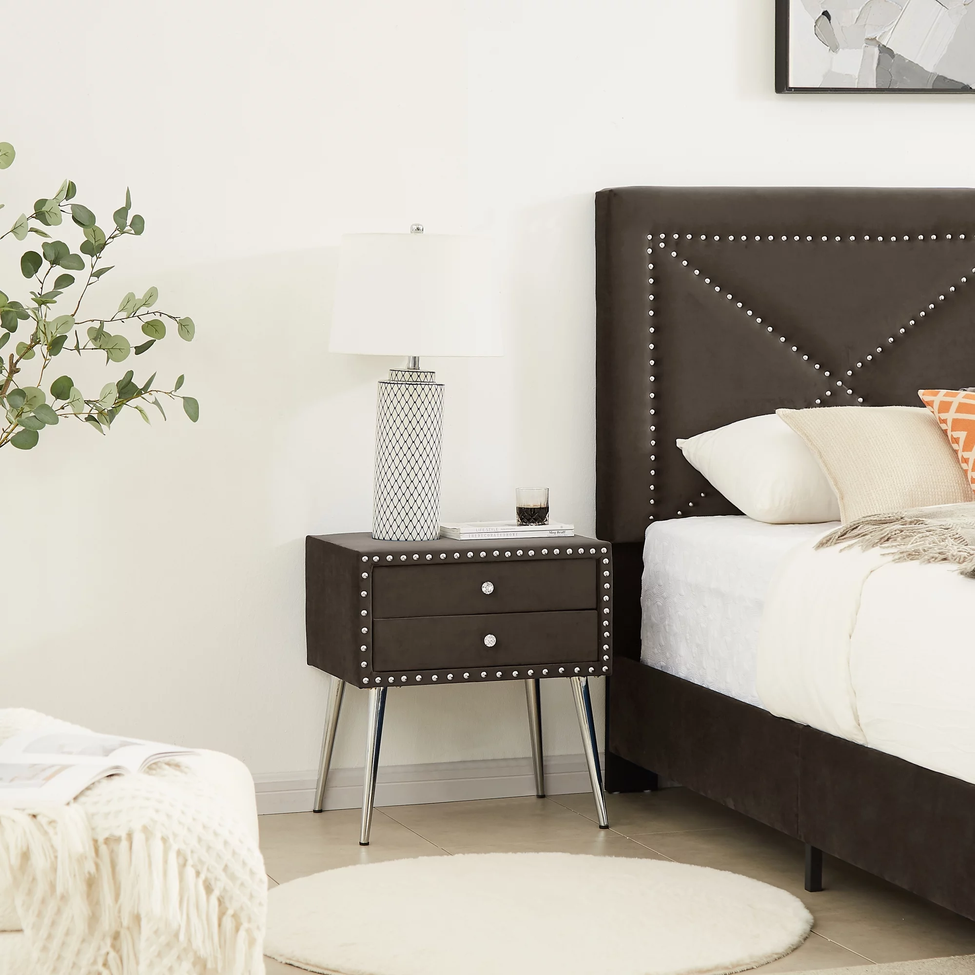 B109 King bed with one nightstand,Beautiful brass studs adorn the headboard, strong wooden slats + metal legs with Electroplate