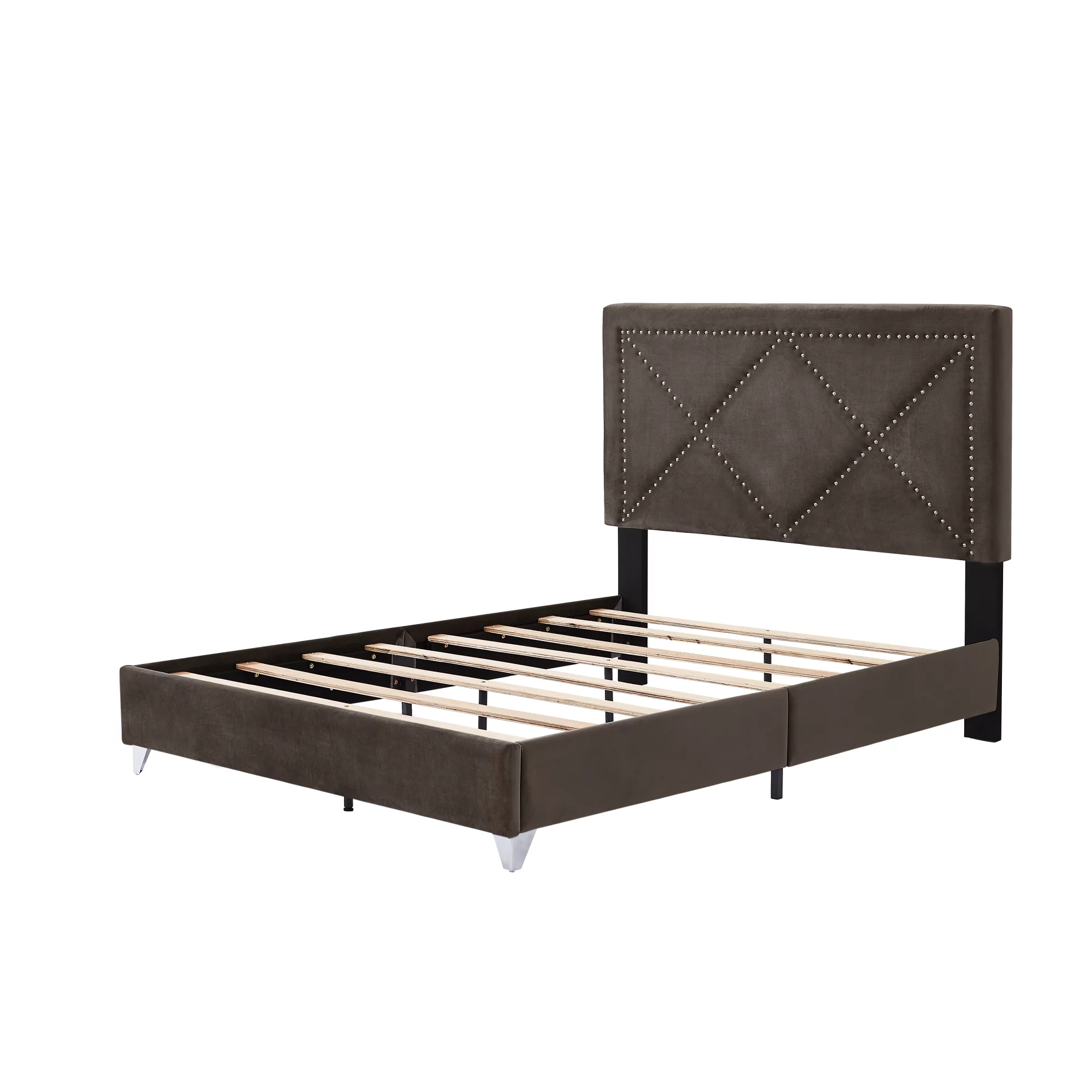 B109 Queen bed with one nightstand,Beautiful brass studs adorn the headboard, strong wooden slats + metal legs with Electroplate