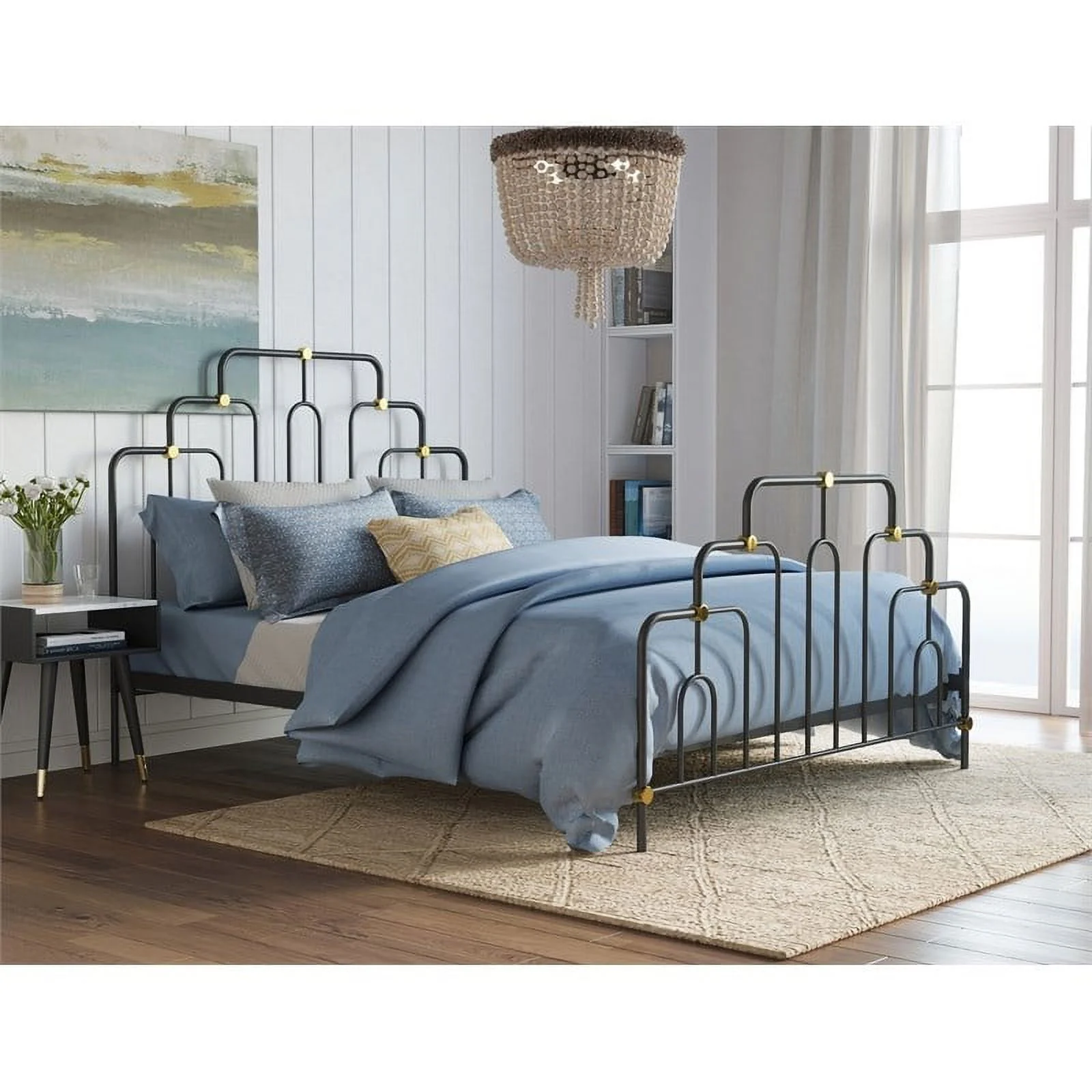 Pemberly Row Modern / Contemporary Astrid Queen Size Bed Black and Brass