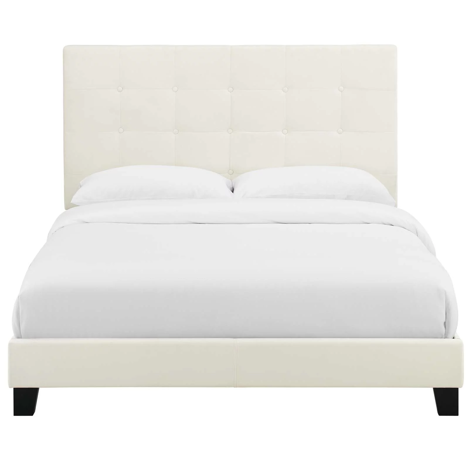 Modway Melanie Twin Tufted Button Upholstered Performance Velvet Platform Bed in Ivory