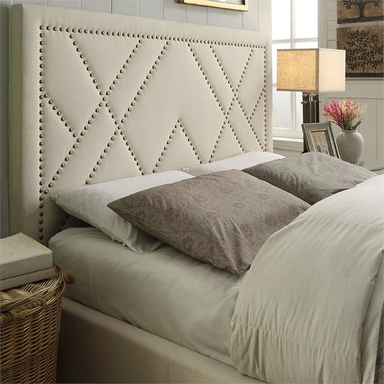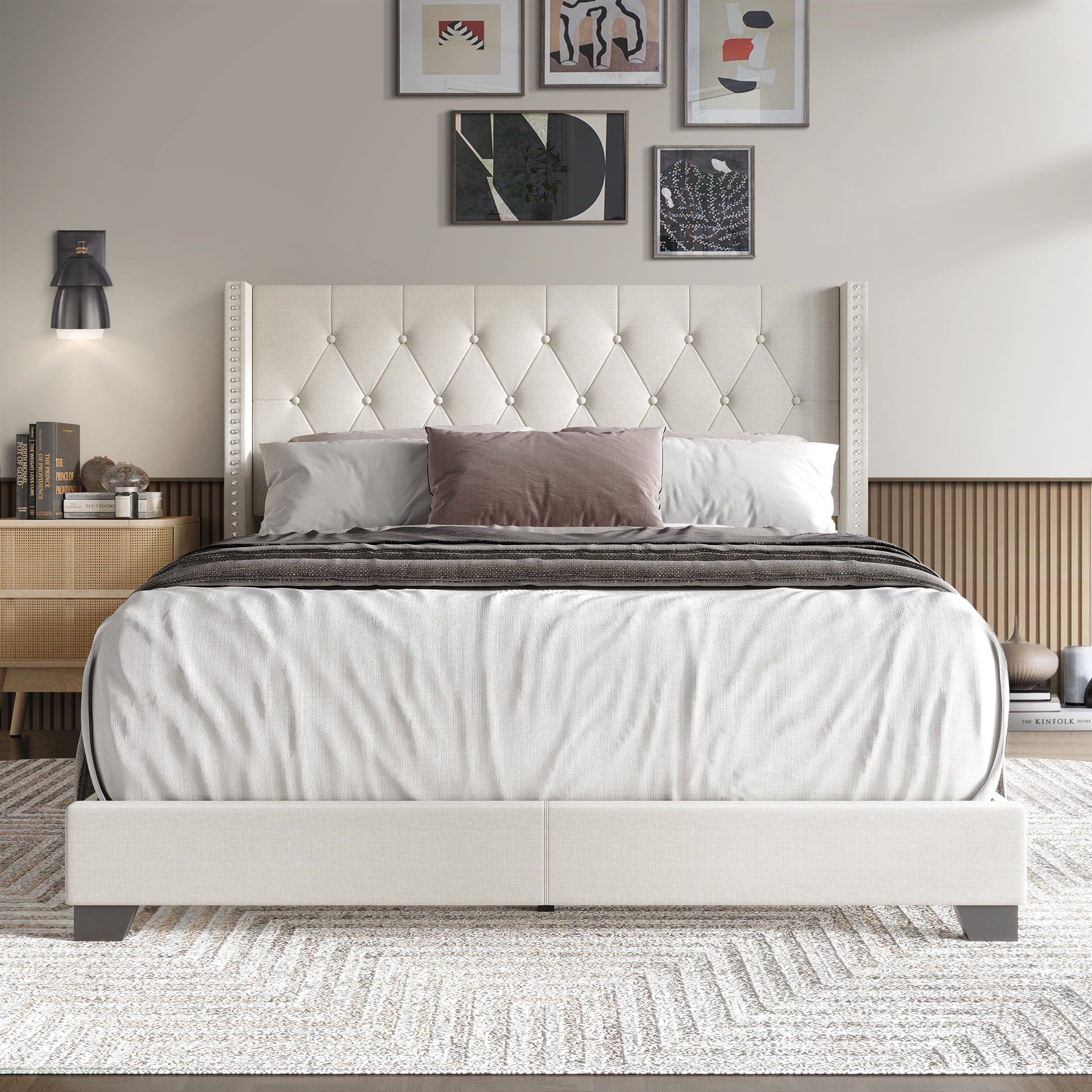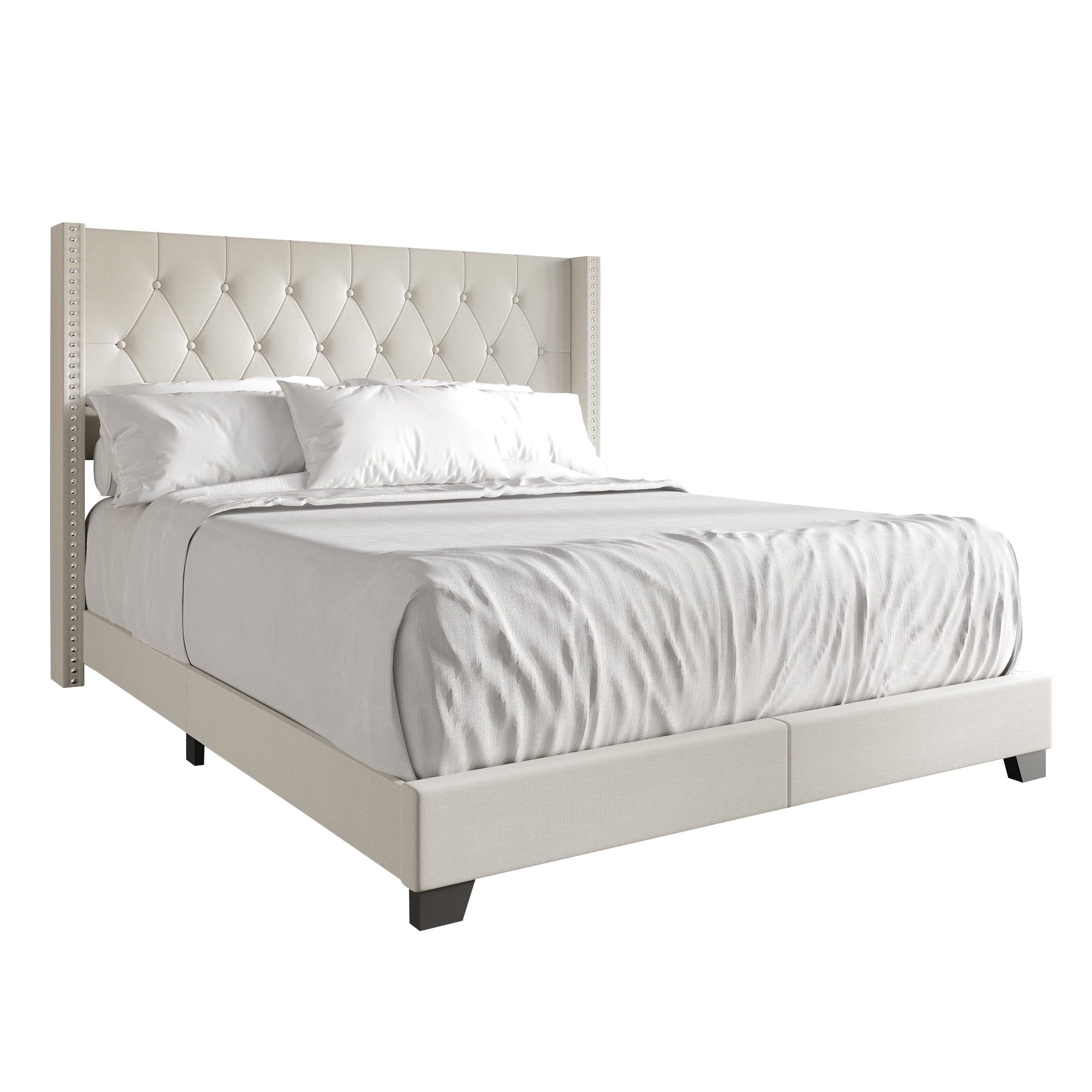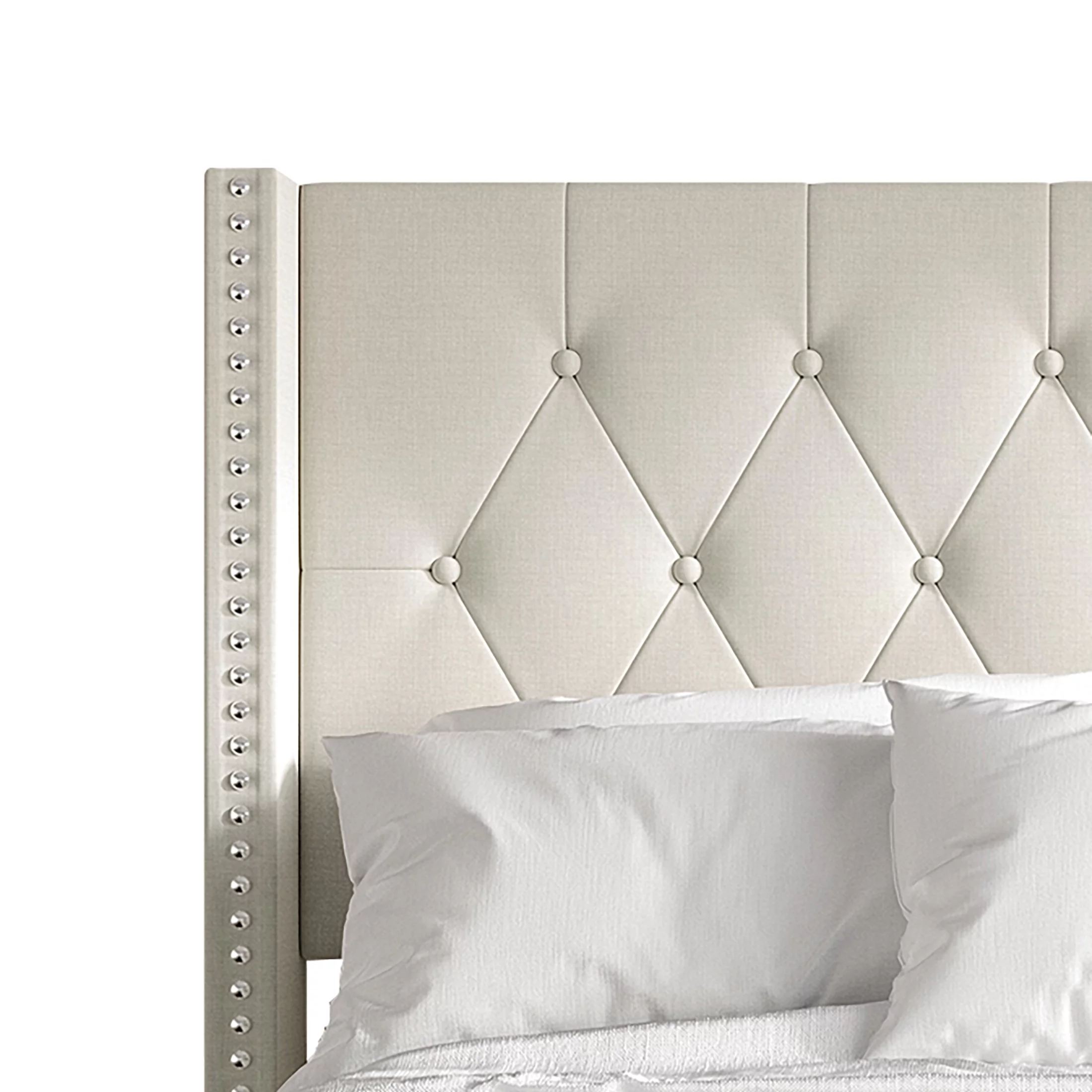 Castle Place Nailhead Trim Wingback Linen Upholstered Bed, Warm Grey , Twin