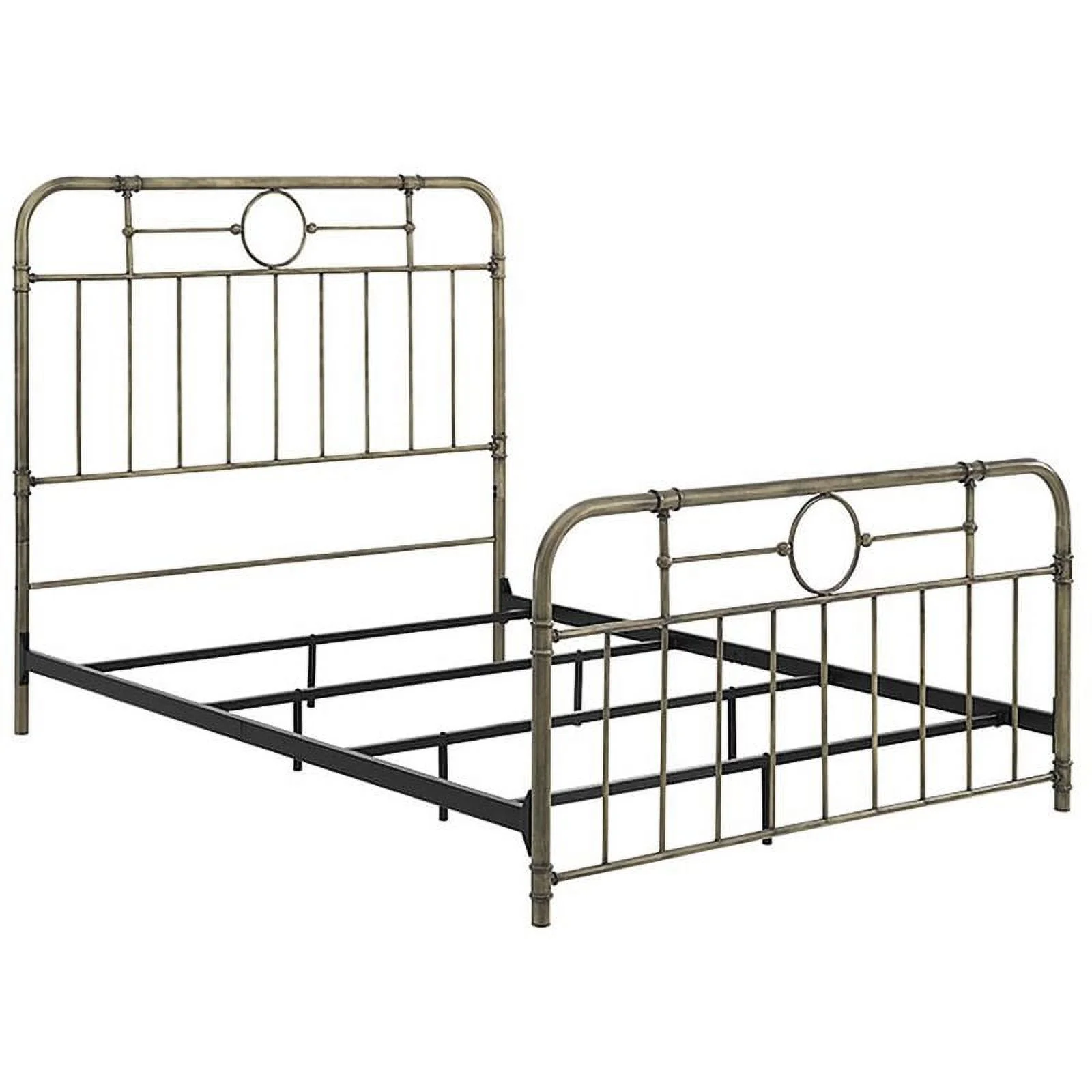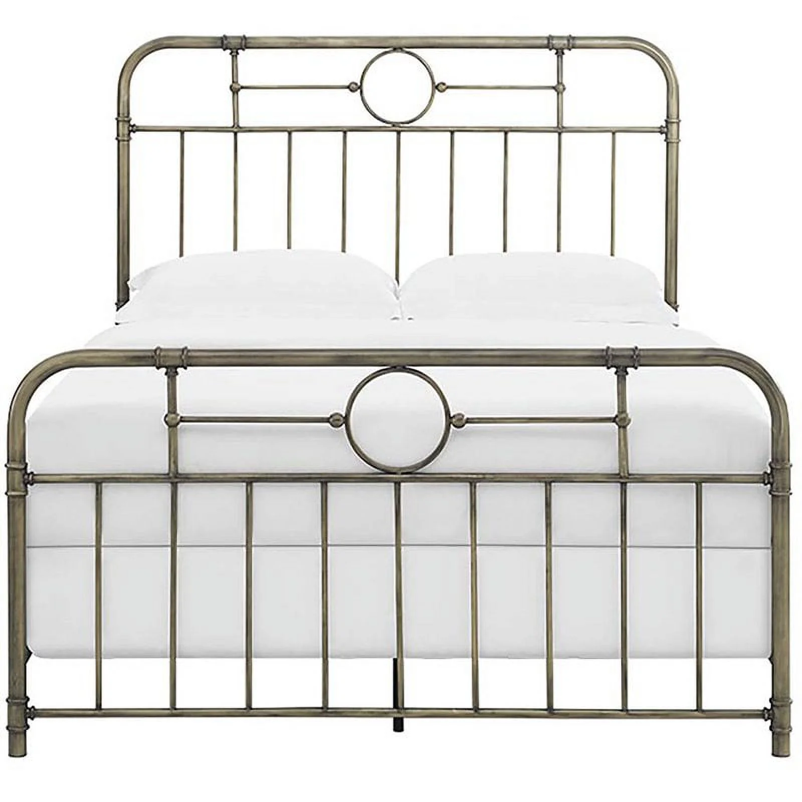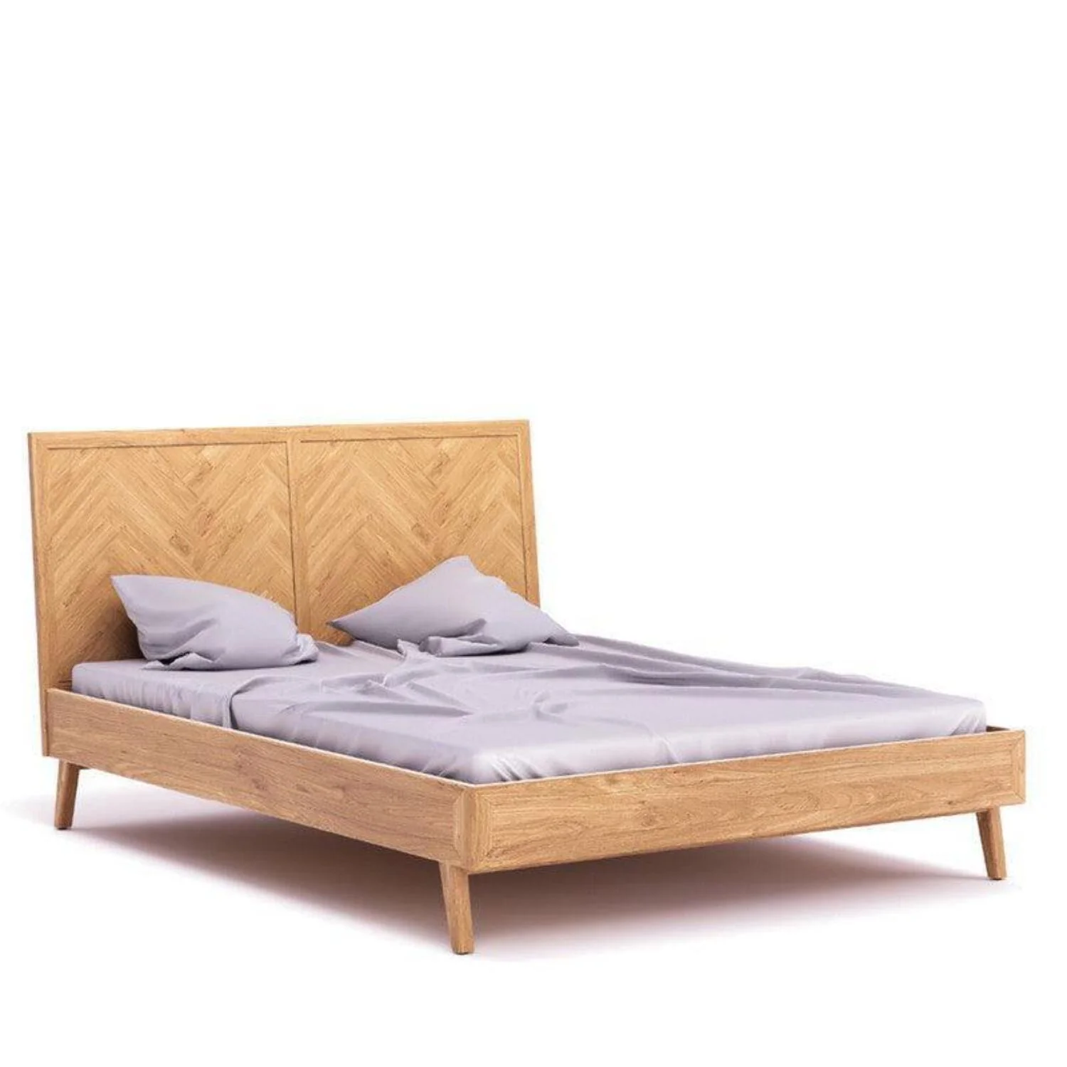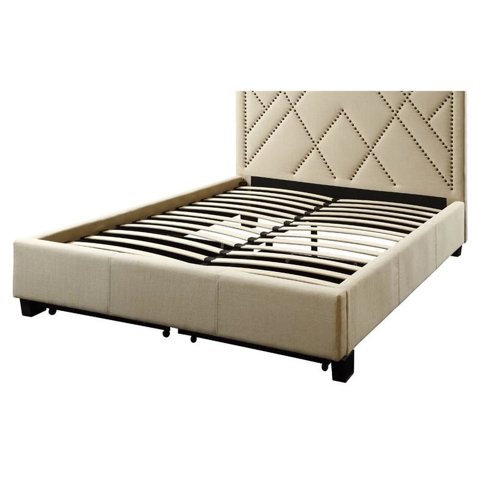 Mantalia Solid Wood Panel Bed with Metal Frame, Queen Size, Champagne
