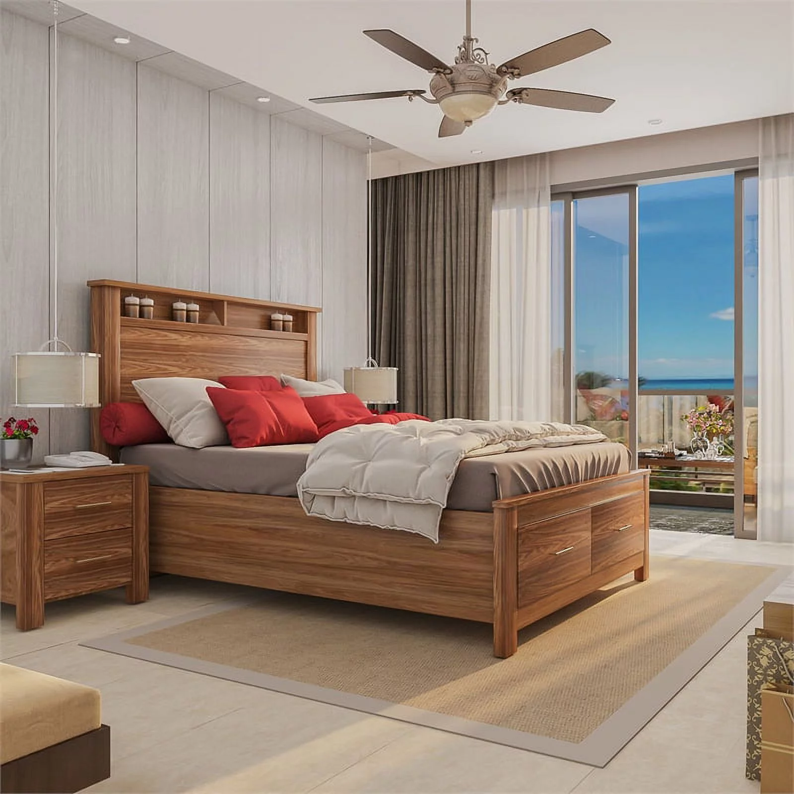 Bowery Hill Modern Design Wood Queen Bed with 2 Drawer Storage and Headboard in Oak