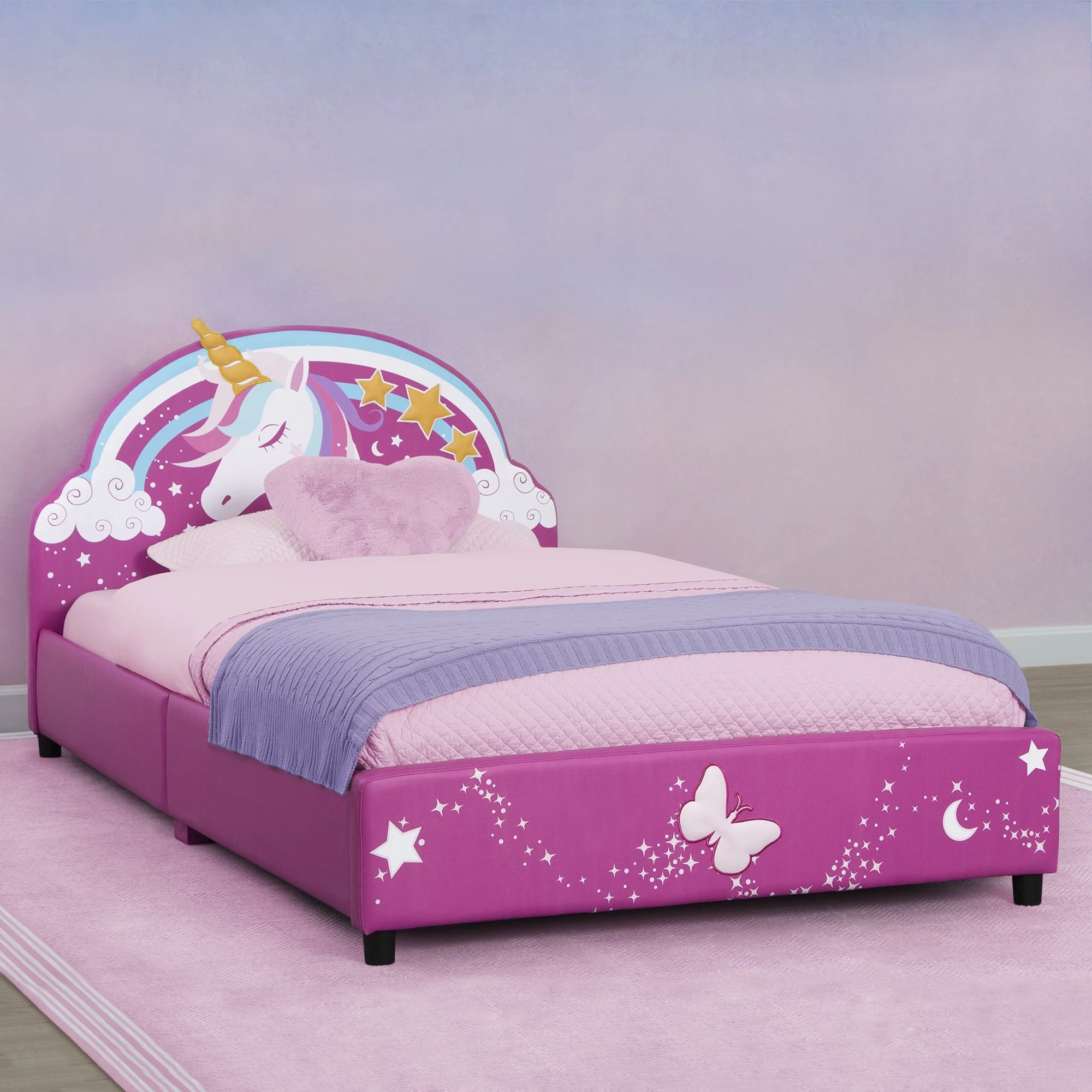 Benzara Faux Leather Upholstered Twin Size Bed with Tufted Headboard - Pink