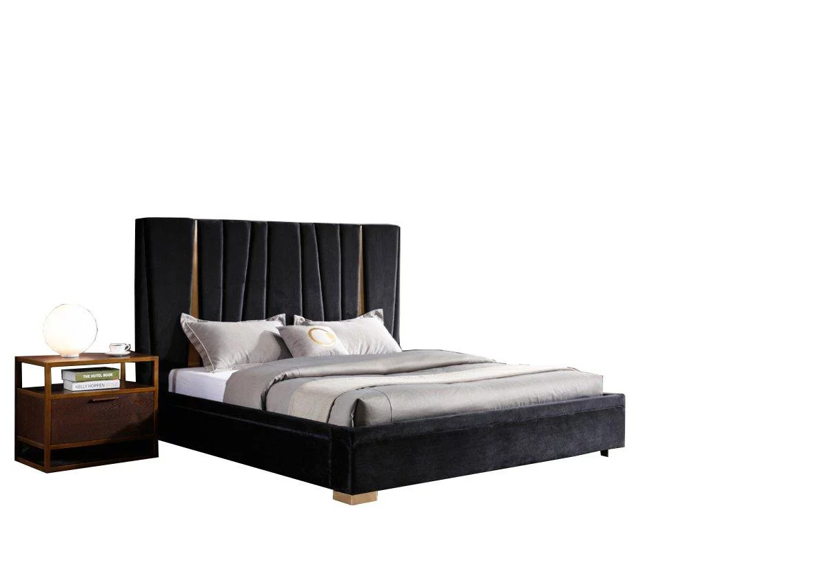 Black Velvet & Brass King Bed VIG Modrest Evonda Modern Contemporary