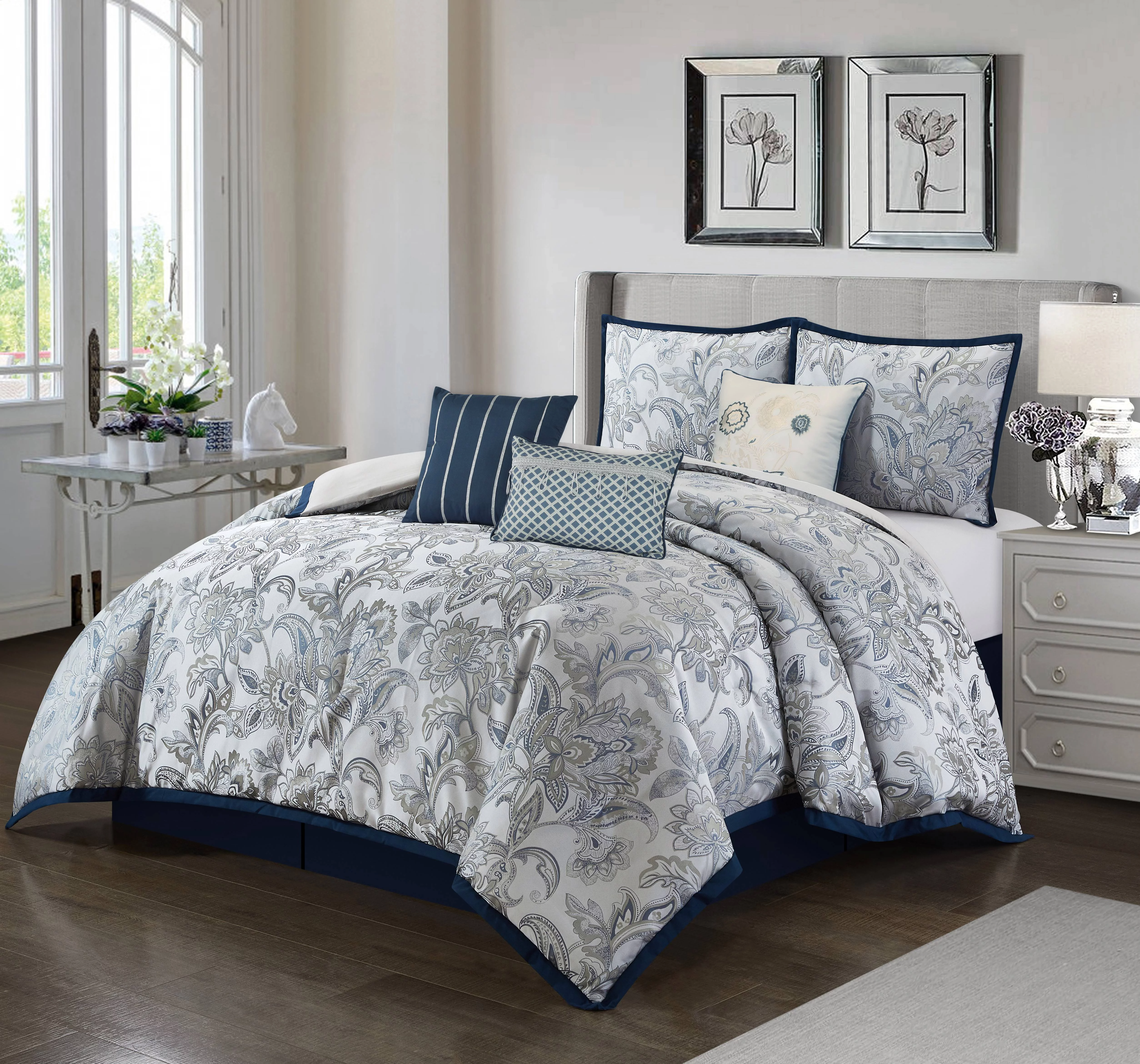 Nanshing Stassie 7 Piece Reversible Comforter Set, Navy, California King