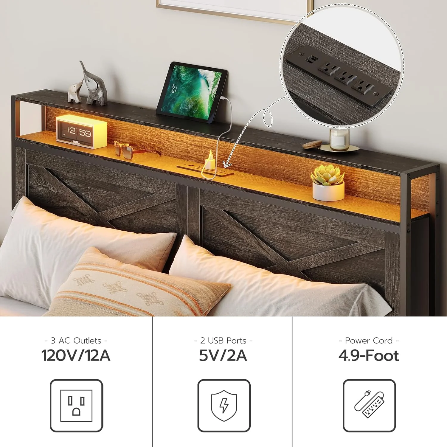 Glossy Gray Queen Bed Set 3Pcs w/ LED Headboard CARRARA ESF Modern MADE IN ITALY
