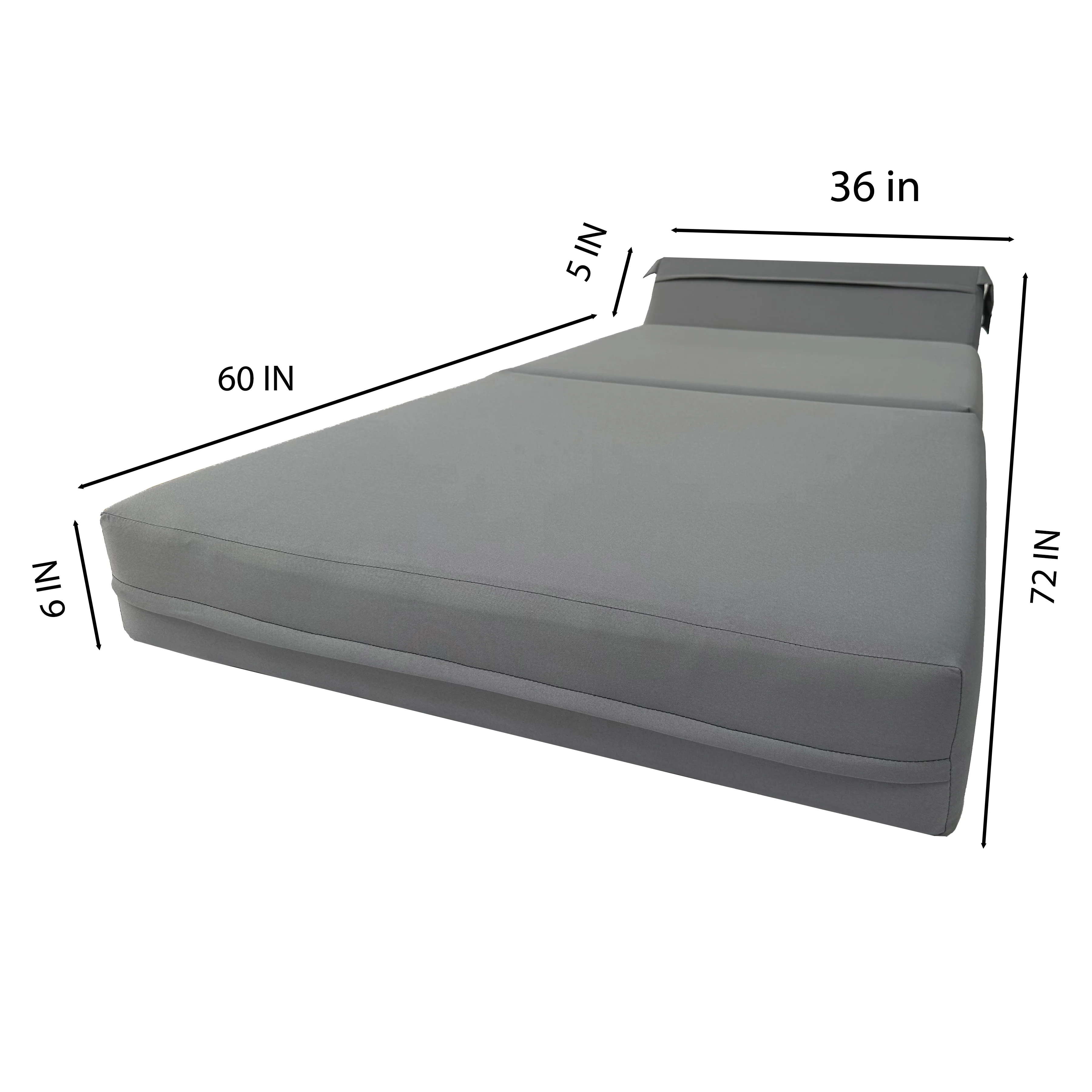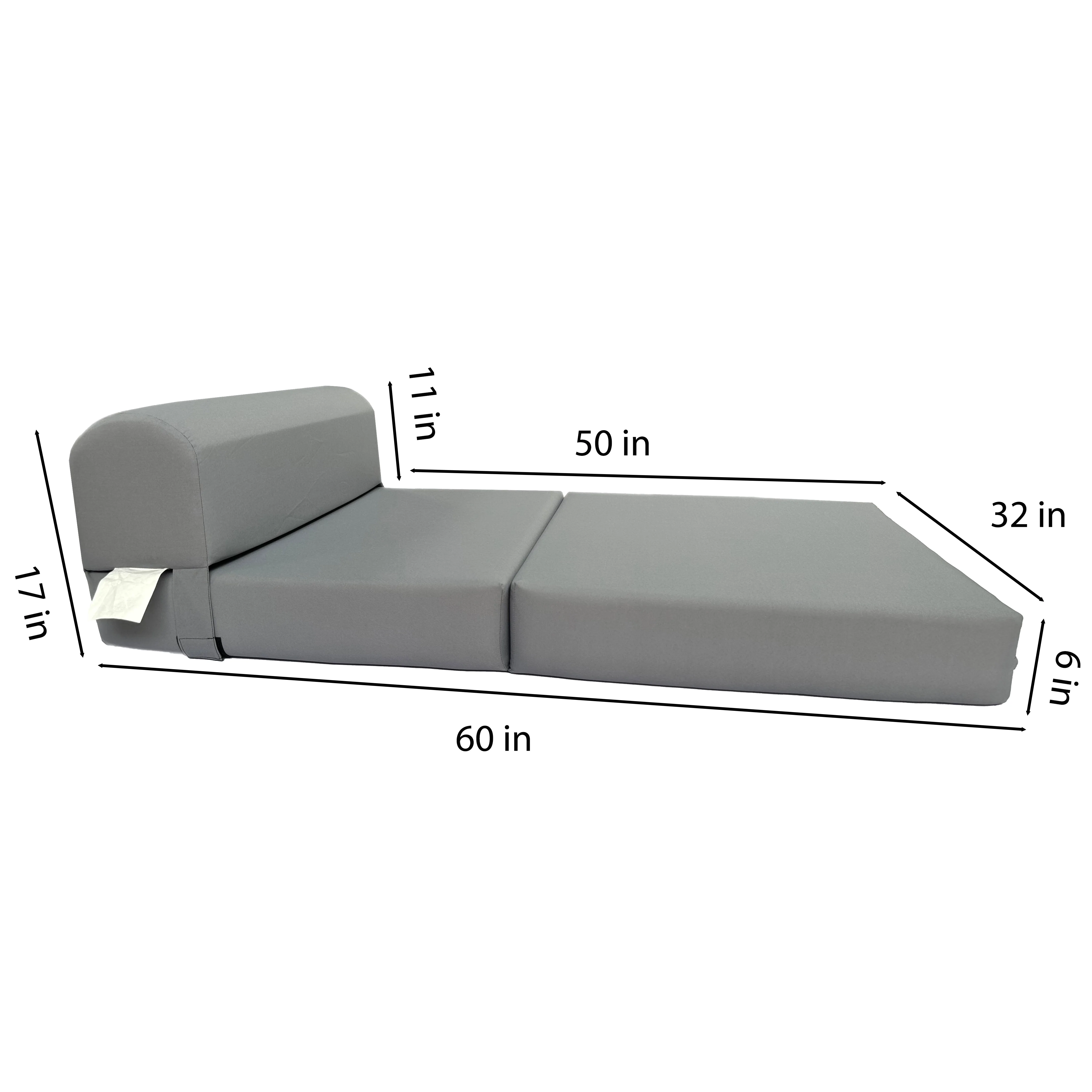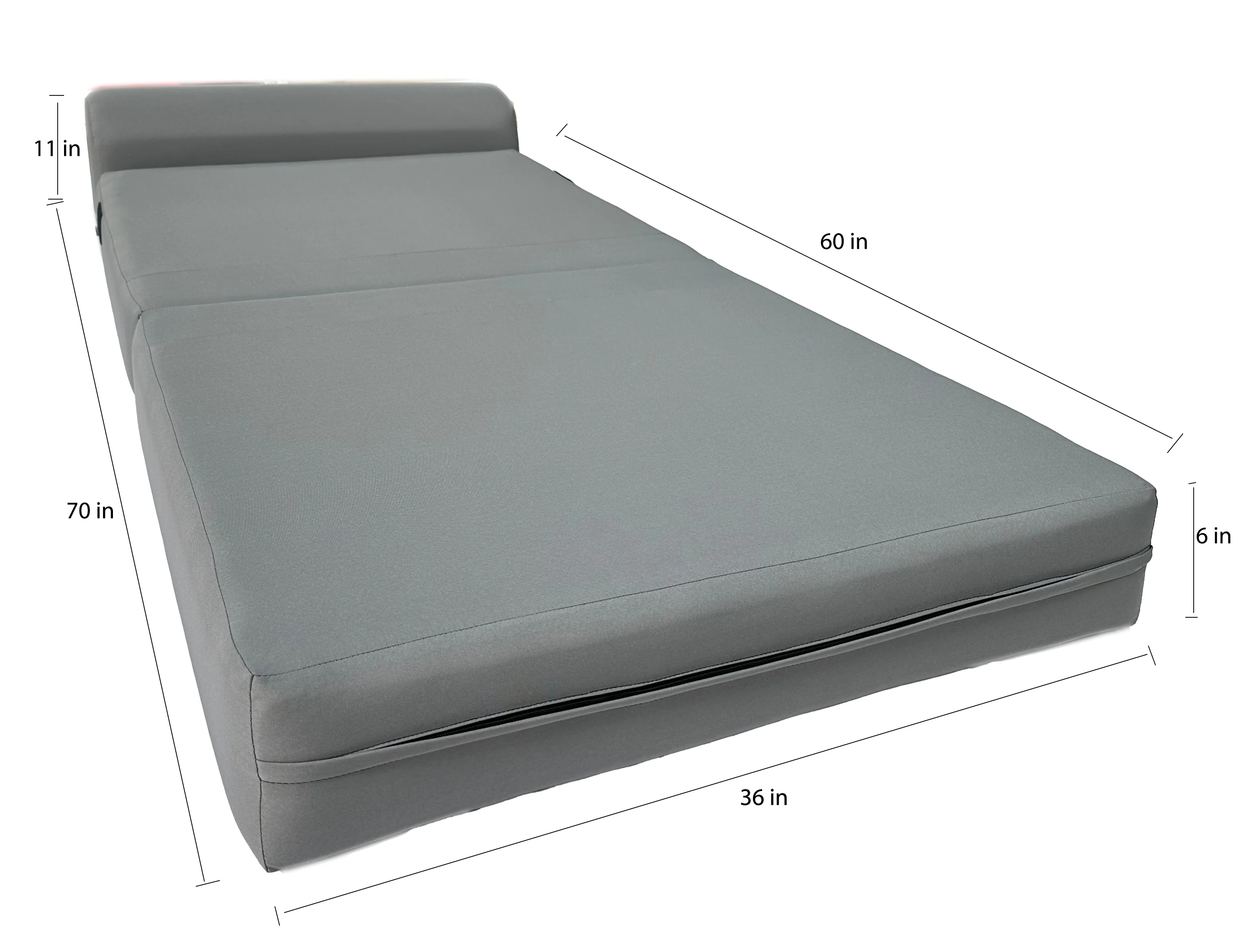 Gray Sleeper Chair Folding Foam Bed, Studio Guest Beds, Sofa, High Density Foam 1.8 lbs. (6 x 24 x 70)