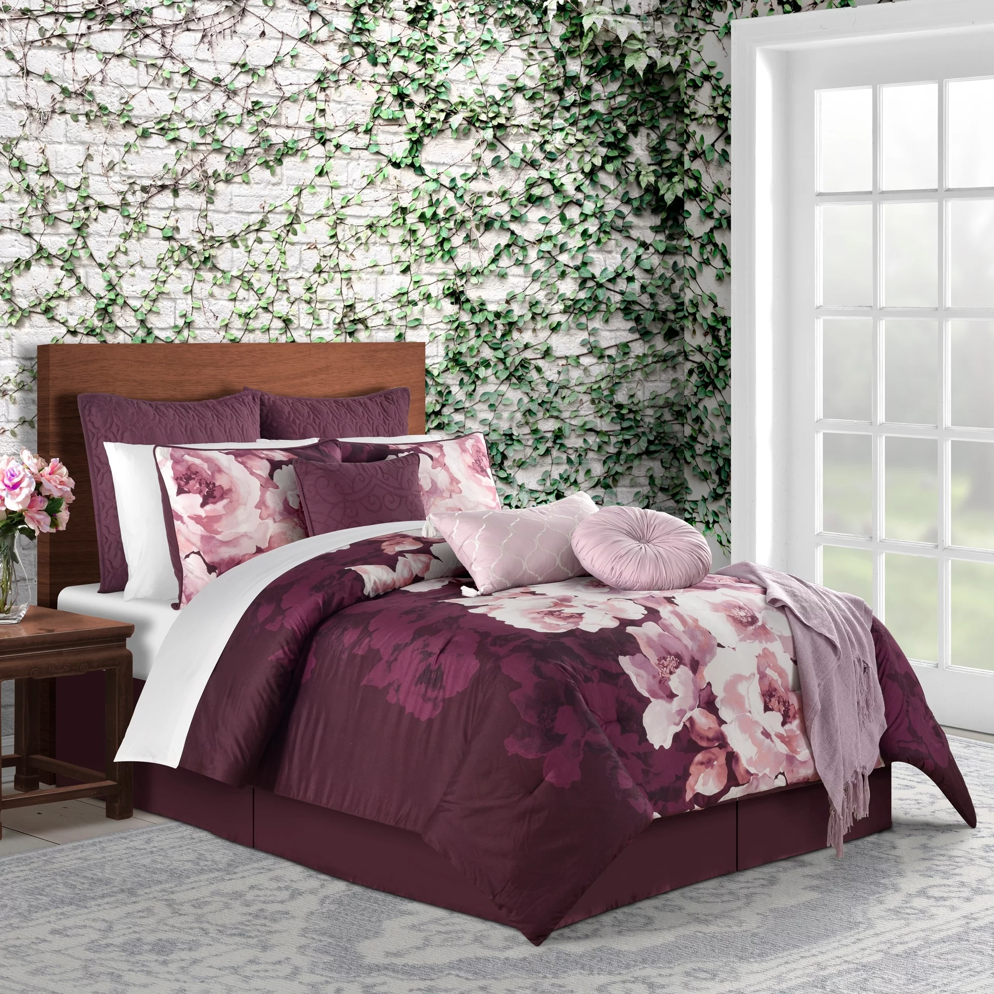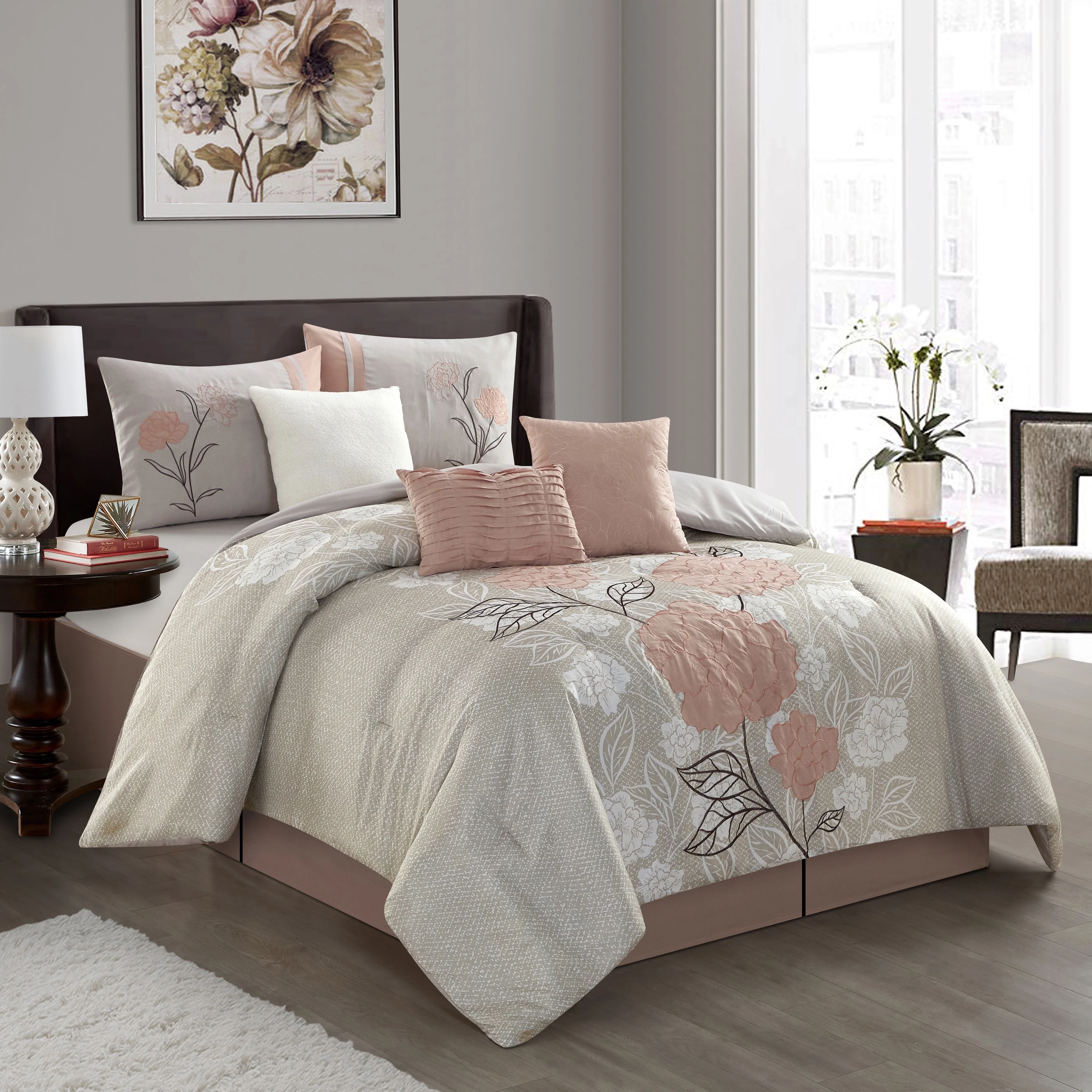 Lanco Anemone Floral 7 Piece Comforter Set Blush, Bed Size California King, Fill Polyester