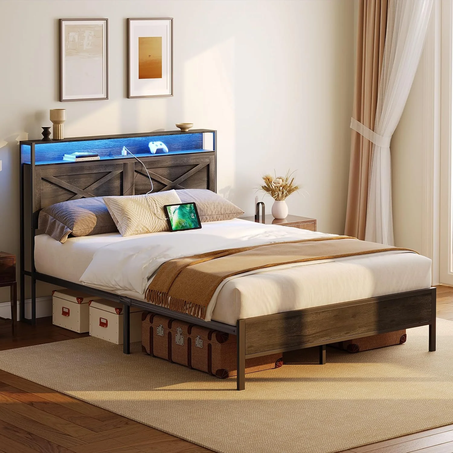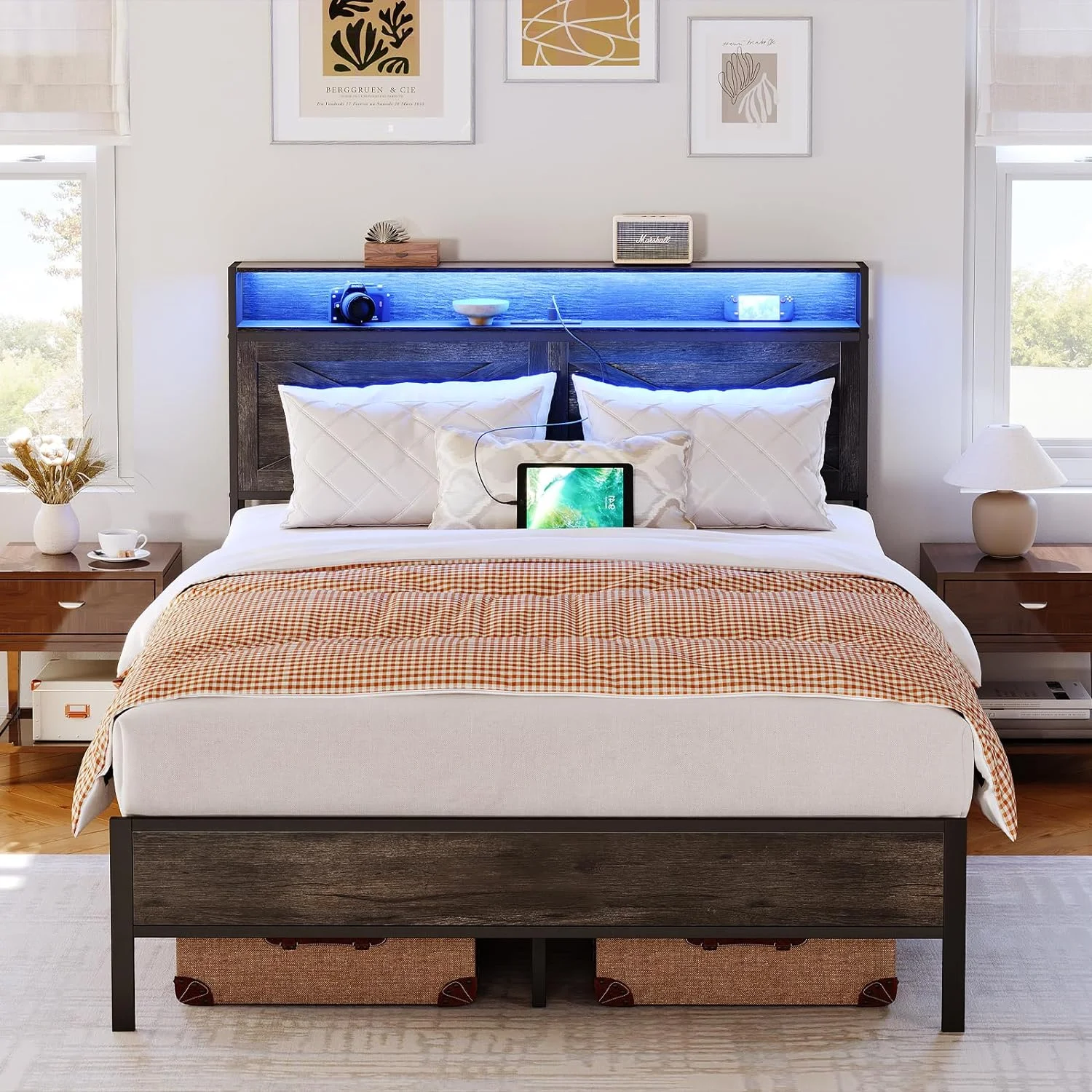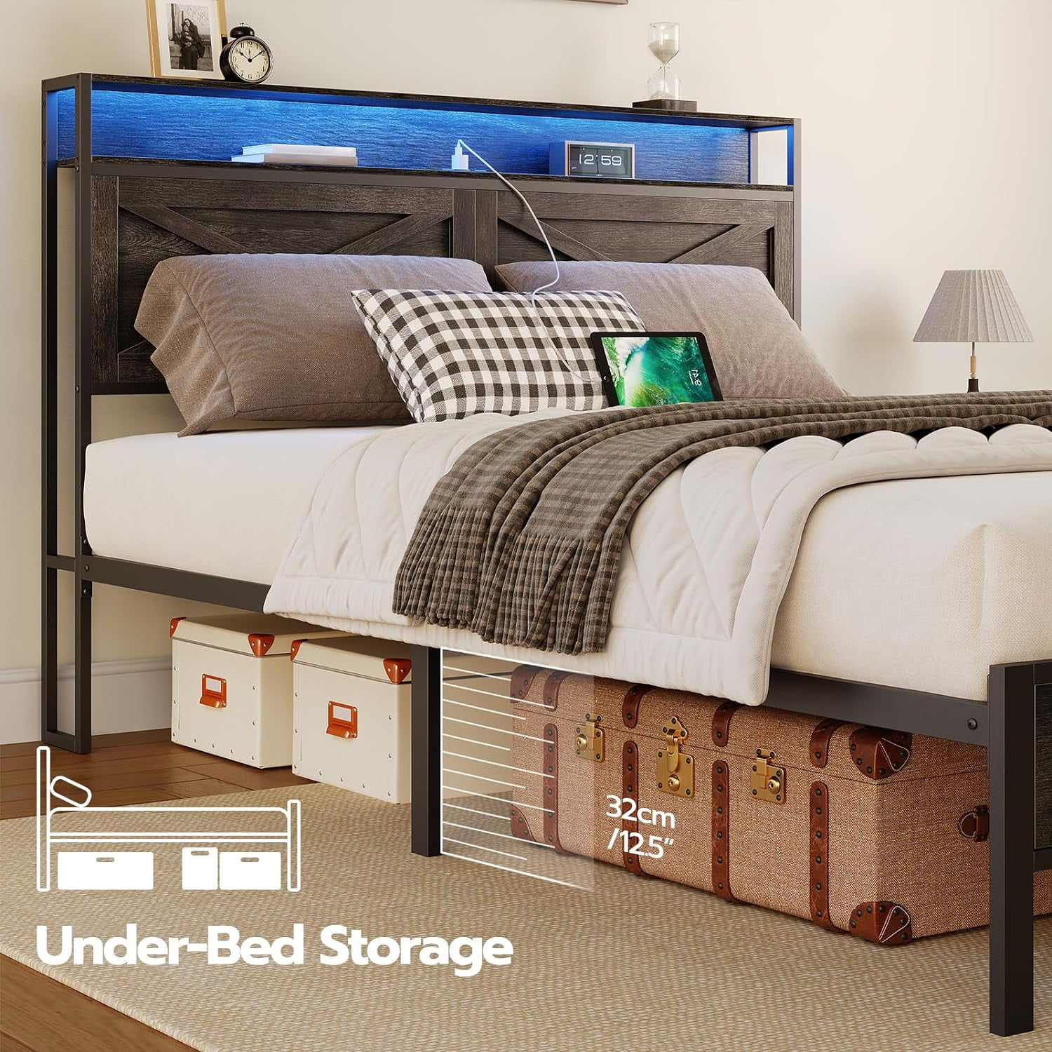 Docooler Modern Full Metal Queen Size Bed with Slat Support - NO Mattress - No Box Spring Needed